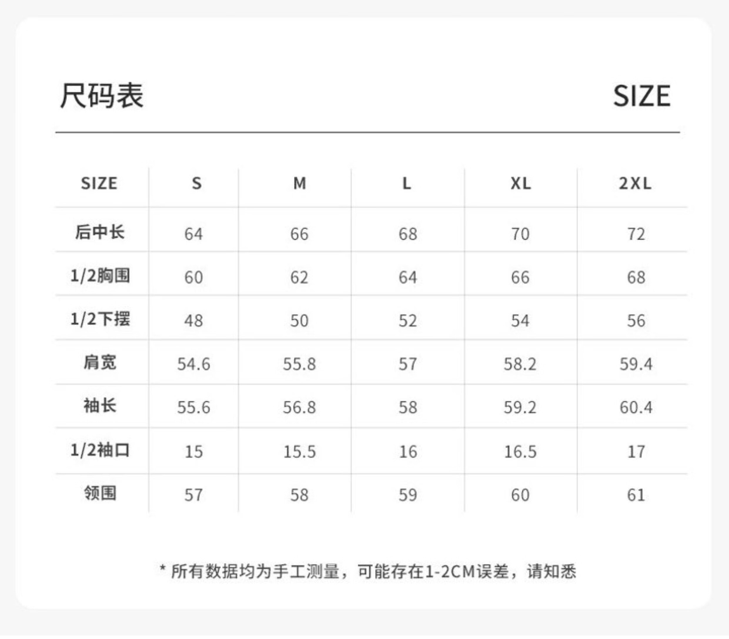 Size (cm) 42 44 46 48 50