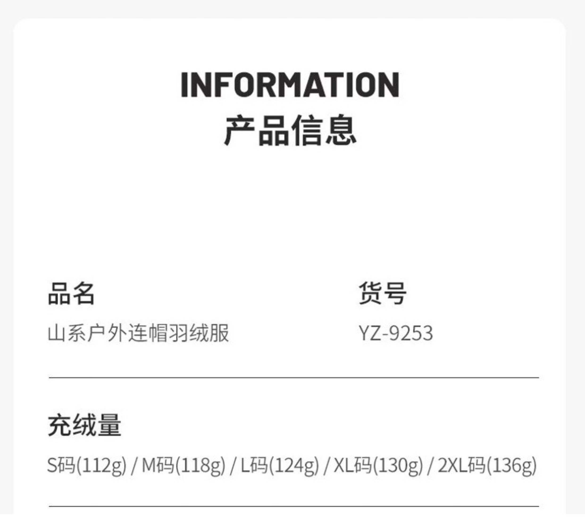 China (cm) 165 / 88-90 170 / 96-98 175 / 108-110 180 / 118-122 185 / 126-130