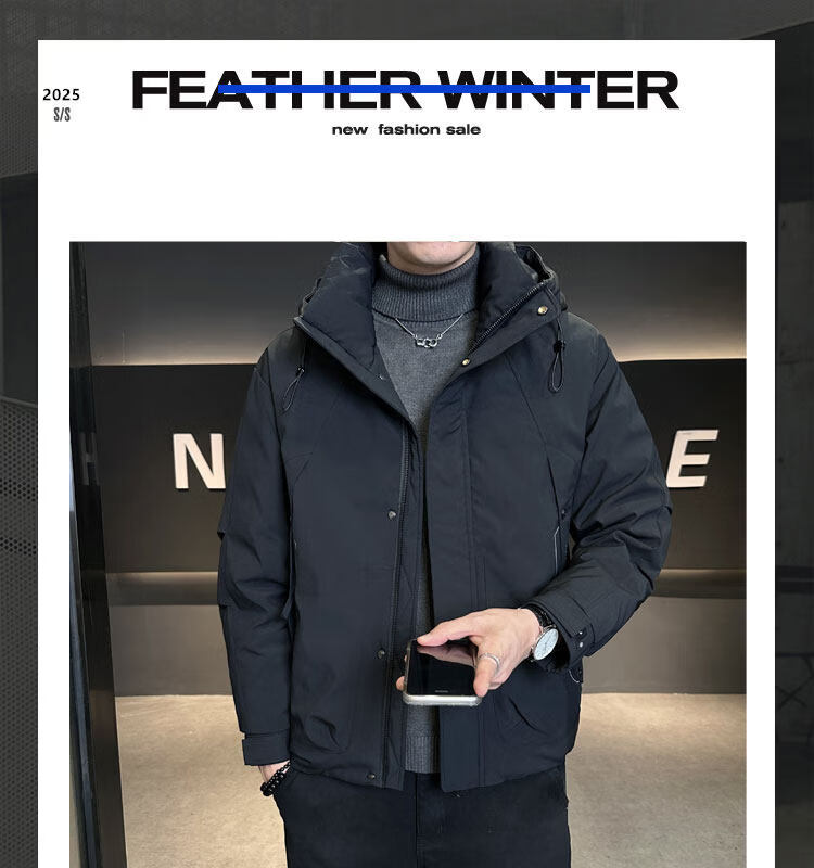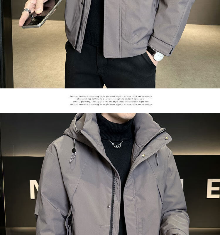 ROMON мужской пуховик с капюшоном, зима 2025, новый стиль, уличная утолщенная морозостойкая одежда, теплая мужская куртка кофейно-серого цвета L