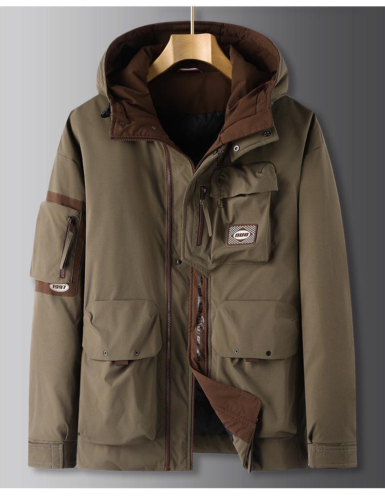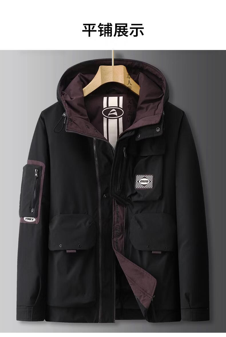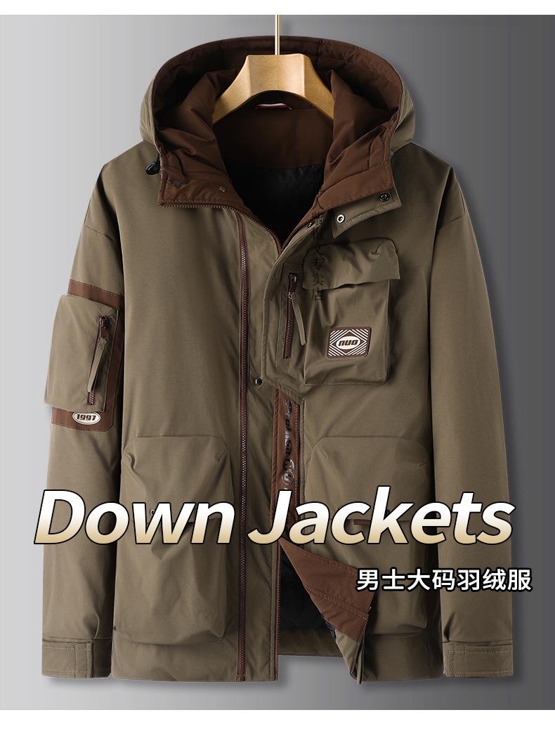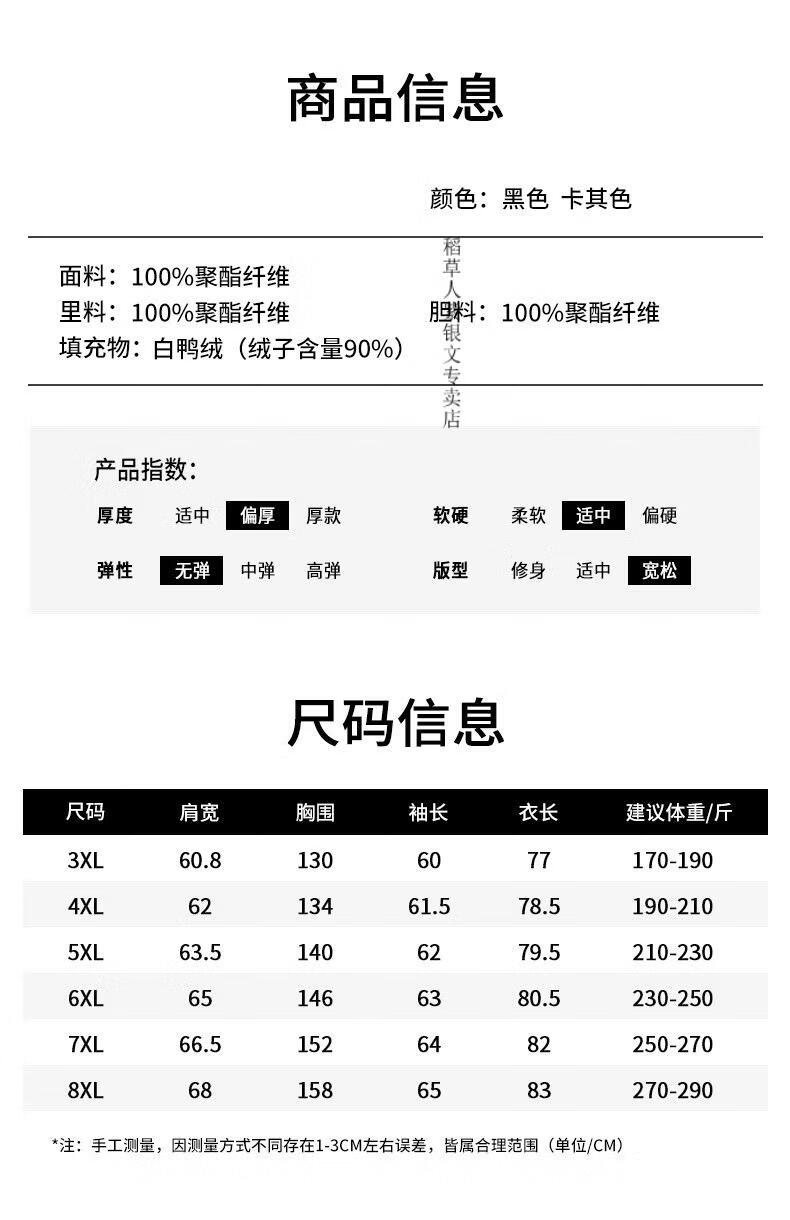 Scarecrow Fat Brother 2025 Parker Workwear Down Jacket Men's Extra Large Size Winter Coldproof Jacket Fat Guy Fashion Hooded Black 6XL (Recommended 230-250Jin Jin is equal to 0.5 kg)