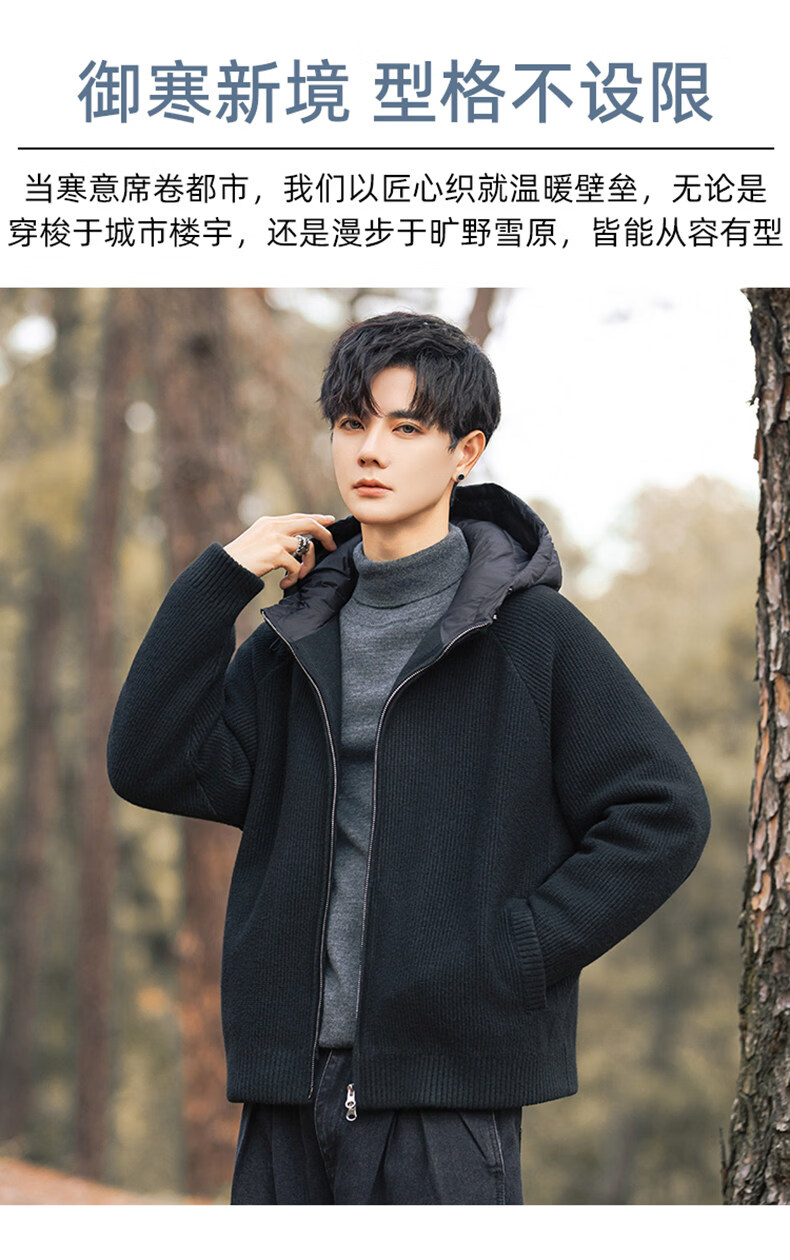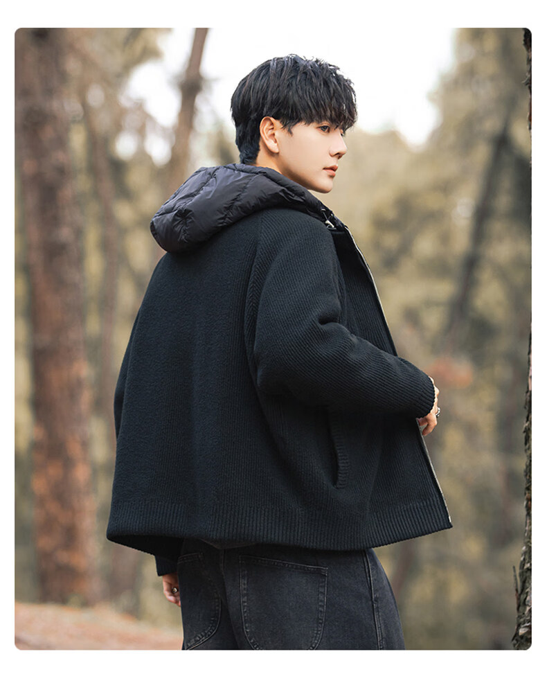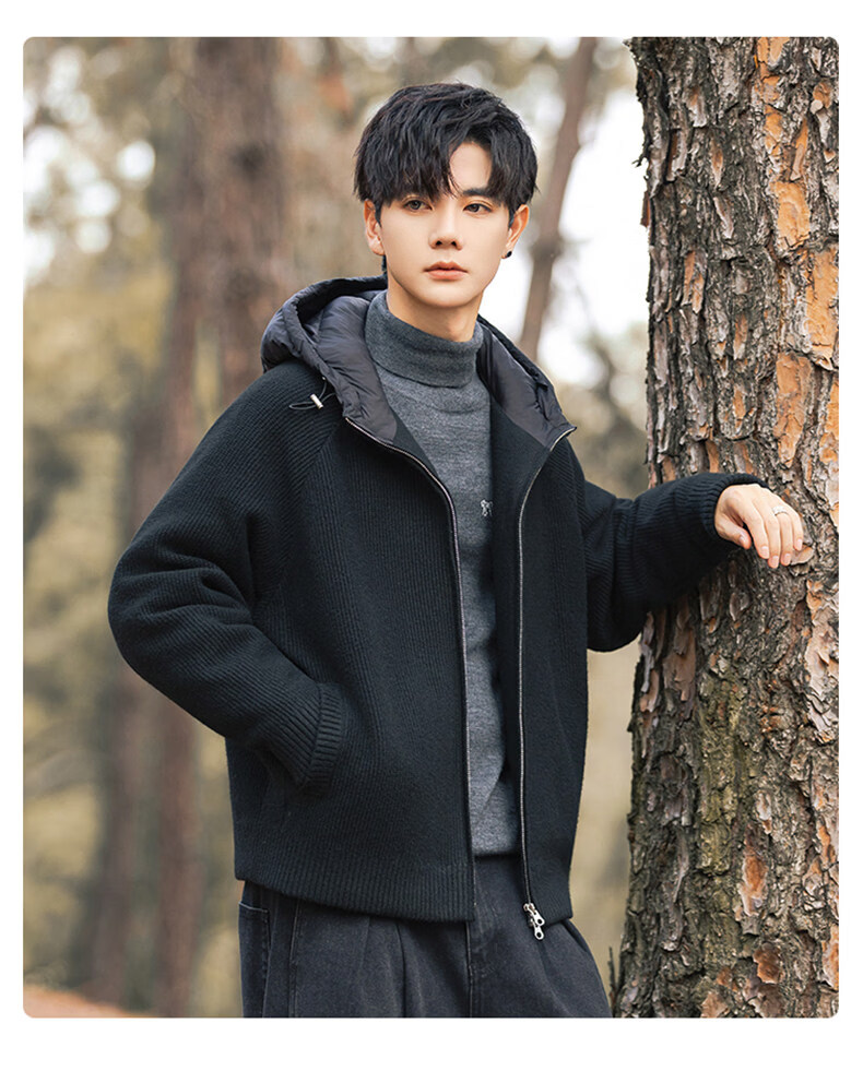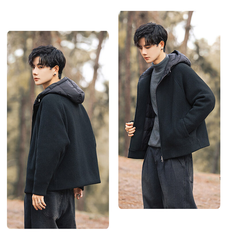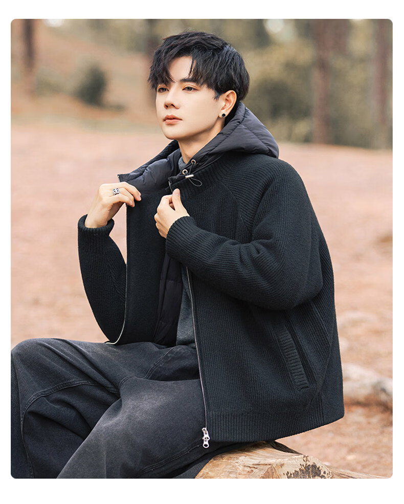 JEEP SPIRIT Мужской пуховик с капюшоном JEEP 2025, новинка зимы, модный утолщенный теплый вязаный кардиган, зимний топ, черный M