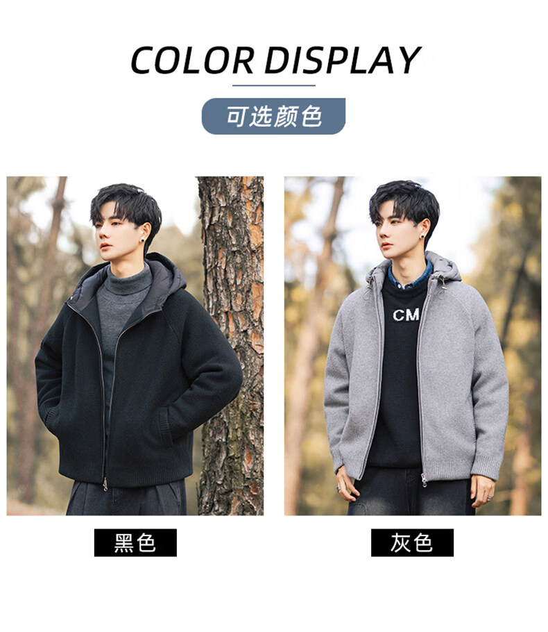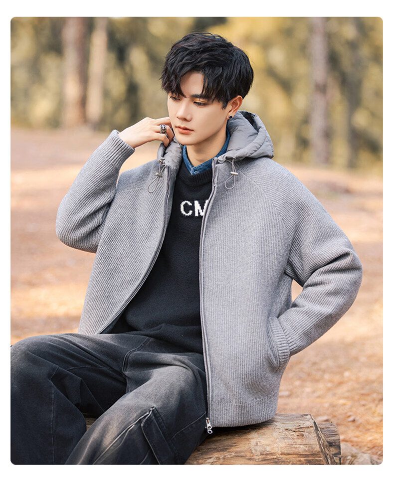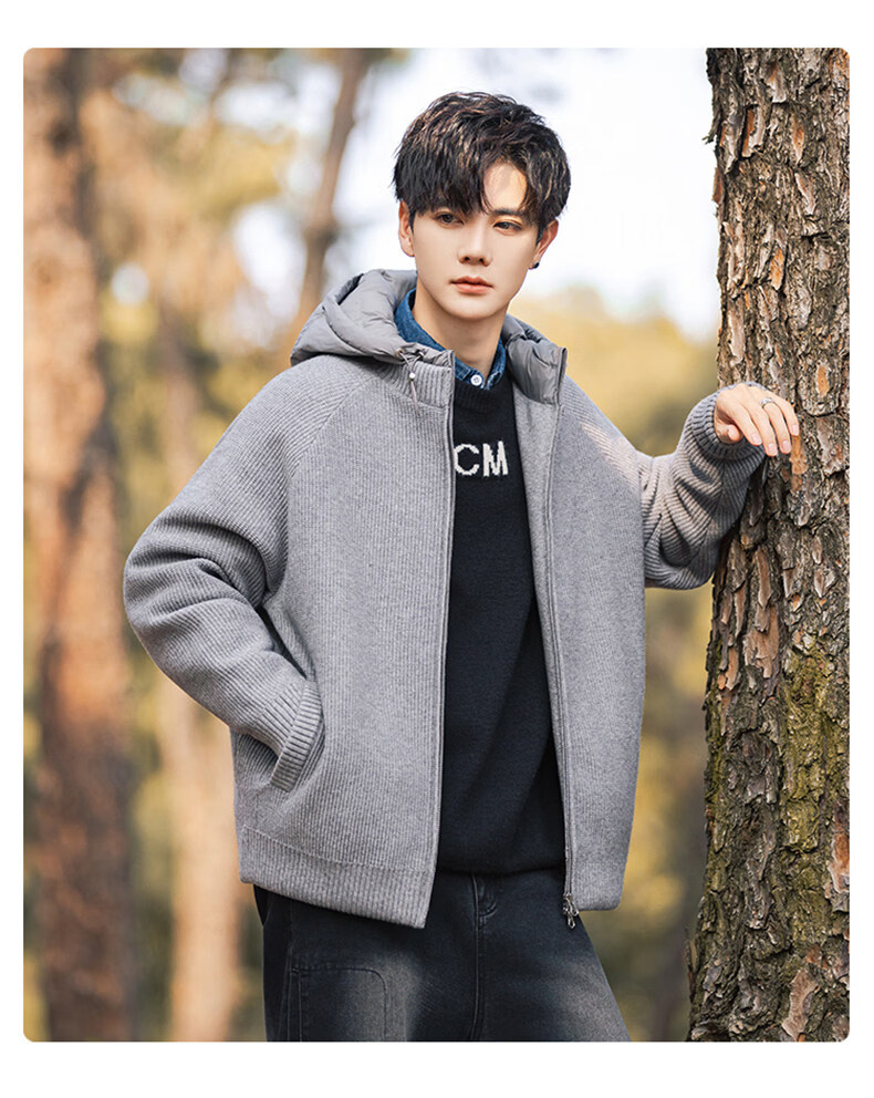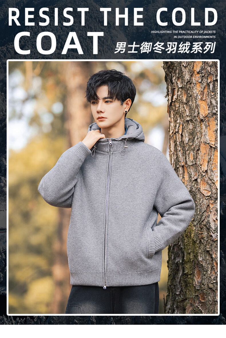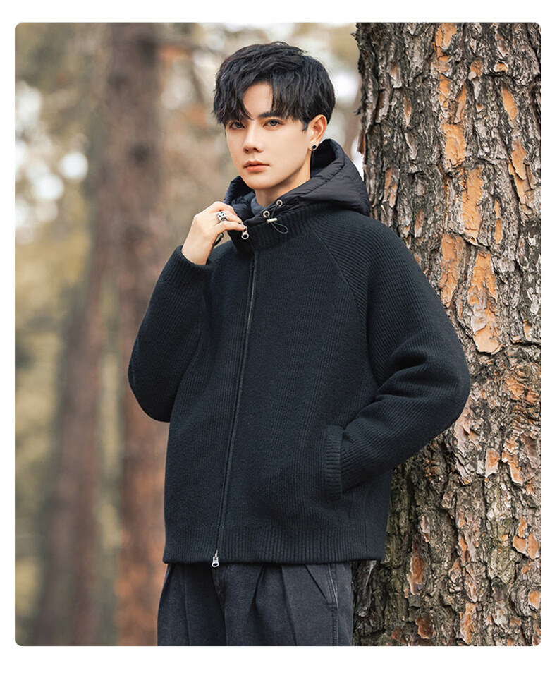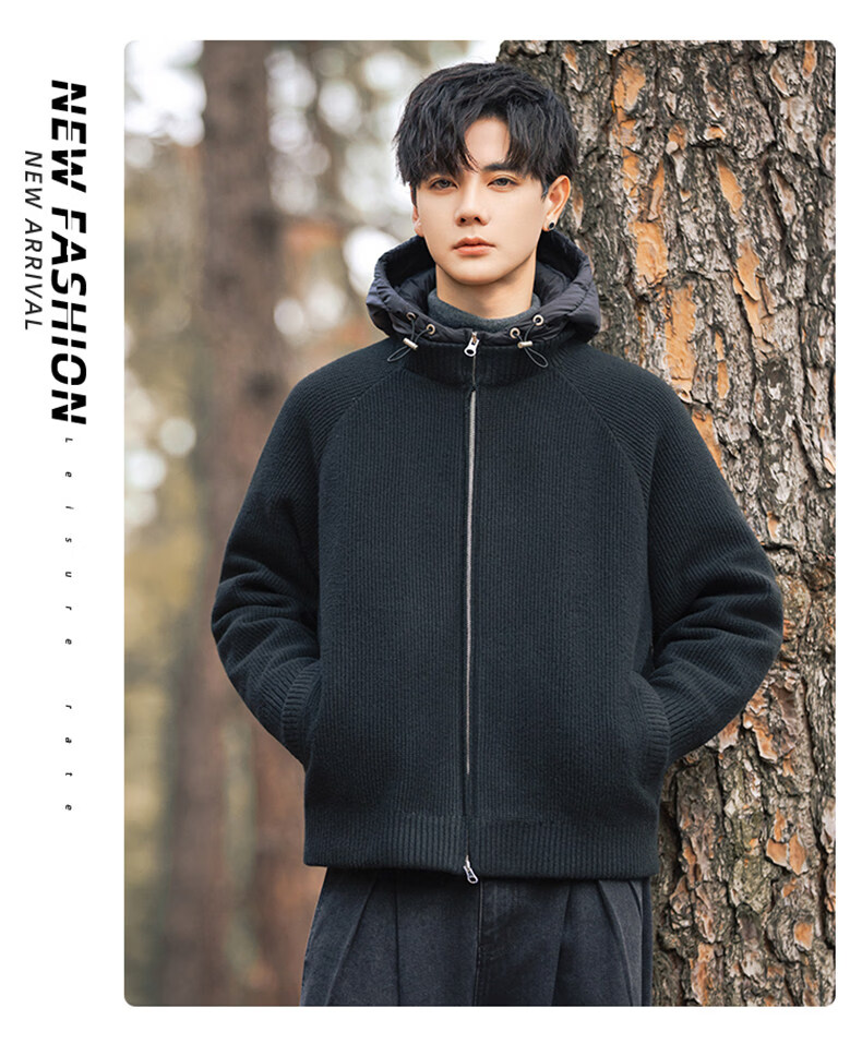 JEEP SPIRIT Мужской пуховик с капюшоном JEEP 2025, новинка зимы, модный утолщенный теплый вязаный кардиган, зимний топ, черный M