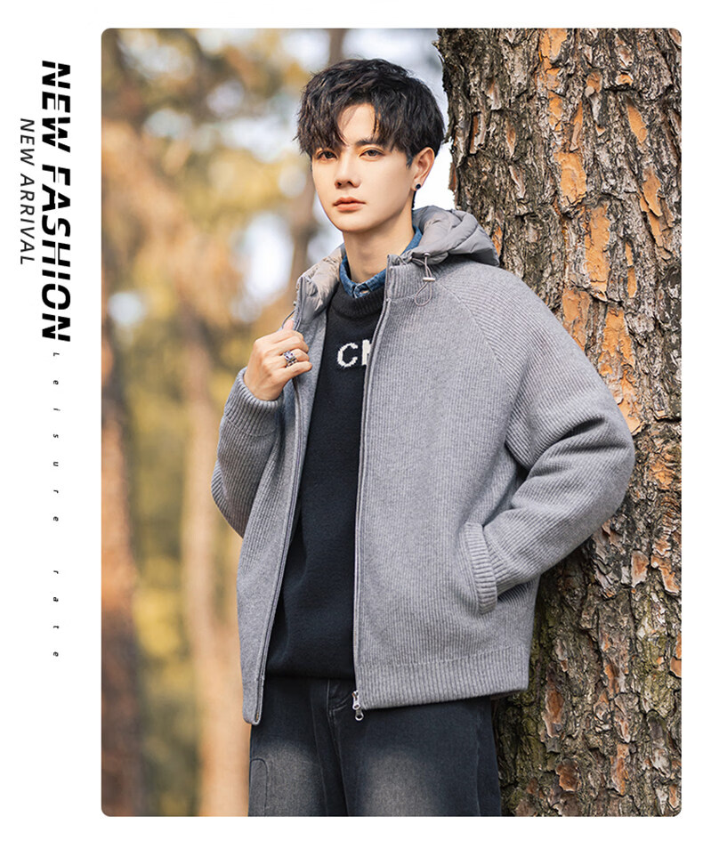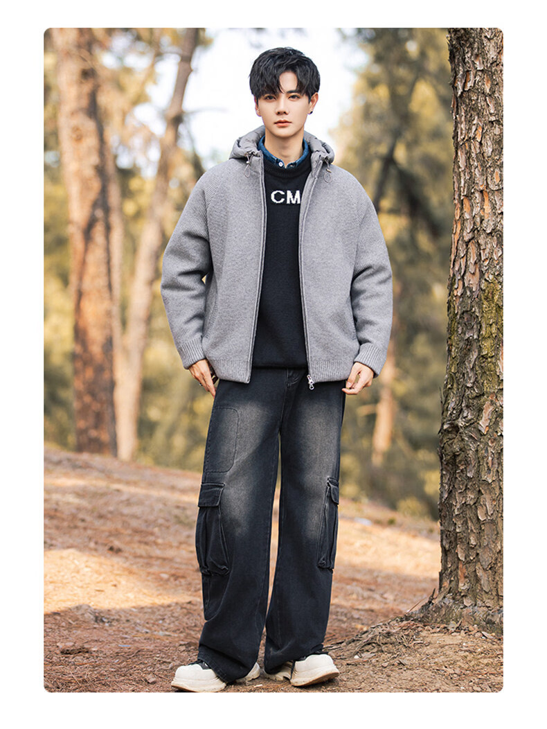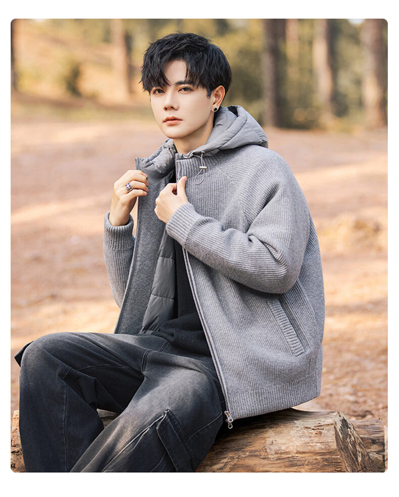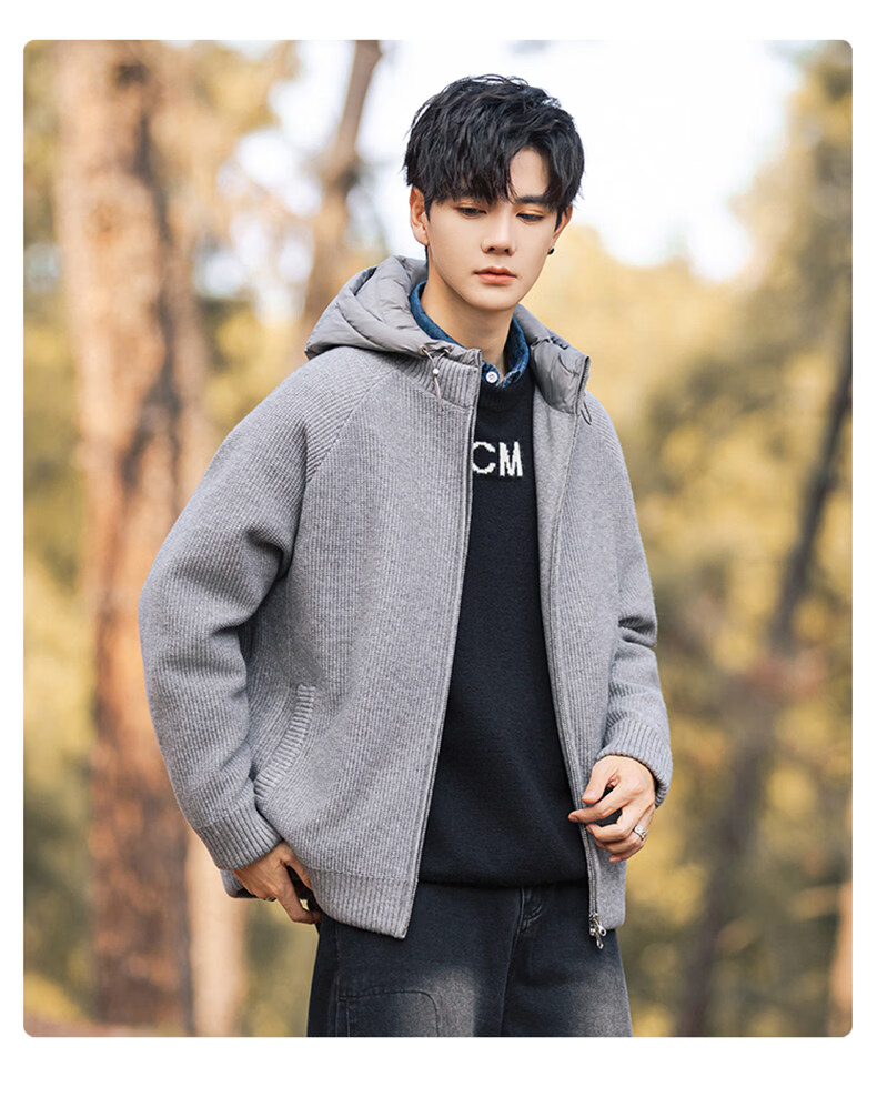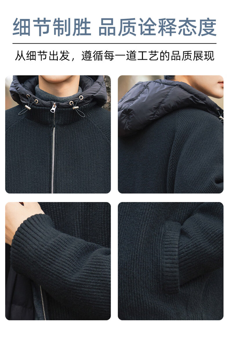 JEEP SPIRIT Мужской пуховик с капюшоном JEEP 2025, новинка зимы, модный утолщенный теплый вязаный кардиган, зимний топ, черный M