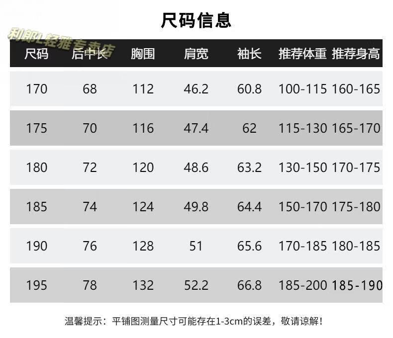 China (cm) 165 / 88-90 170 / 96-98 175 / 108-110 180 / 118-122 185 / 126-130