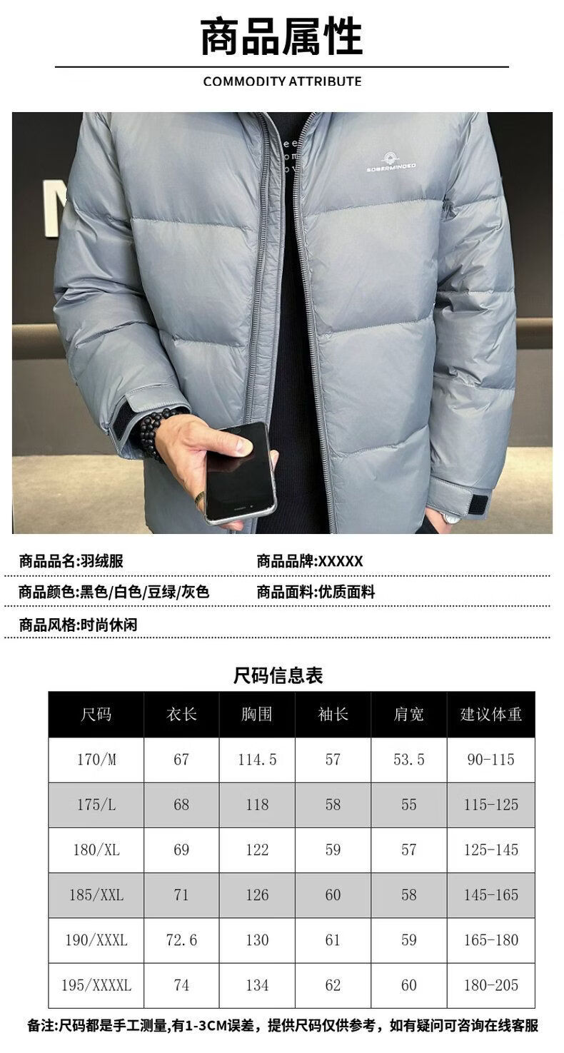 Hengyuan Xiang Autumn and Winter Men's Down Jacket Thickened 2026 New Warm Jacket Job Season Men's Down Jacket 2-3-42 Bean Green YR839 M 90-110Jin Jin equals 0.5 kg