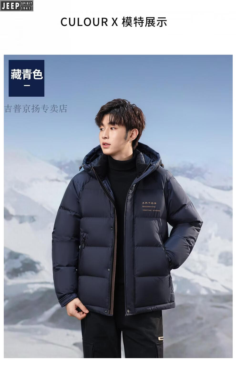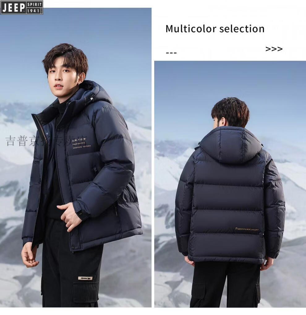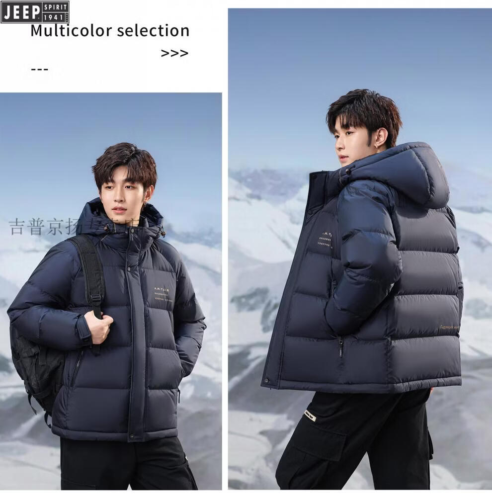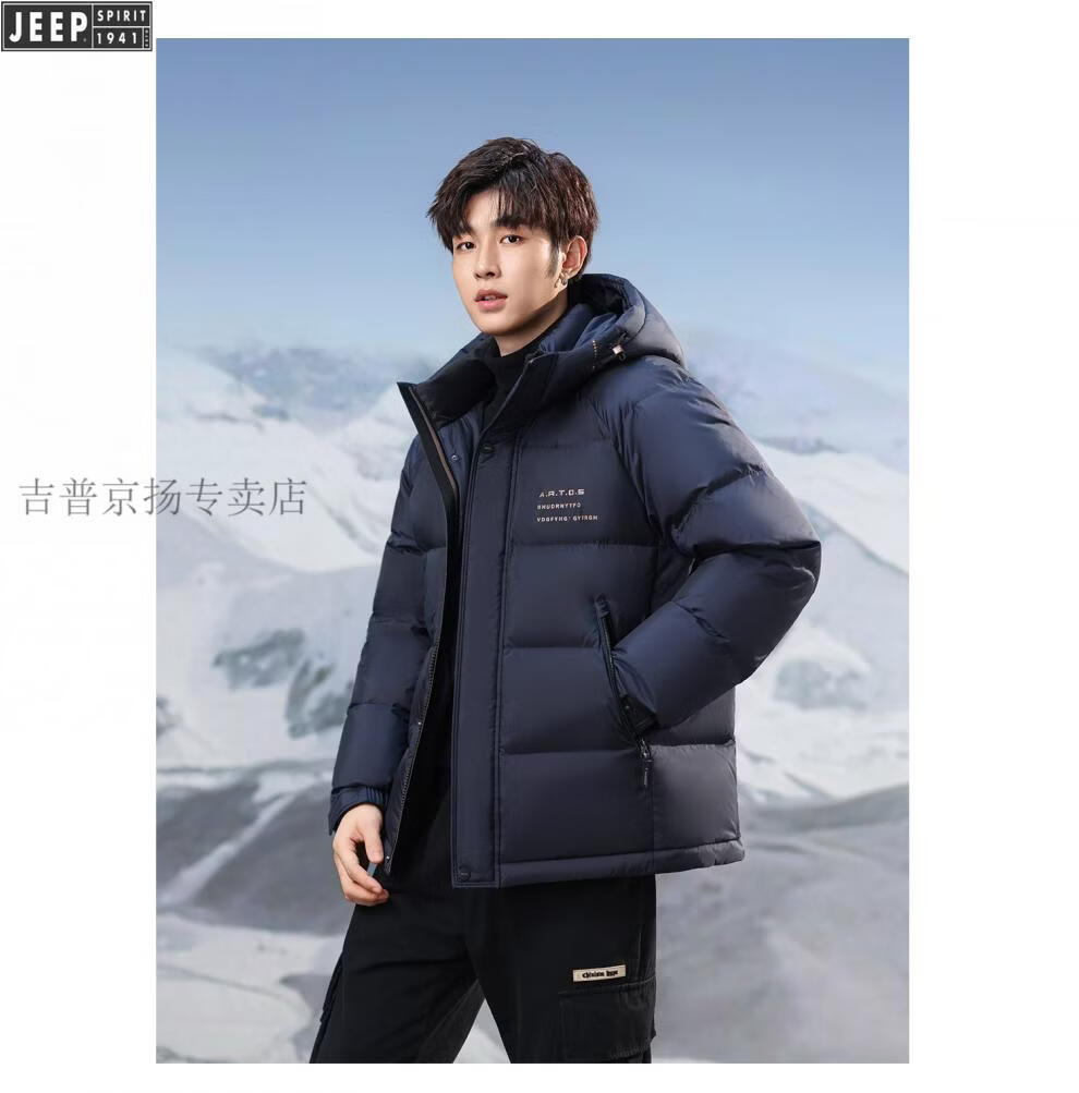 JEEP international brand thickened warm down jacket men's short 2025 winter new duck down hooded casual jacket navy blue M 170 (recommended 100-120 Jin Jin equals 0.5 kg)
