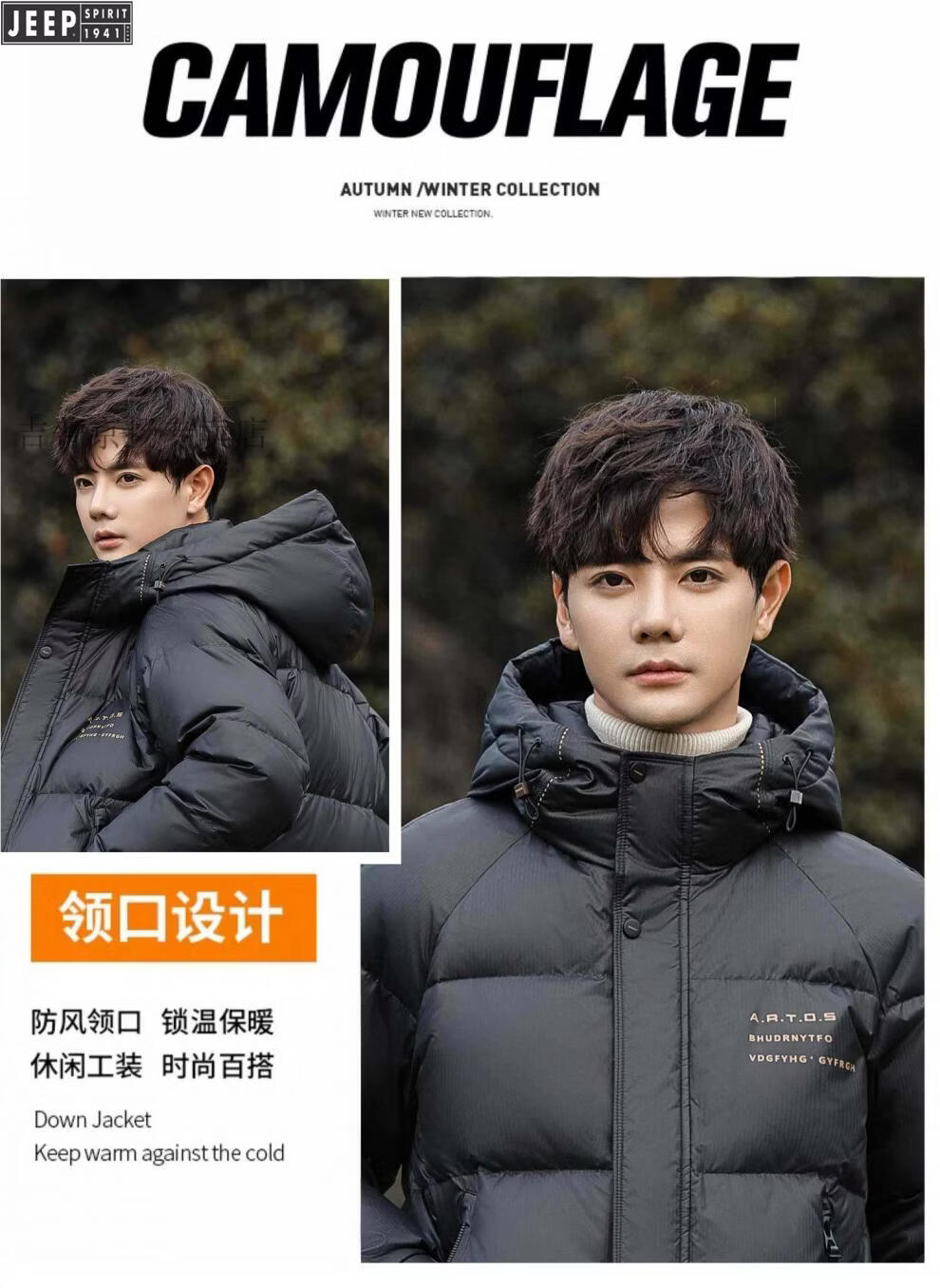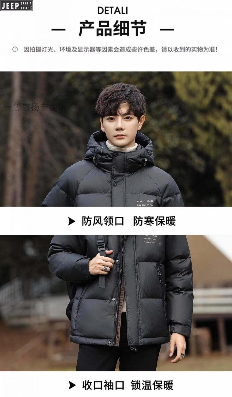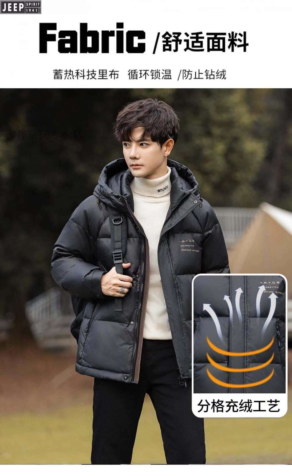 JEEP international brand thickened warm down jacket men's short 2025 winter new duck down hooded casual jacket navy blue M 170 (recommended 100-120 Jin Jin equals 0.5 kg)
