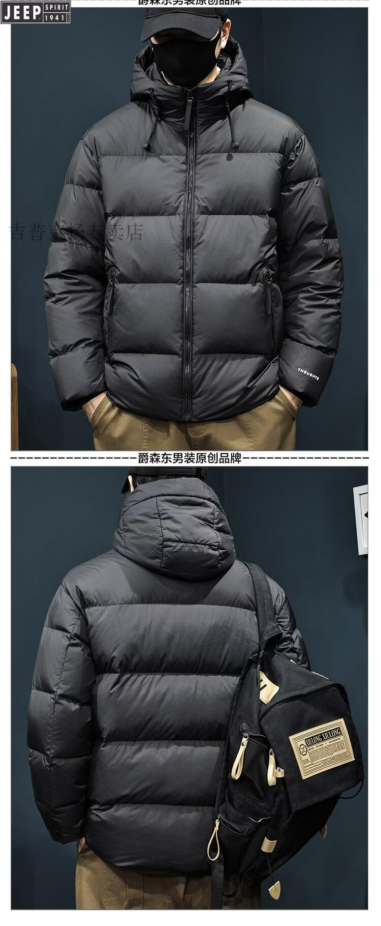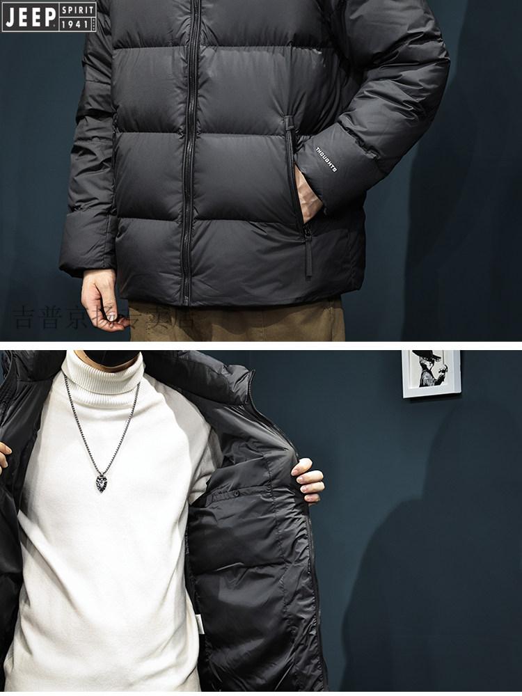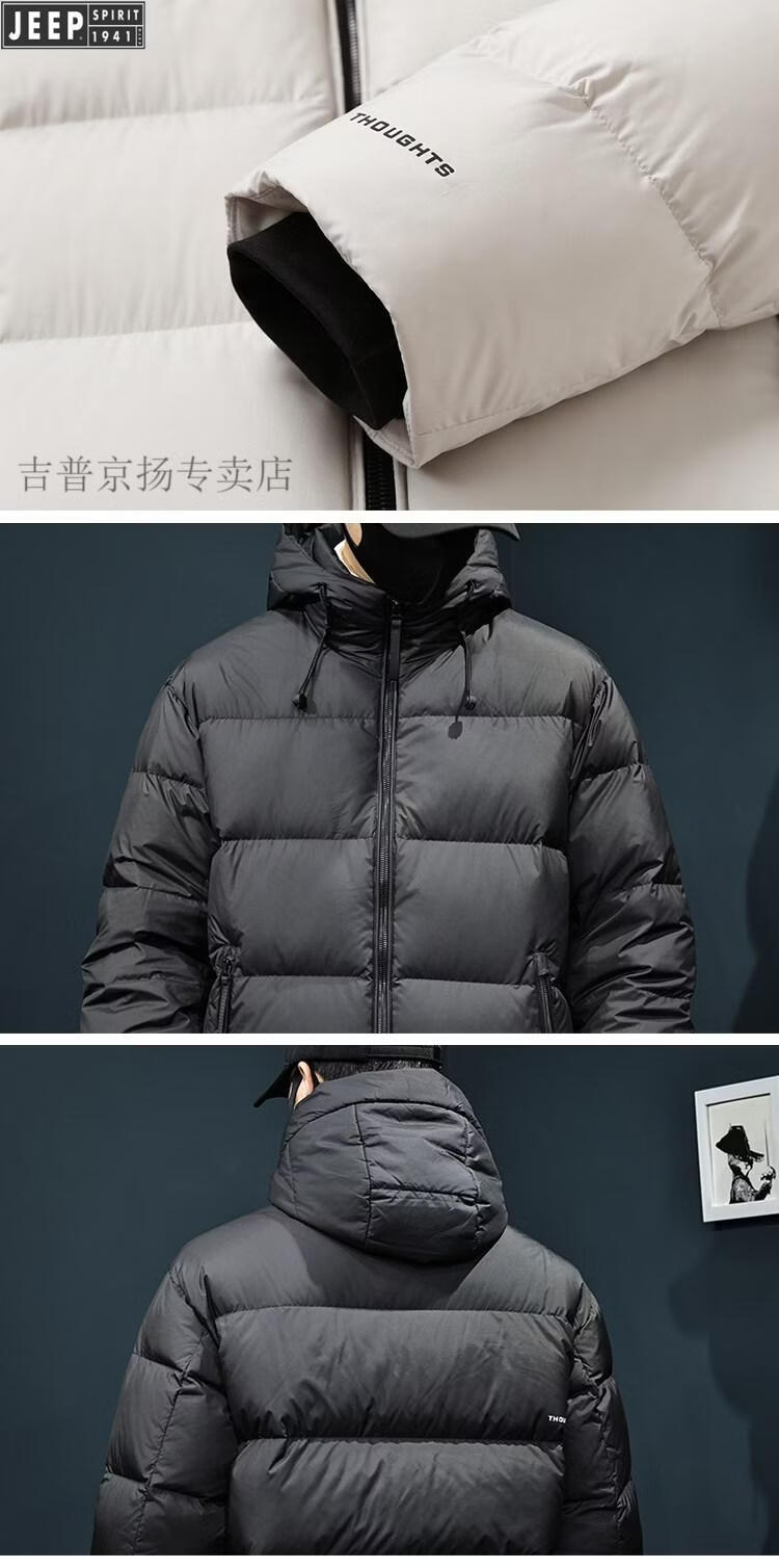 JEEP Jeep International Brand 2025 Новый пуховик мужской зимний с капюшоном Короткий повседневный свободный пуховик Carbon Grey Теплый пуховик L 125-145Jin Jin равен 0,5 кг