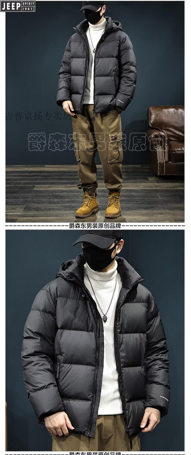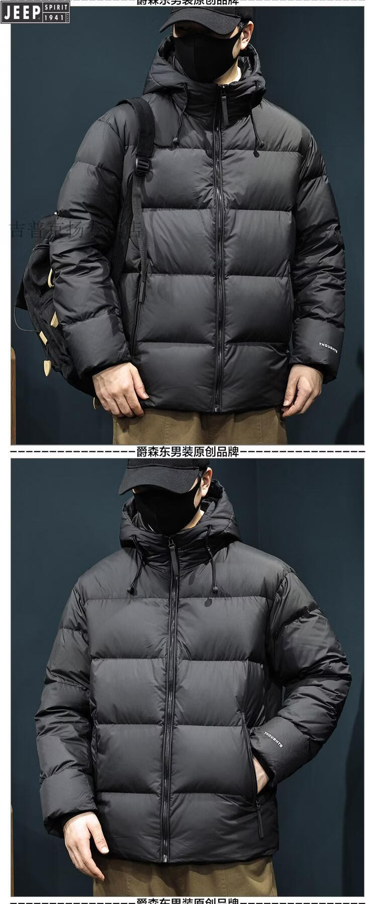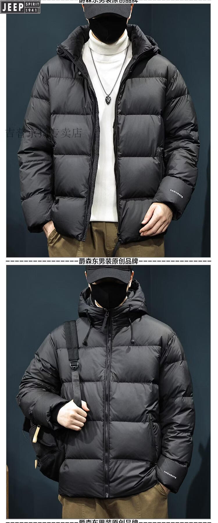 JEEP Jeep International Brand 2025 Новый пуховик мужской зимний с капюшоном Короткий повседневный свободный пуховик Carbon Grey Теплый пуховик L 125-145Jin Jin равен 0,5 кг