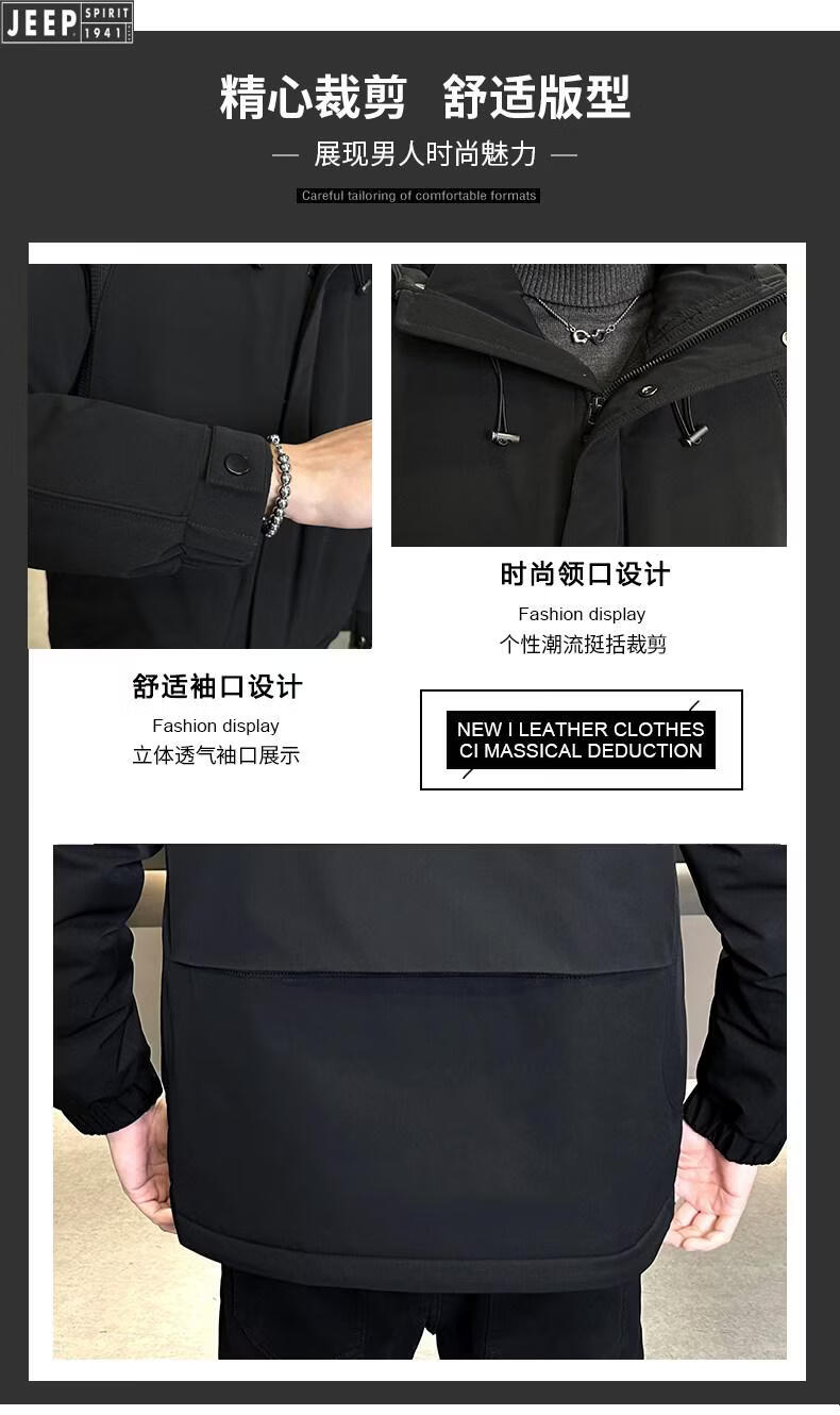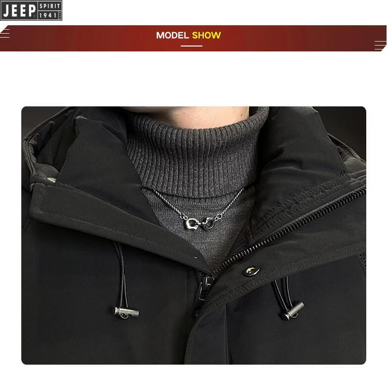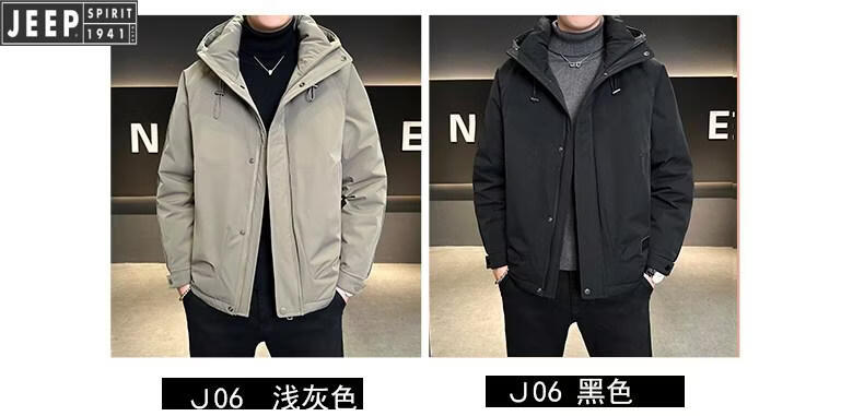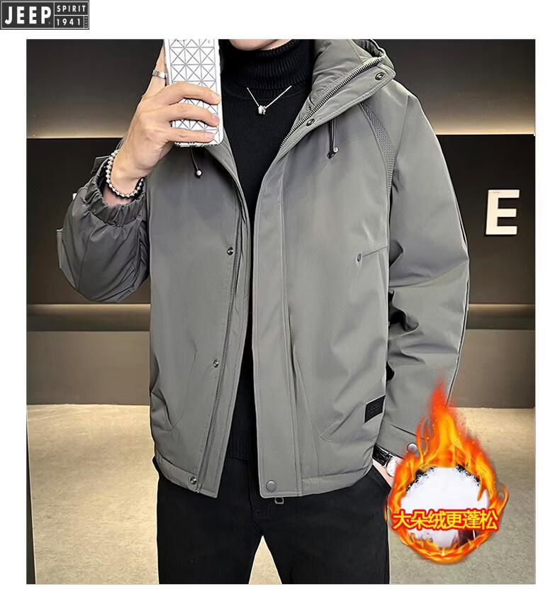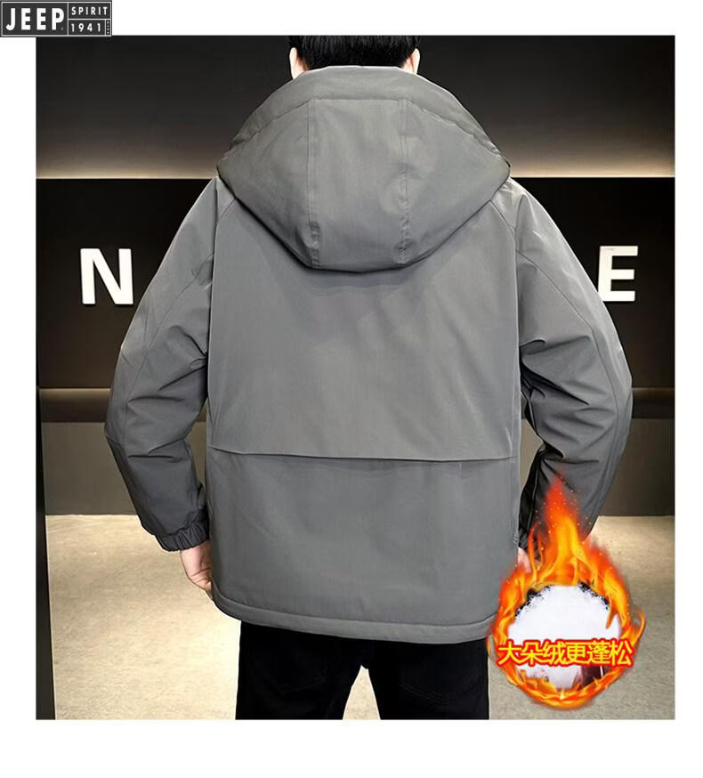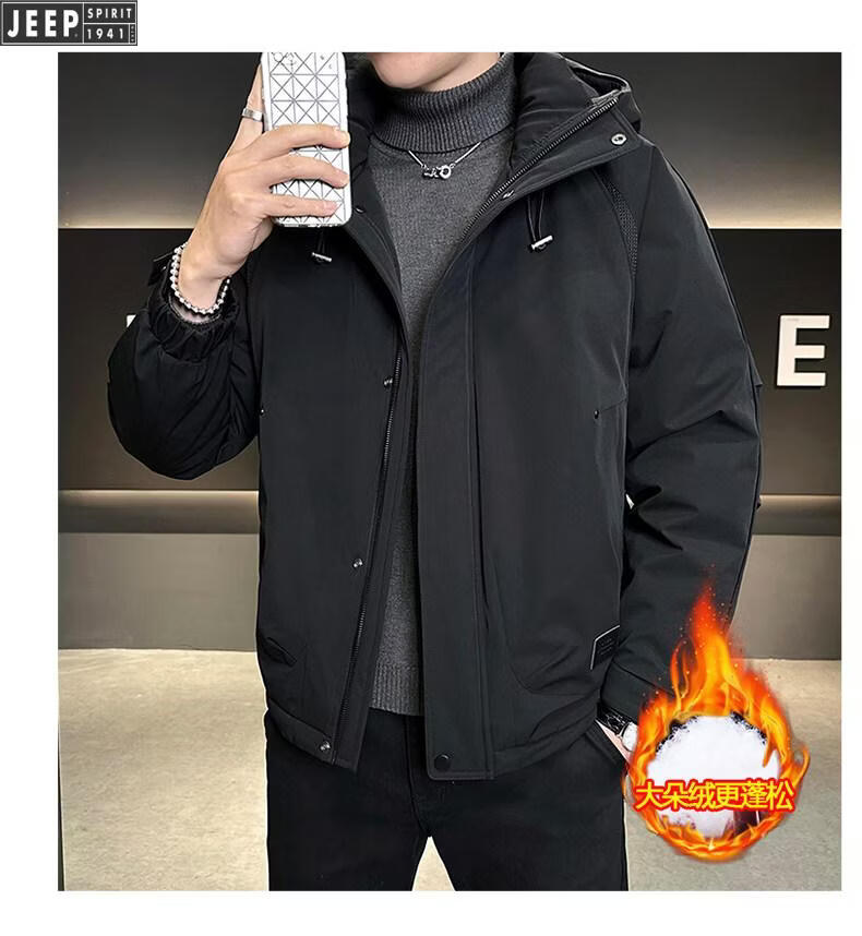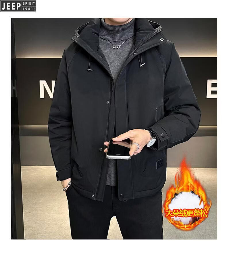 JEEP Мужской пуховик с капюшоном Jeep, зима 2026, новая морозостойкая одежда, утолщенная теплая ветрозащитная куртка, мужская короткая свободная черная XL 135-155Jin Jin равна 0,5 кг