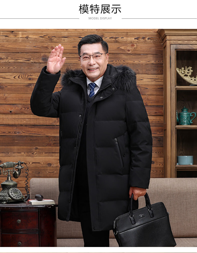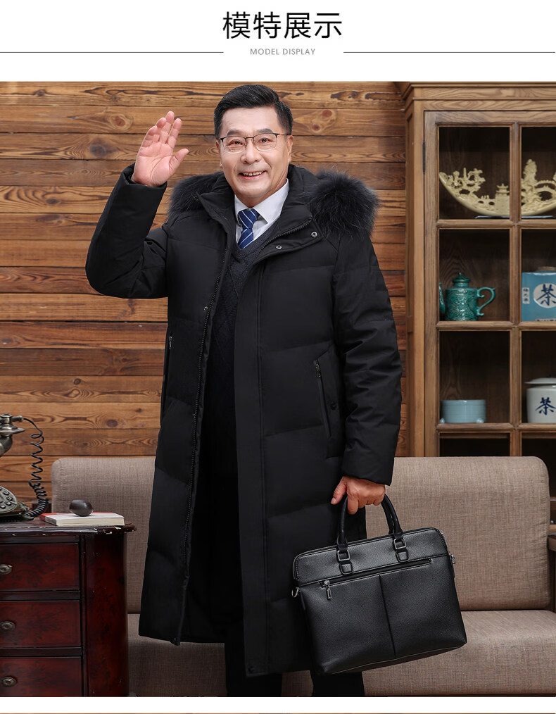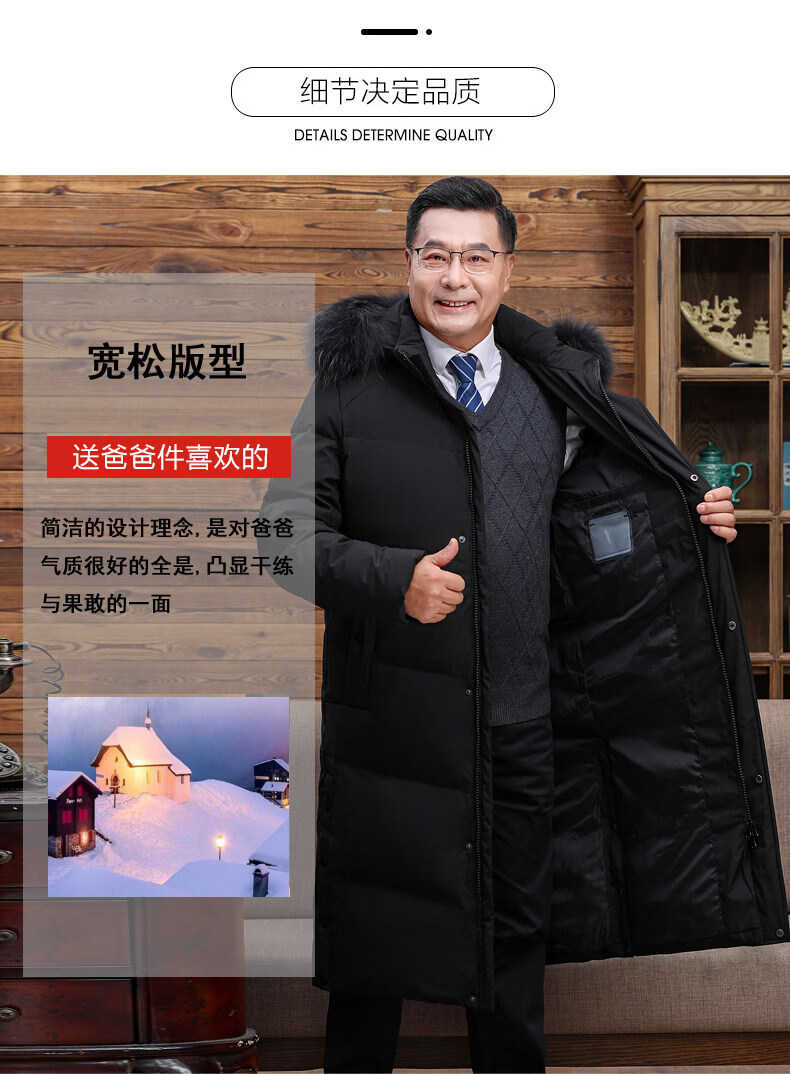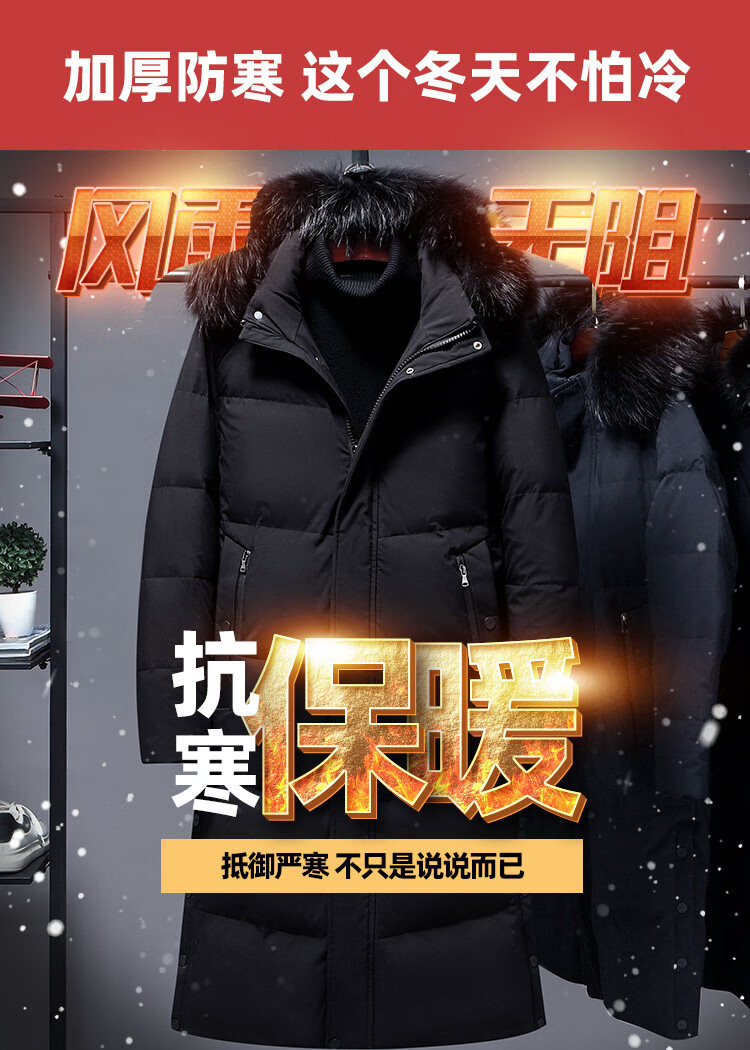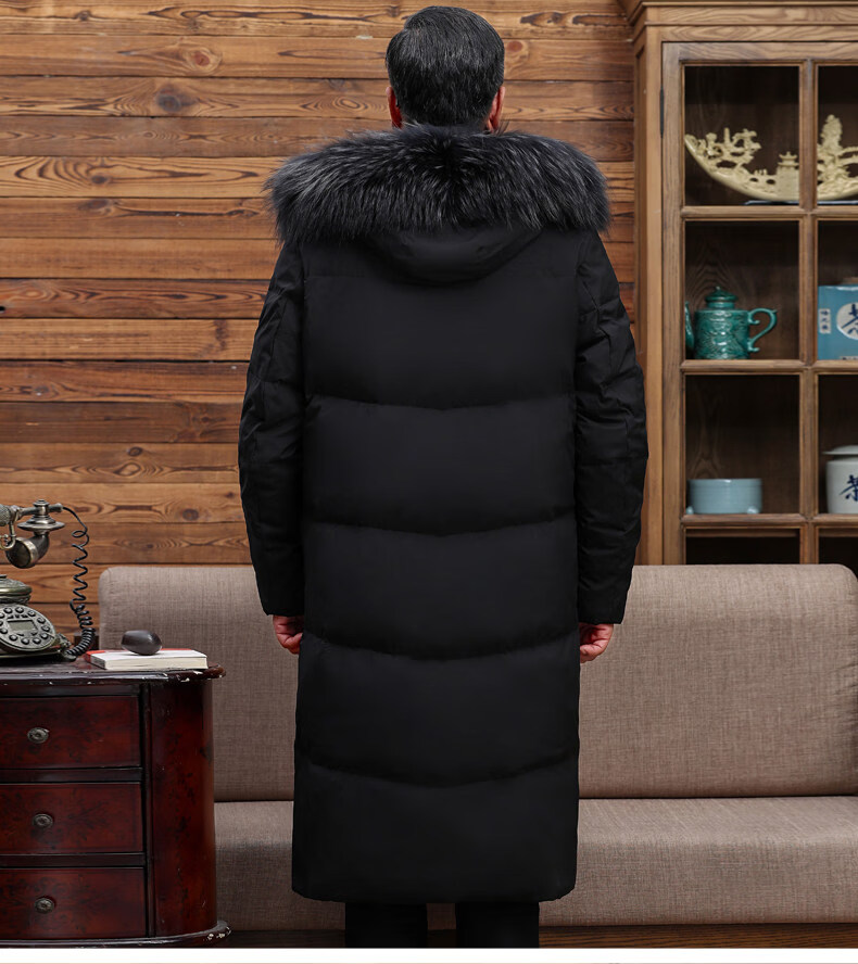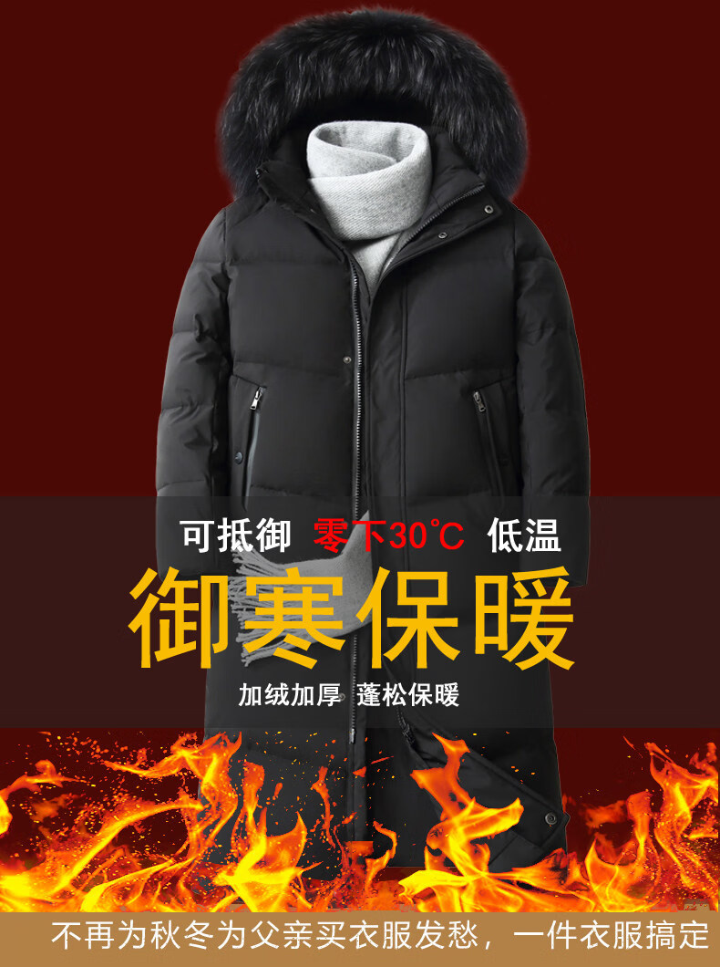 Hengyuanxiang среднего и пожилого возраста пуховик мужской длинный до колена утепленный свободный белый утиный пух средней длины для папы зимнее пальто HYX-208 верхний голубой длинный воротник без волос 2XL 185 160-180Jin Jin равен 0,5 кг