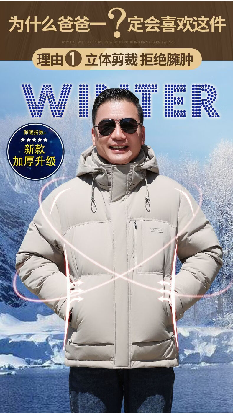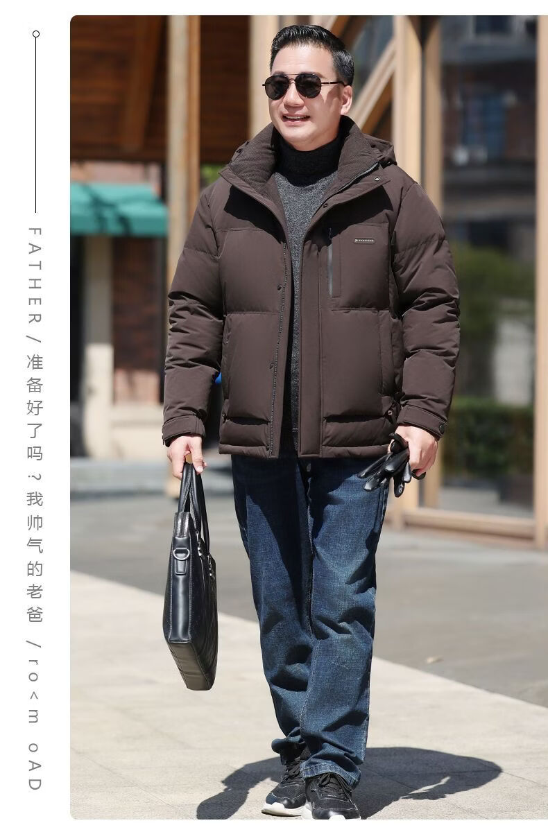 Hengyuanxiang middle-aged and elderly down jacket men's father's winter jacket middle-aged men's winter thickened warm clothes for the elderly 50 years old coffee color L 175 (recommended weight 90-120 Jin Jin equals 0.5 kg)