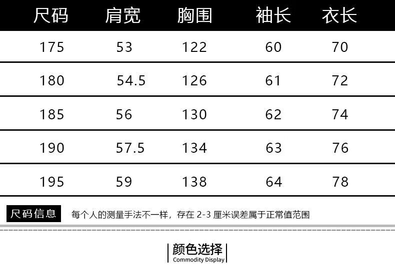 China (cm) 165 / 88-90 170 / 96-98 175 / 108-110 180 / 118-122 185 / 126-130
