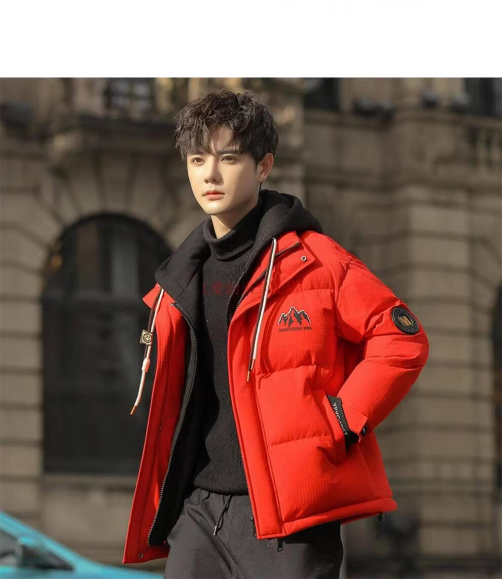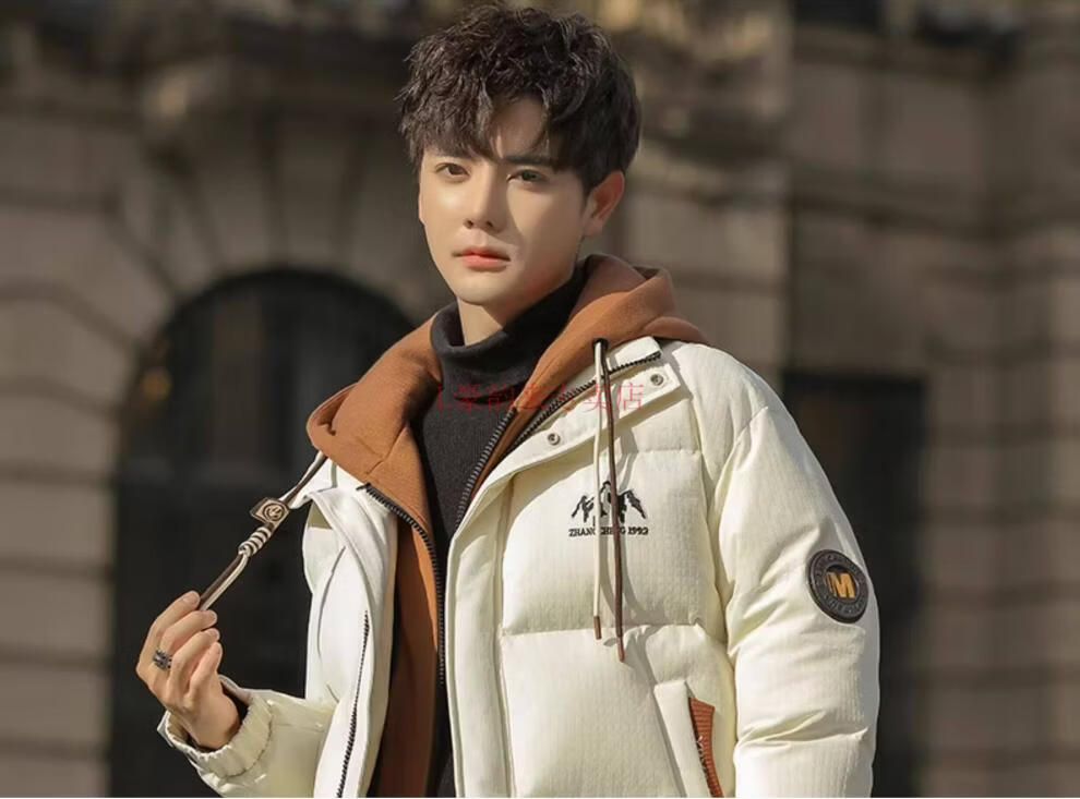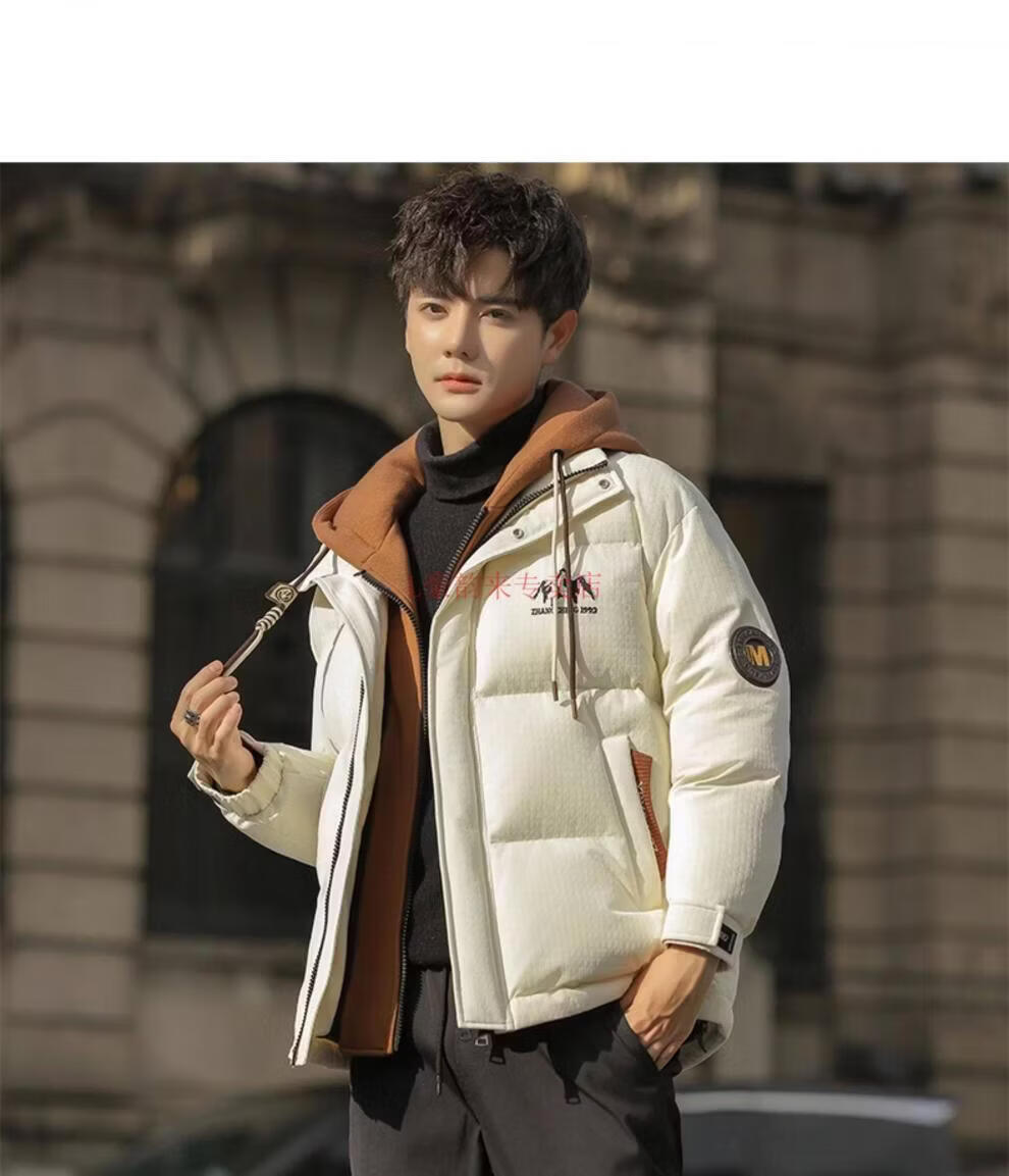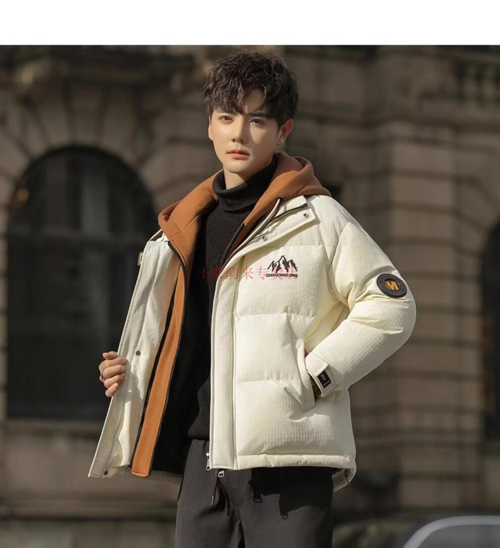 LILANZ пуховик мужская куртка с капюшоном 2025 зима новый стиль красивые утолщенные морозостойкие зимние студенческие топы кремово-белые XL 125-136Jin Jin весит около 0,5 кг