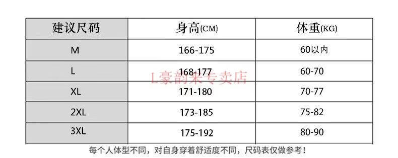 China (cm) 165 / 88-90 170 / 96-98 175 / 108-110 180 / 118-122 185 / 126-130