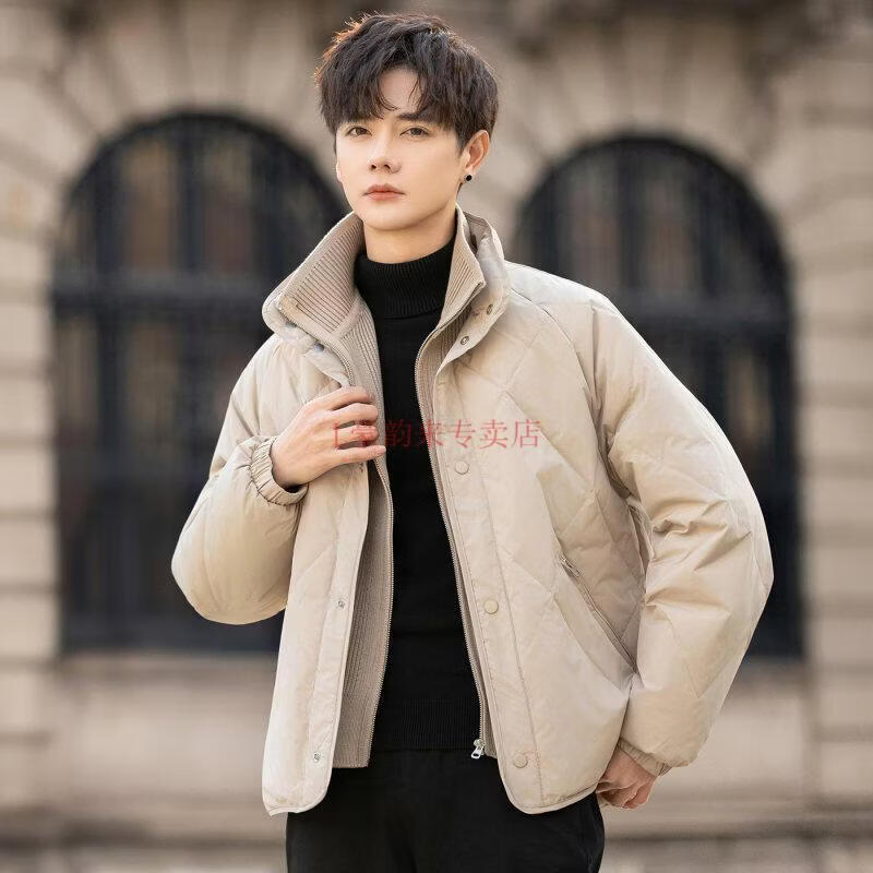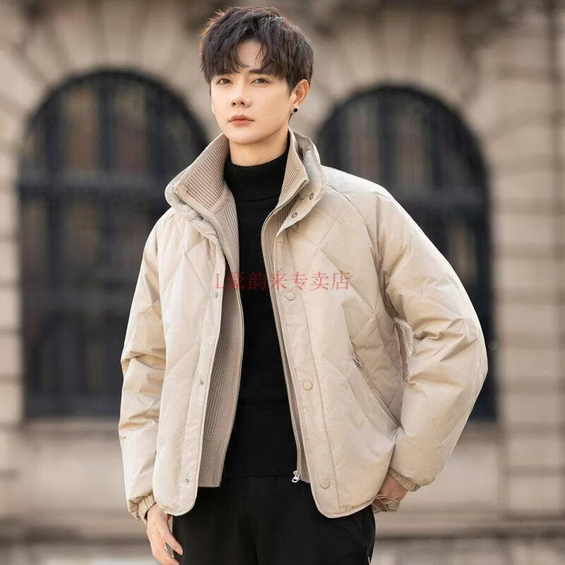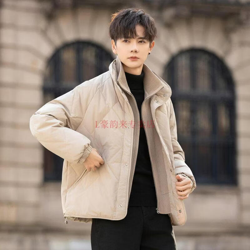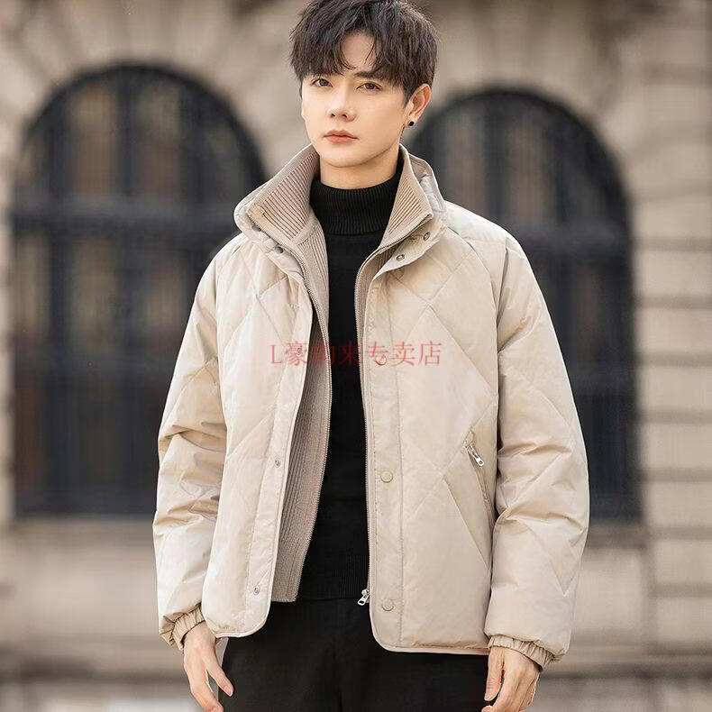 LILANZ вязаный пуховик из двух частей, мужской зимний пуховик с воротником-стойкой, легкое утолщенное пальто, красивое зимнее пальто национального стандарта 90, цвета хаки, белый утиный пух, L 120 или меньше