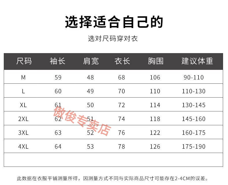 China (cm) 165 / 88-90 170 / 96-98 175 / 108-110 180 / 118-122 185 / 126-130