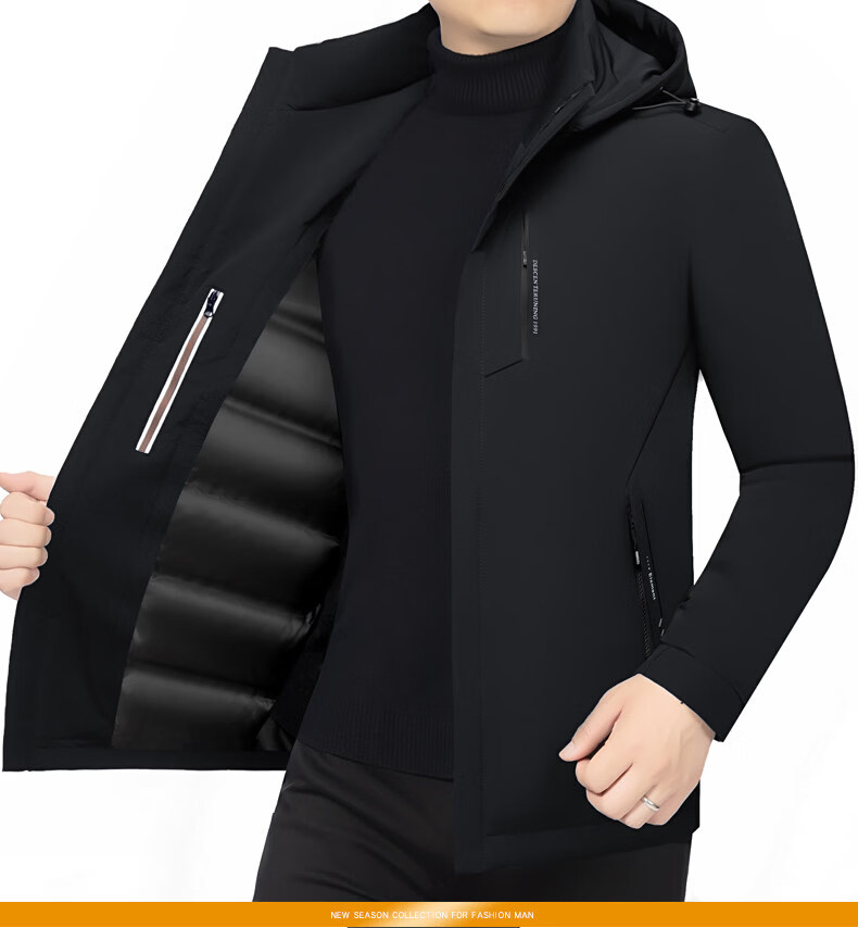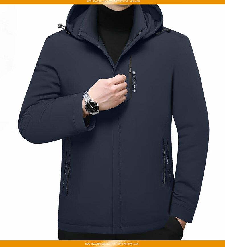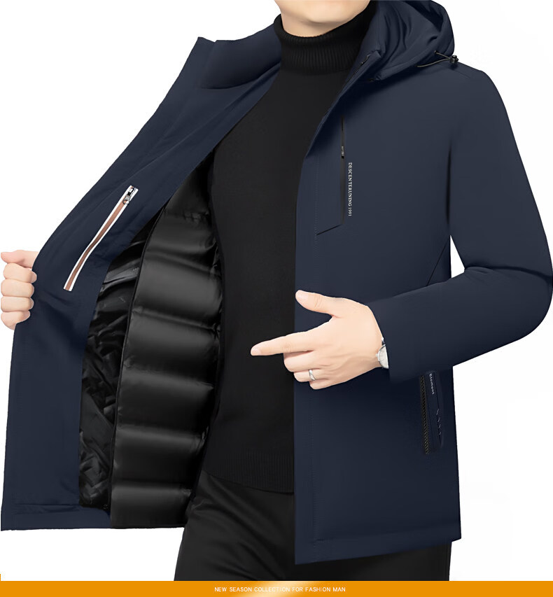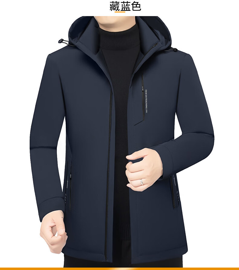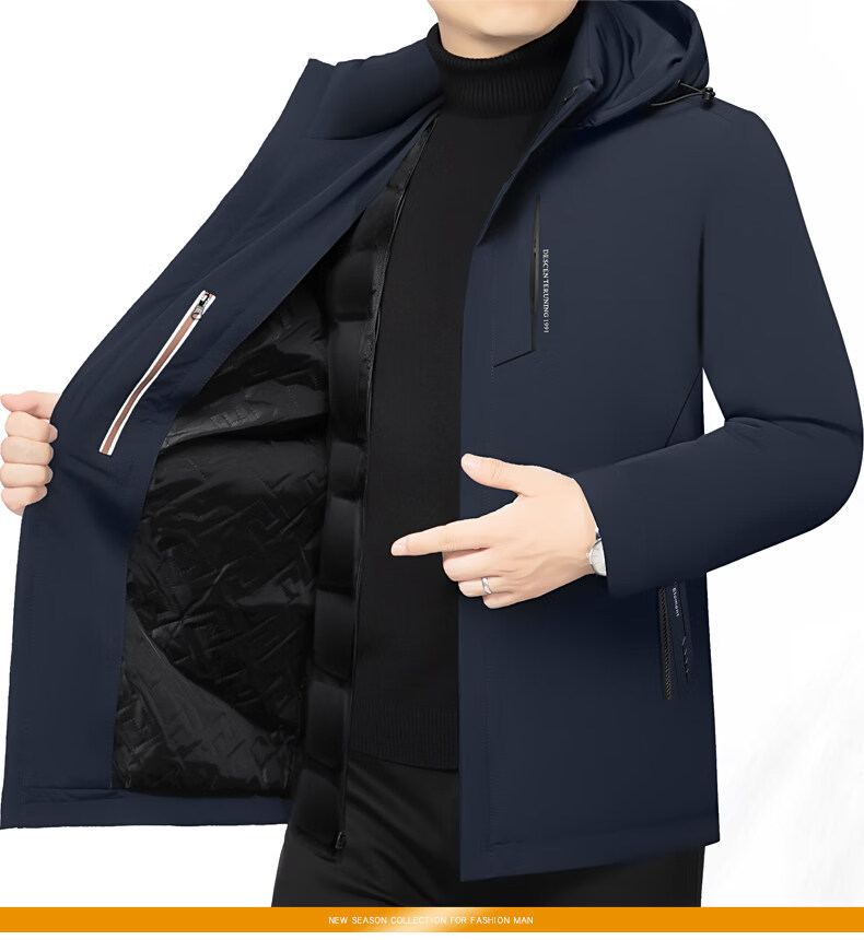 Торговый центр LiLang, мужской деловой пуховик с капюшоном в том же стиле, мужская повседневная куртка, утолщенная съемная подкладка, теплый гусиный пух, темно-синий M 170 90-120Jin Jin равен 0,5 кг