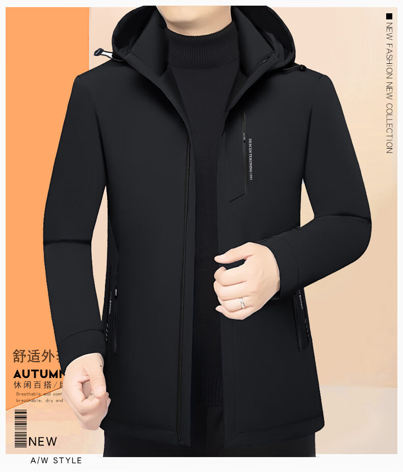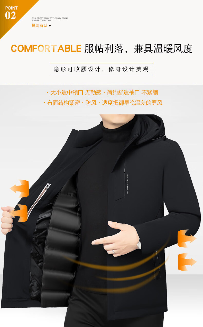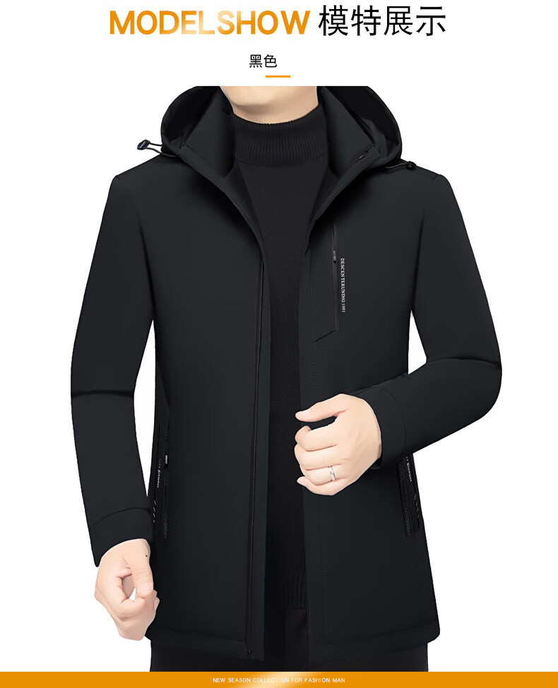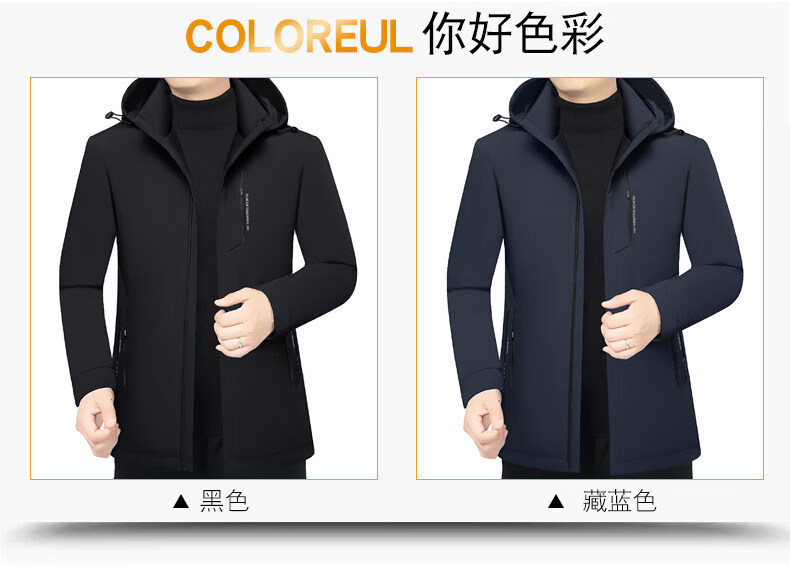 Торговый центр LiLang, мужской деловой пуховик с капюшоном в том же стиле, мужская повседневная куртка, утолщенная съемная подкладка, теплый гусиный пух, темно-синий M 170 90-120Jin Jin равен 0,5 кг
