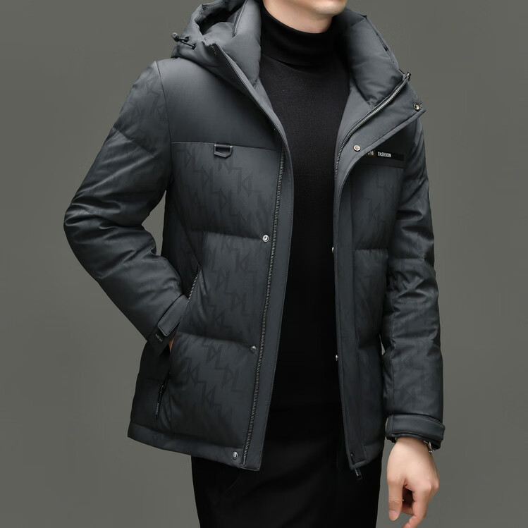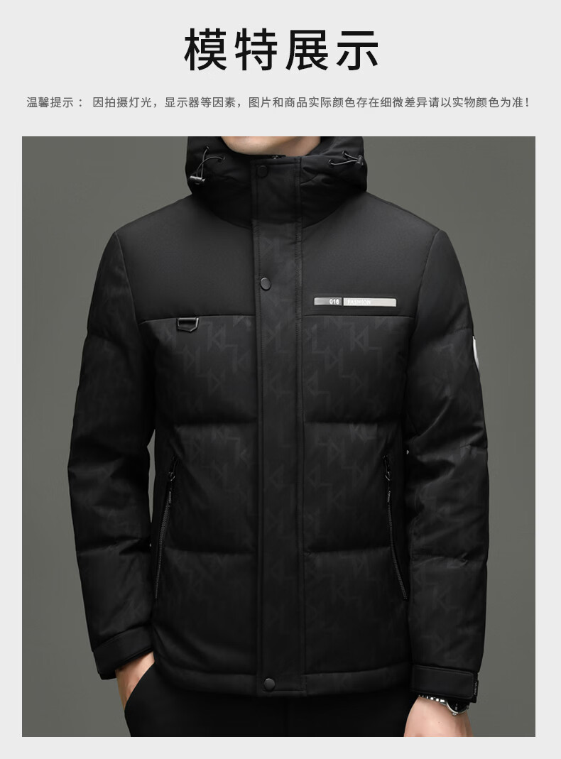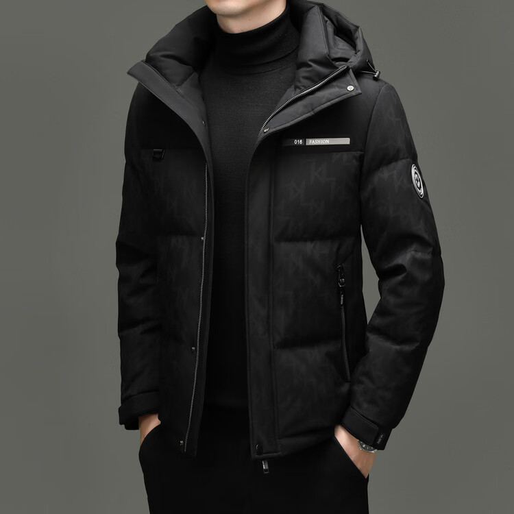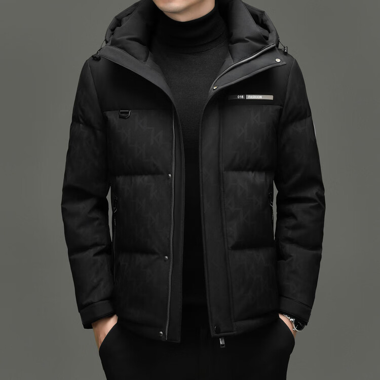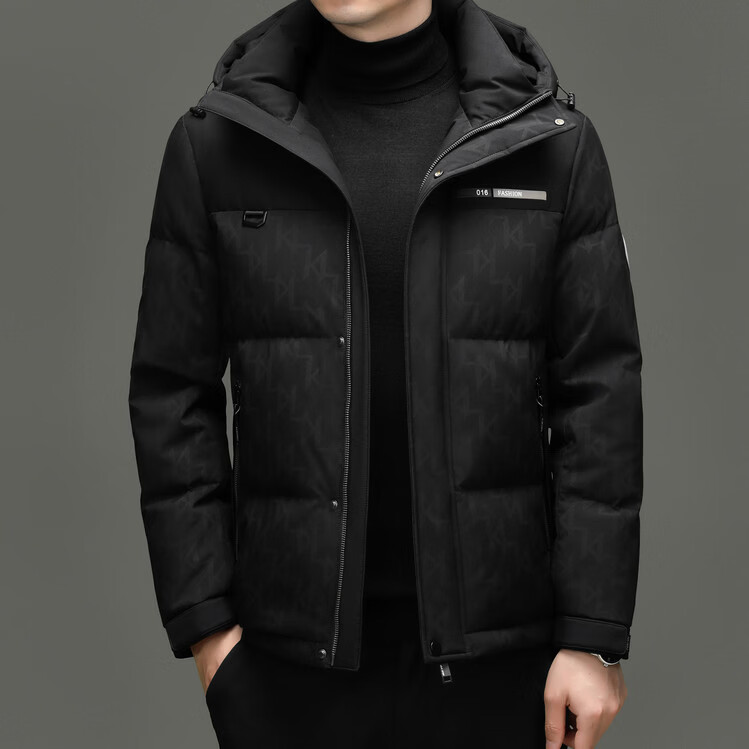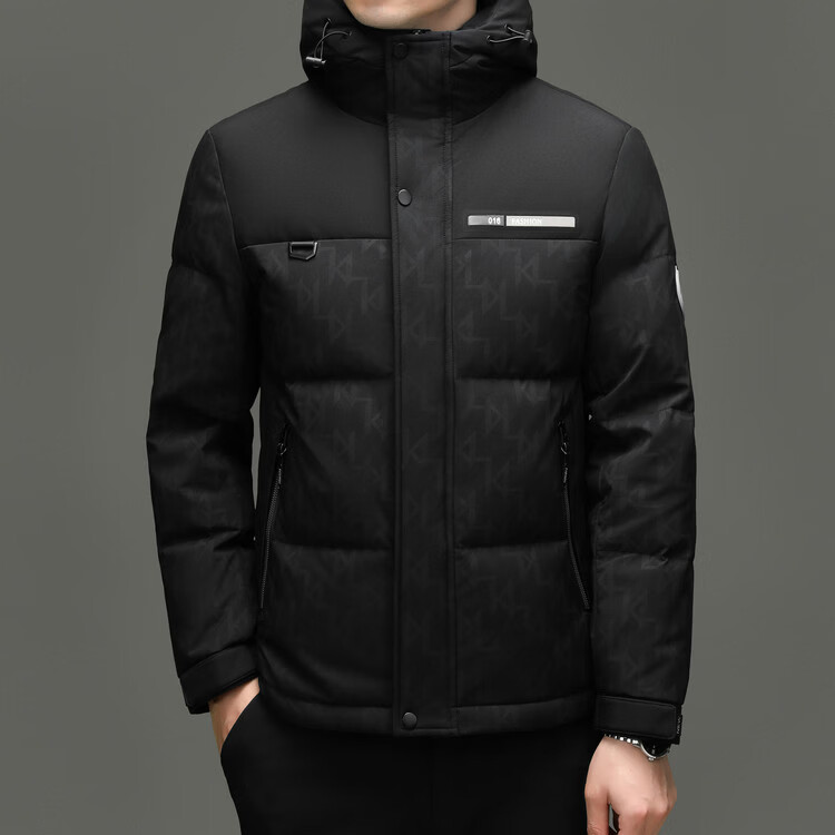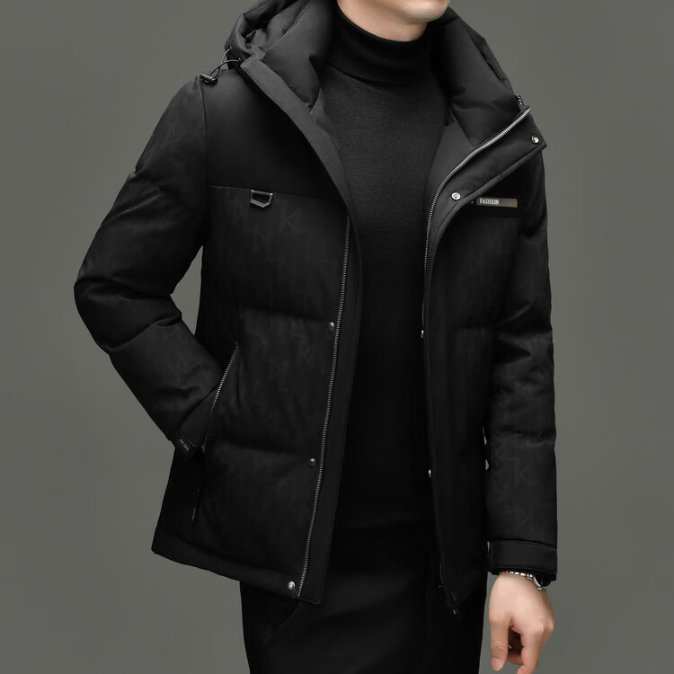 Snow Flying (SNOWFLYING) high-end big-name down jacket men's winter short bread coat middle-aged dad thickened warm hooded duck down jacket black L men's 2025 new model recommended 120-140 Jin Jin equals 0.5 kg