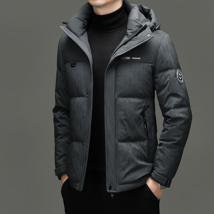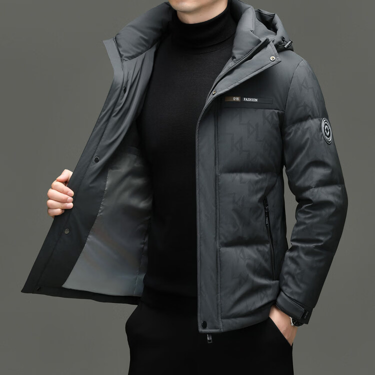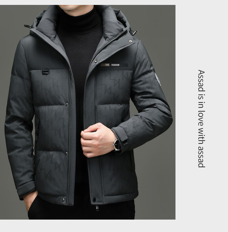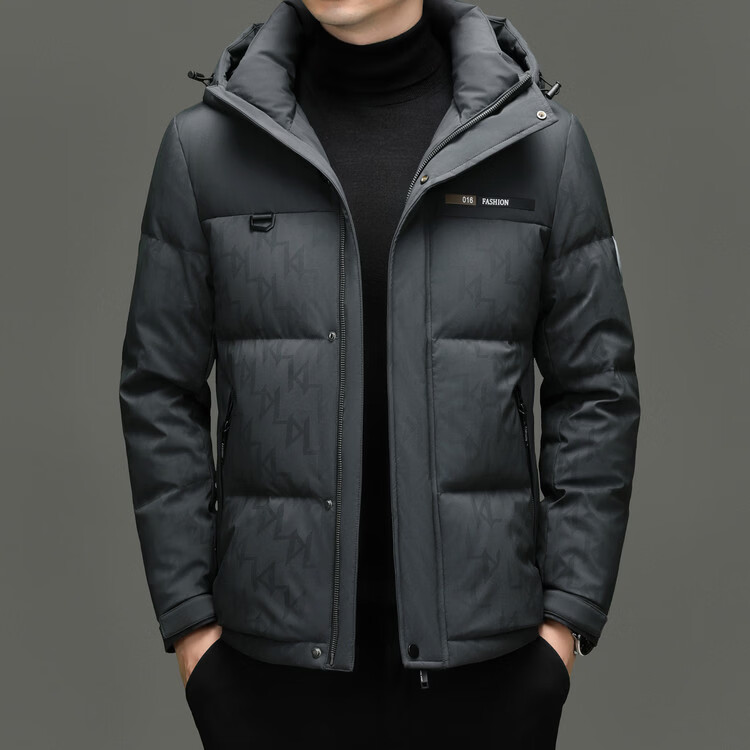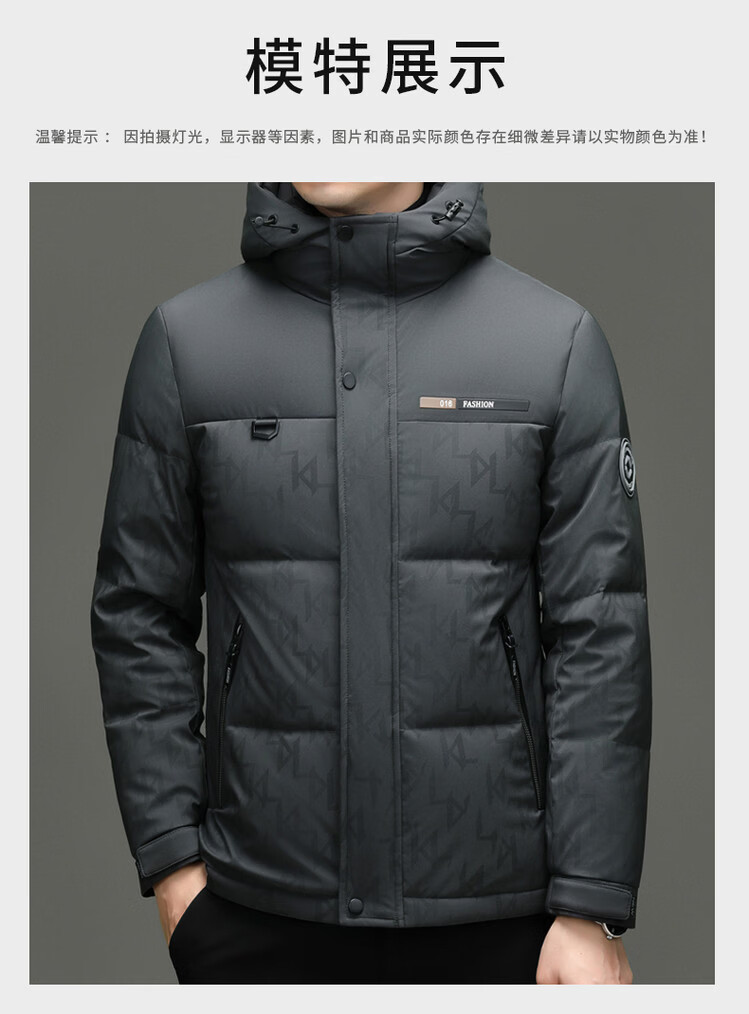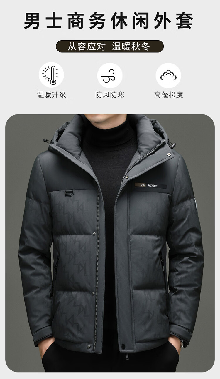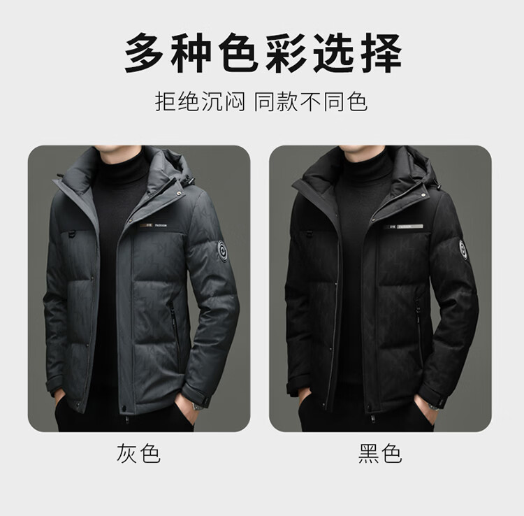 Snow Flying (SNOWFLYING) high-end big-name down jacket men's winter short bread coat middle-aged dad thickened warm hooded duck down jacket black L men's 2025 new model recommended 120-140 Jin Jin equals 0.5 kg