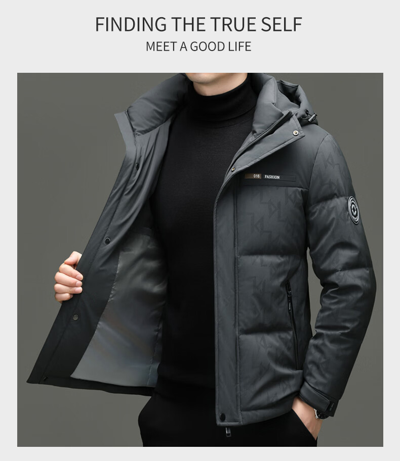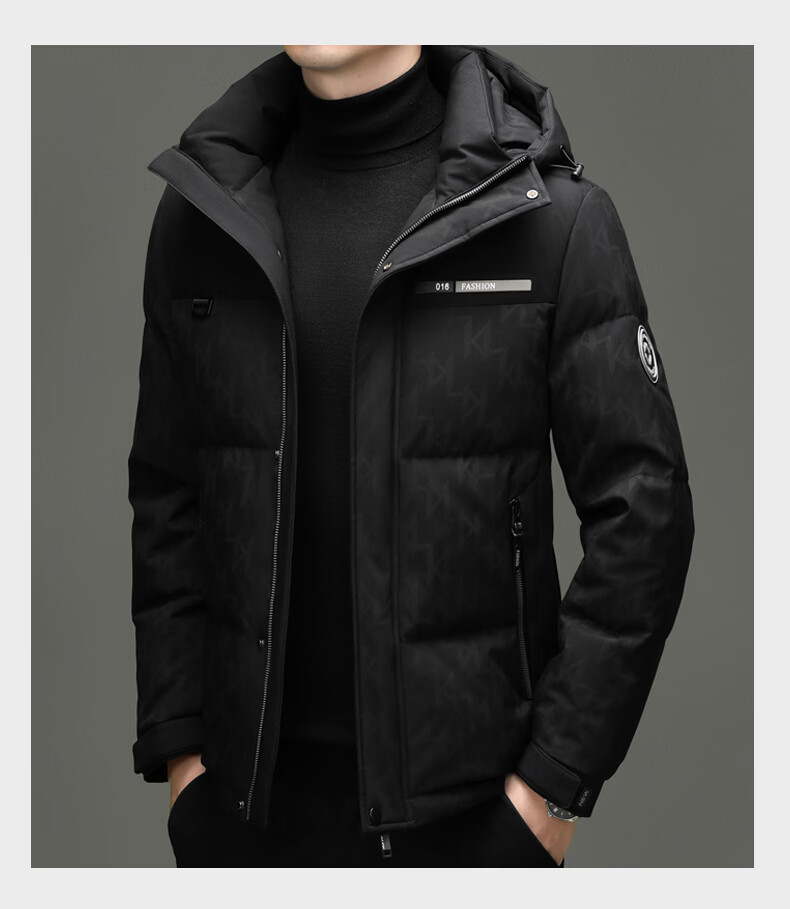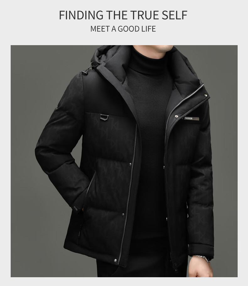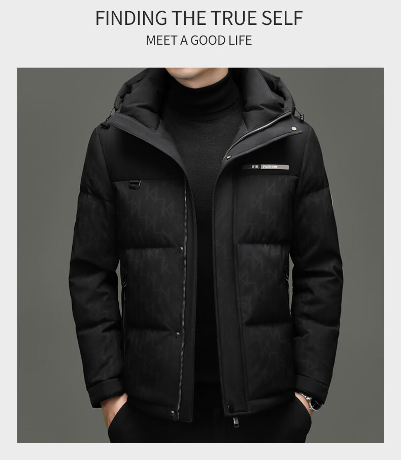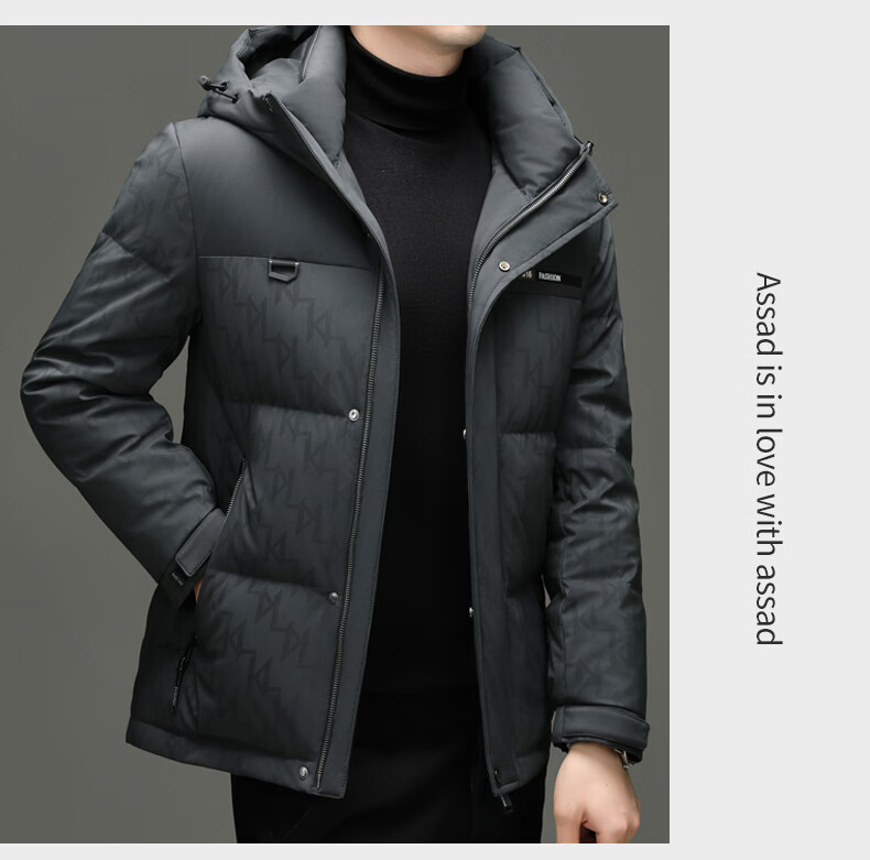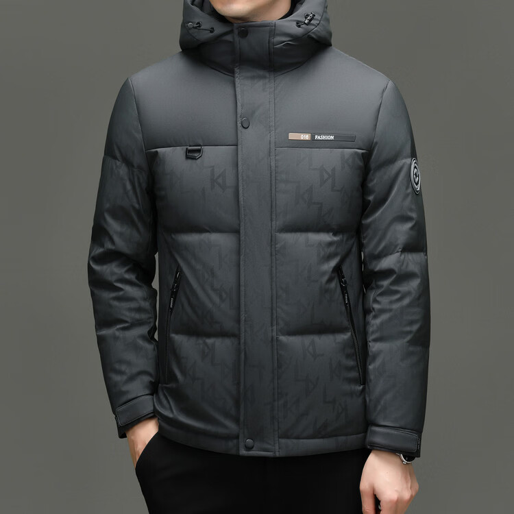 Snow Flying (SNOWFLYING) high-end big-name down jacket men's winter short bread coat middle-aged dad thickened warm hooded duck down jacket black L men's 2025 new model recommended 120-140 Jin Jin equals 0.5 kg