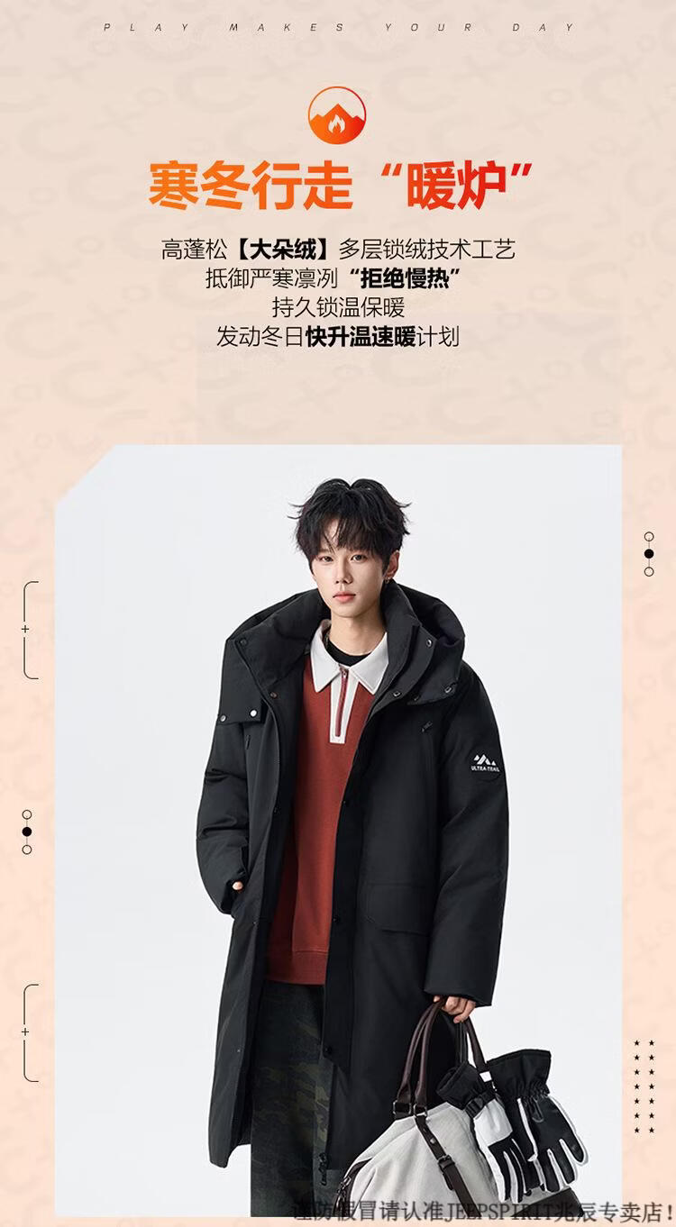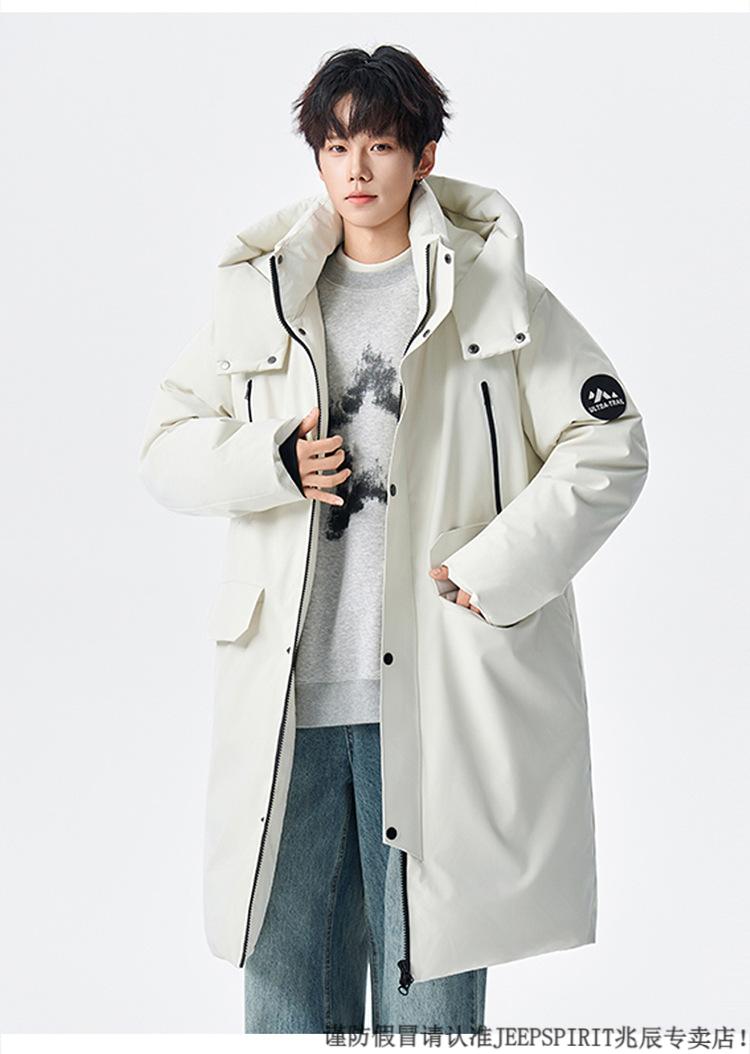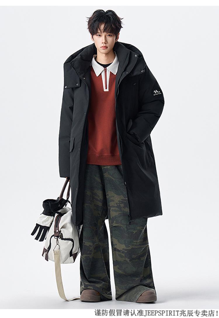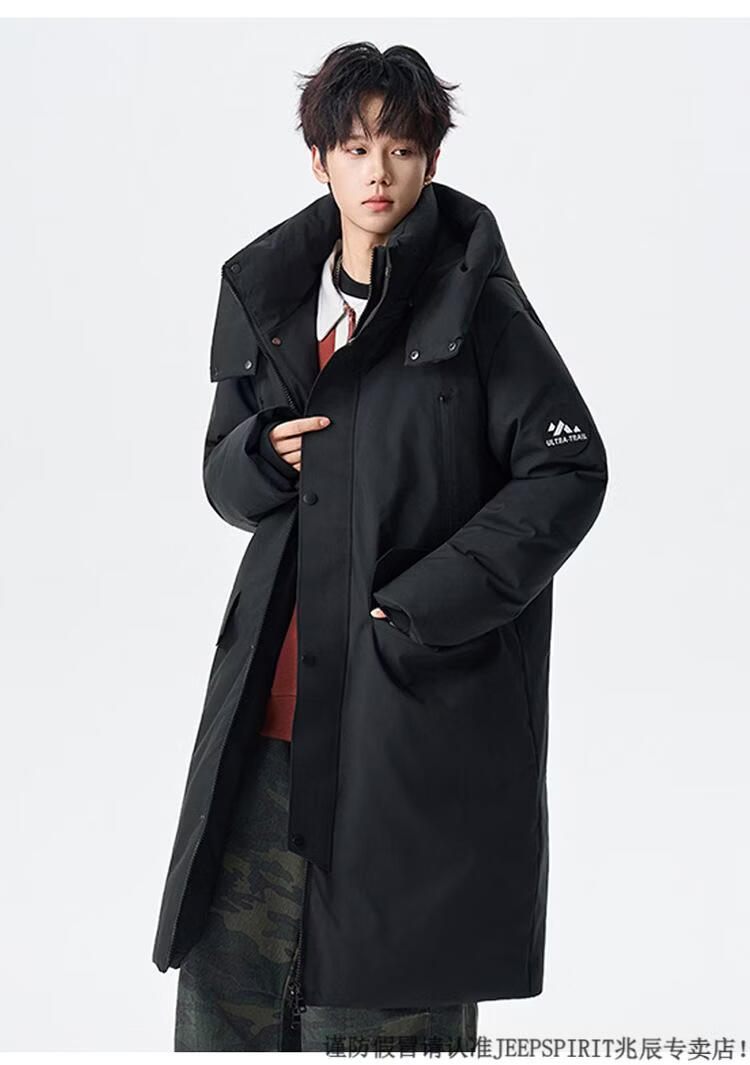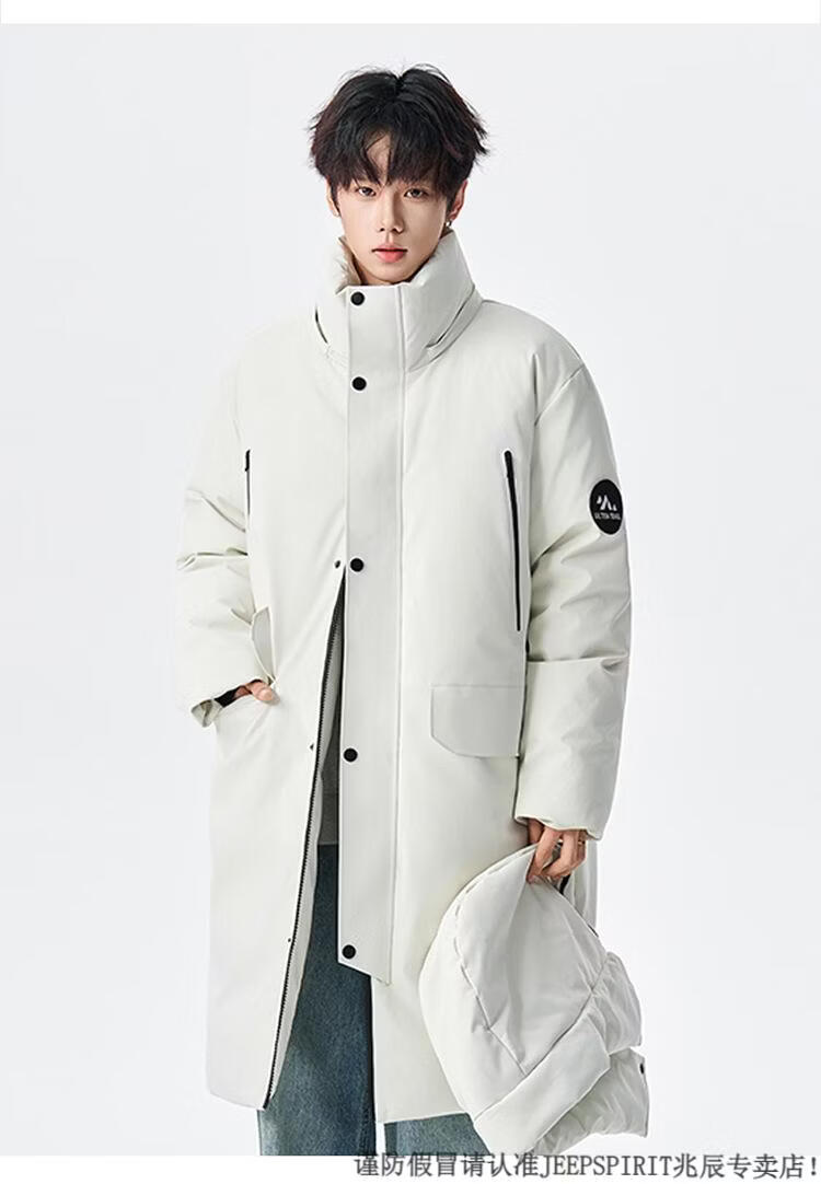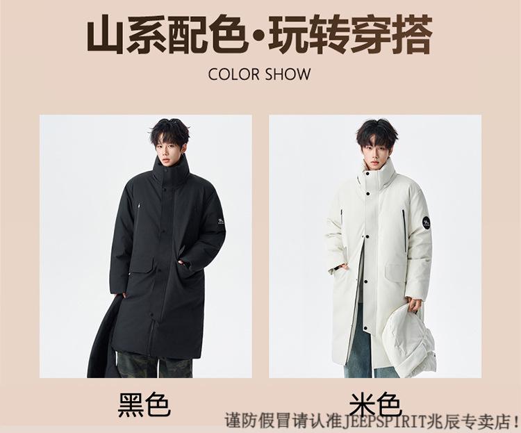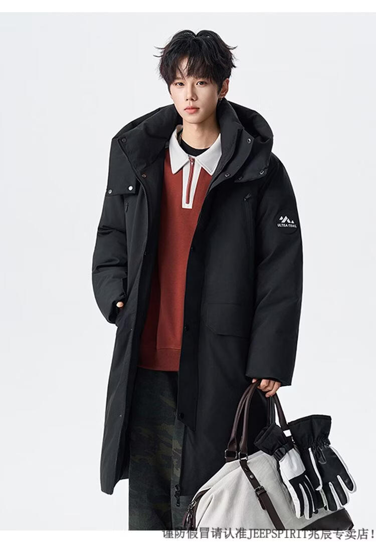 JEEP SPIRIT冬款新款加厚长款情侣羽绒服时髦简约帽子可拆卸经典立领英爵伦男 黑色 S