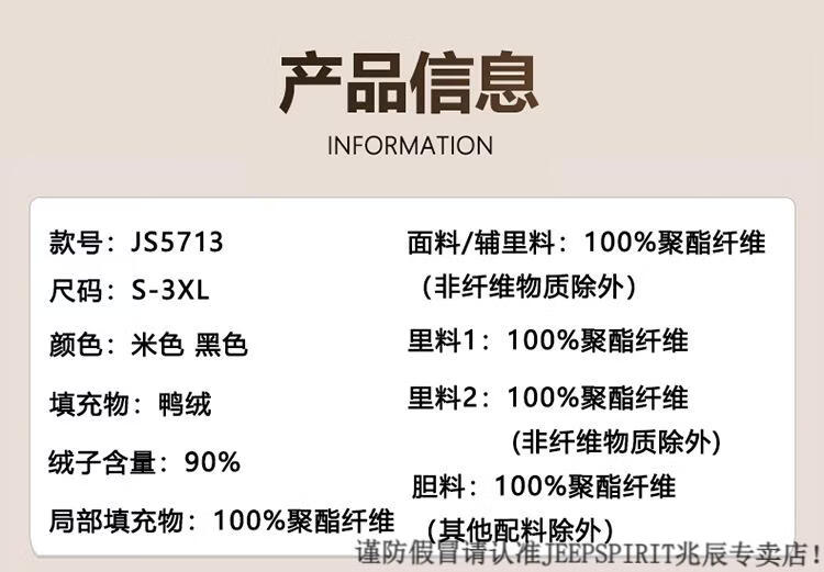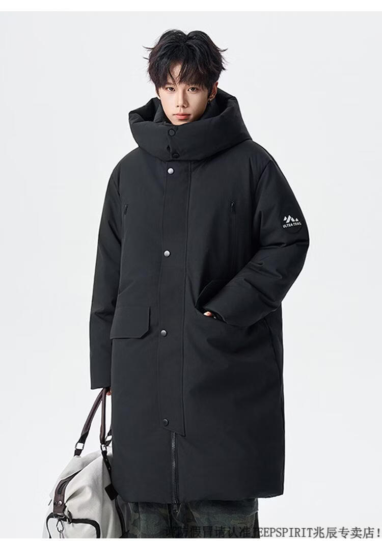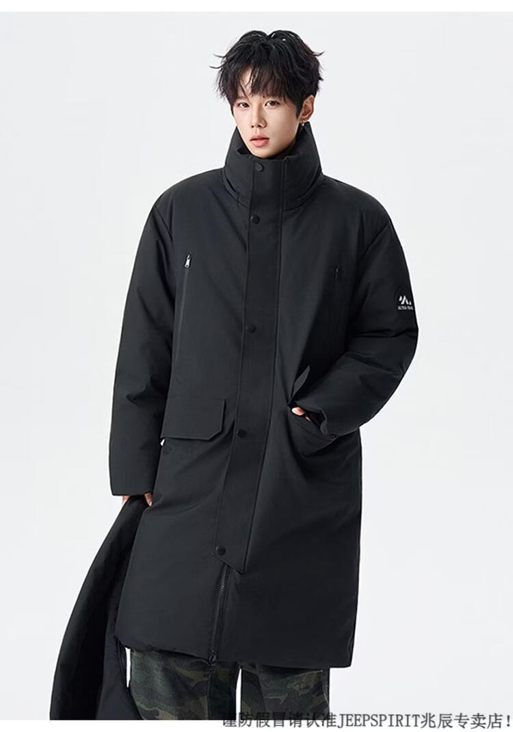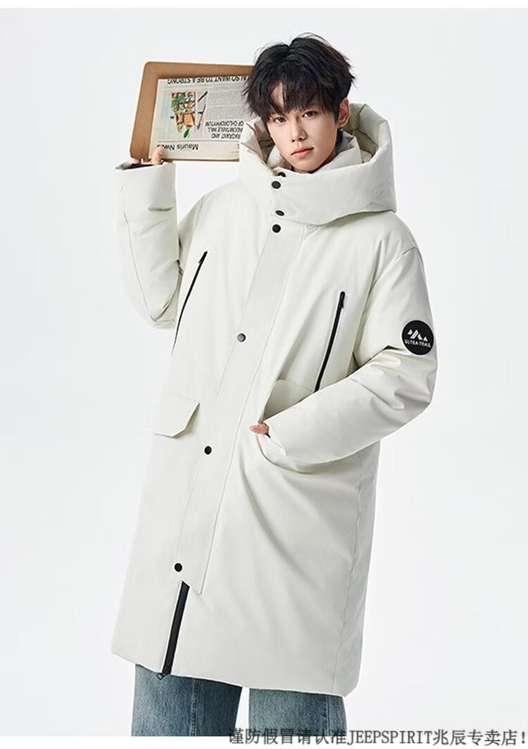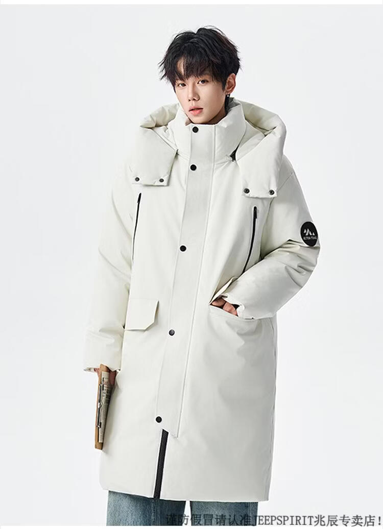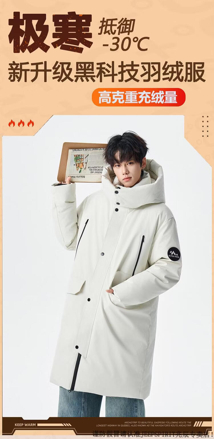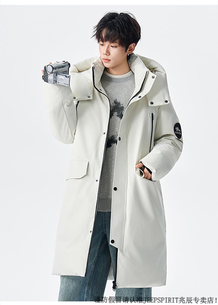 JEEP SPIRIT冬款新款加厚长款情侣羽绒服时髦简约帽子可拆卸经典立领英爵伦男 黑色 S