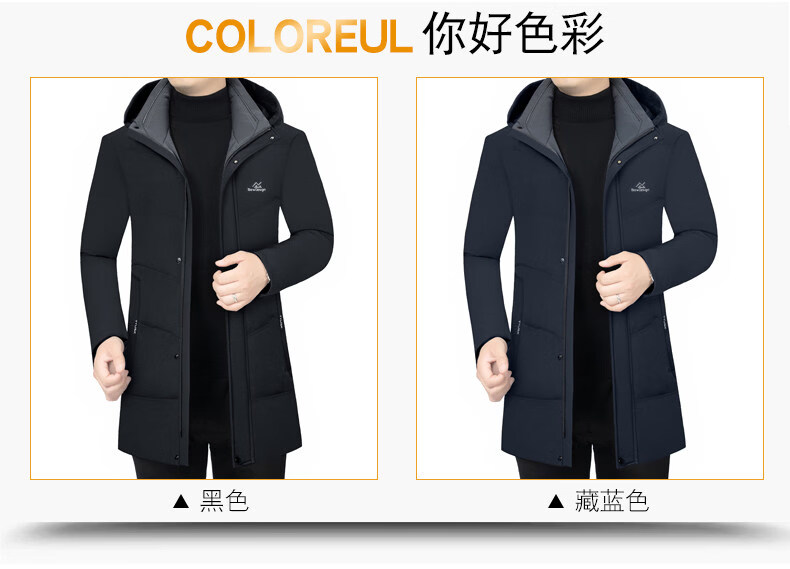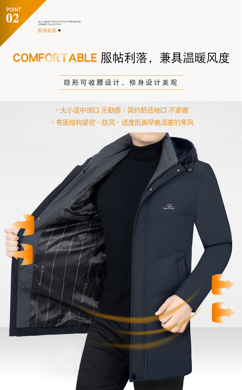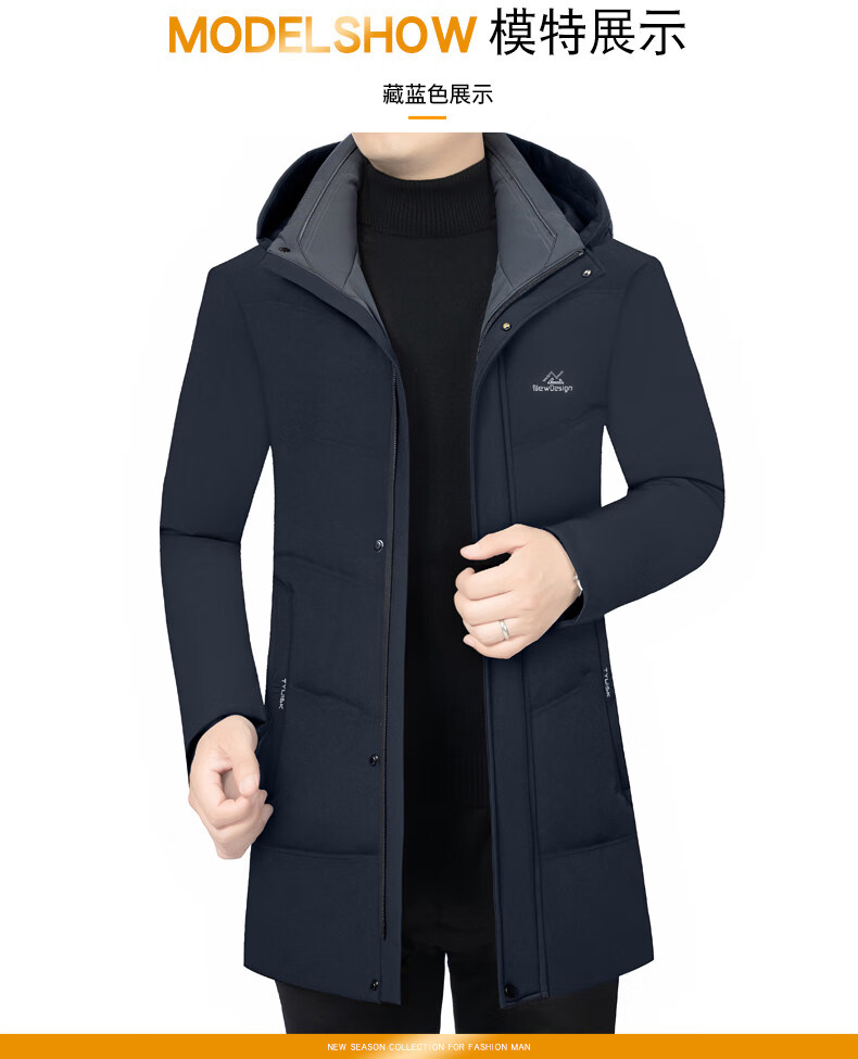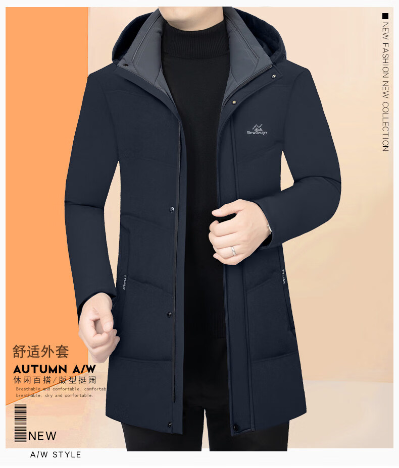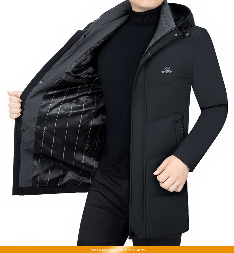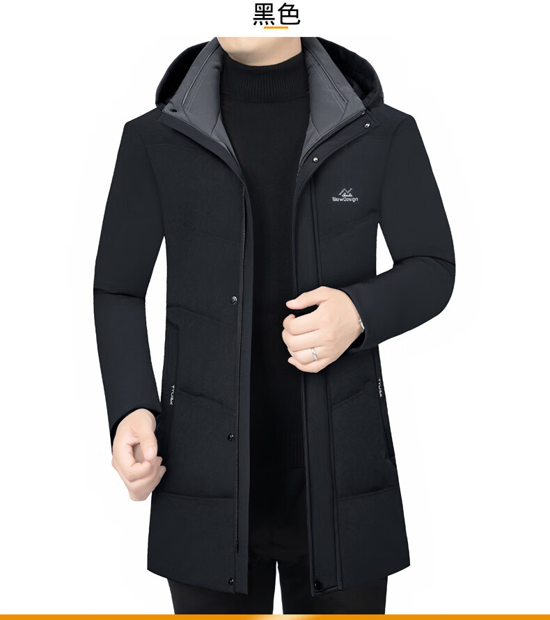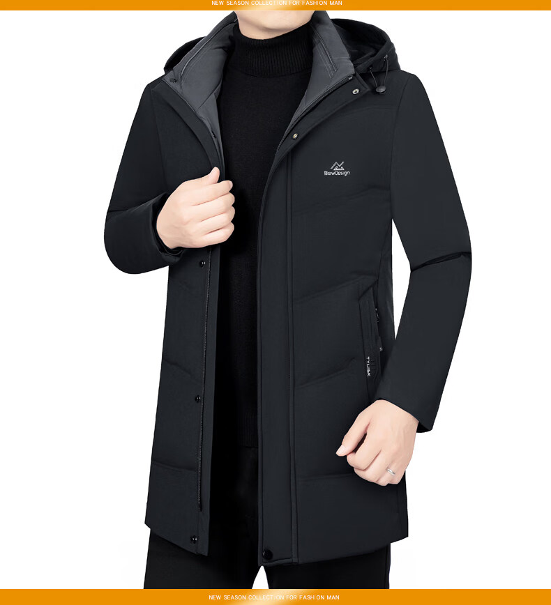 ROMON Мужской пуховик средней длины, новинка 2025 года, повседневная белая куртка на гусином пуху среднего возраста, зимняя 29292, черная, M 170M