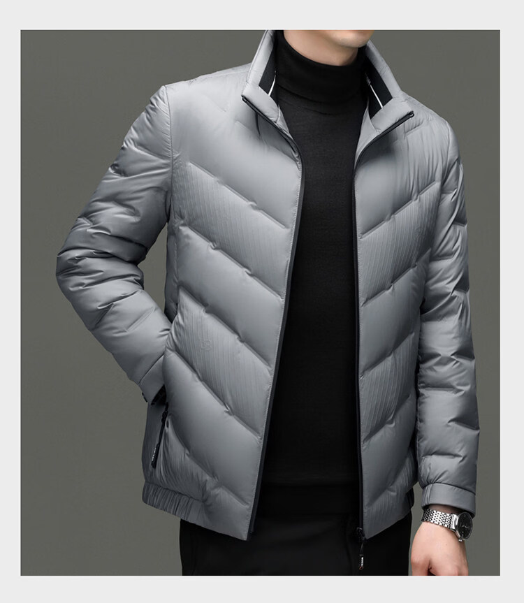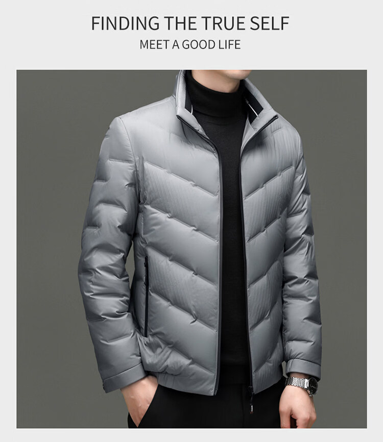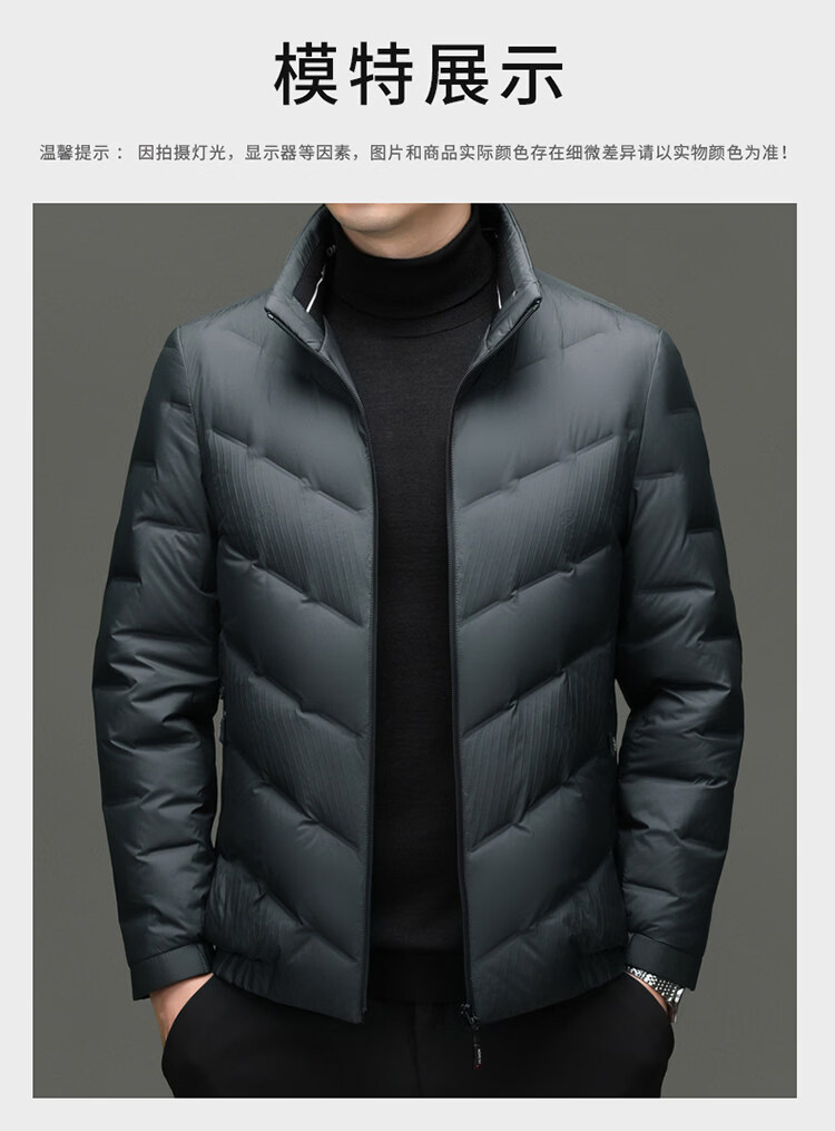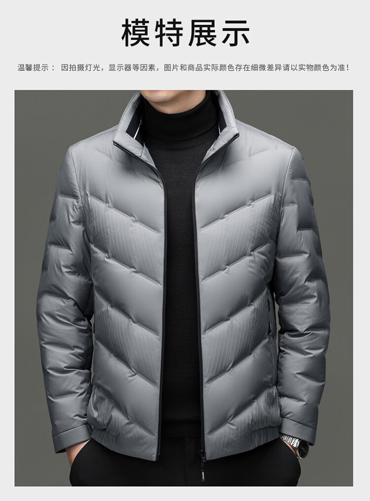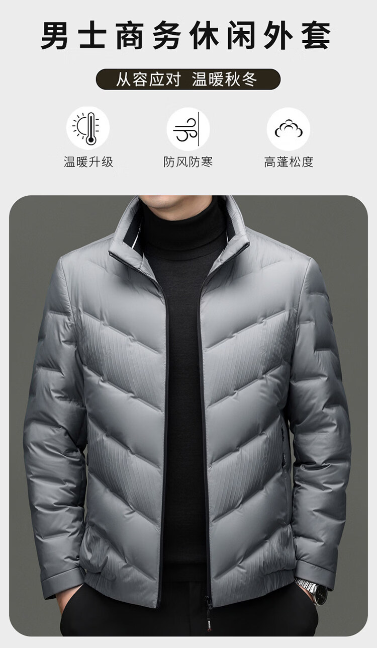 利郎商场同款男士轻薄羽绒服男立领商务休闲保暖鸭绒外套中男装90白鸭 浅灰色 XL 180 建议体重135-150斤