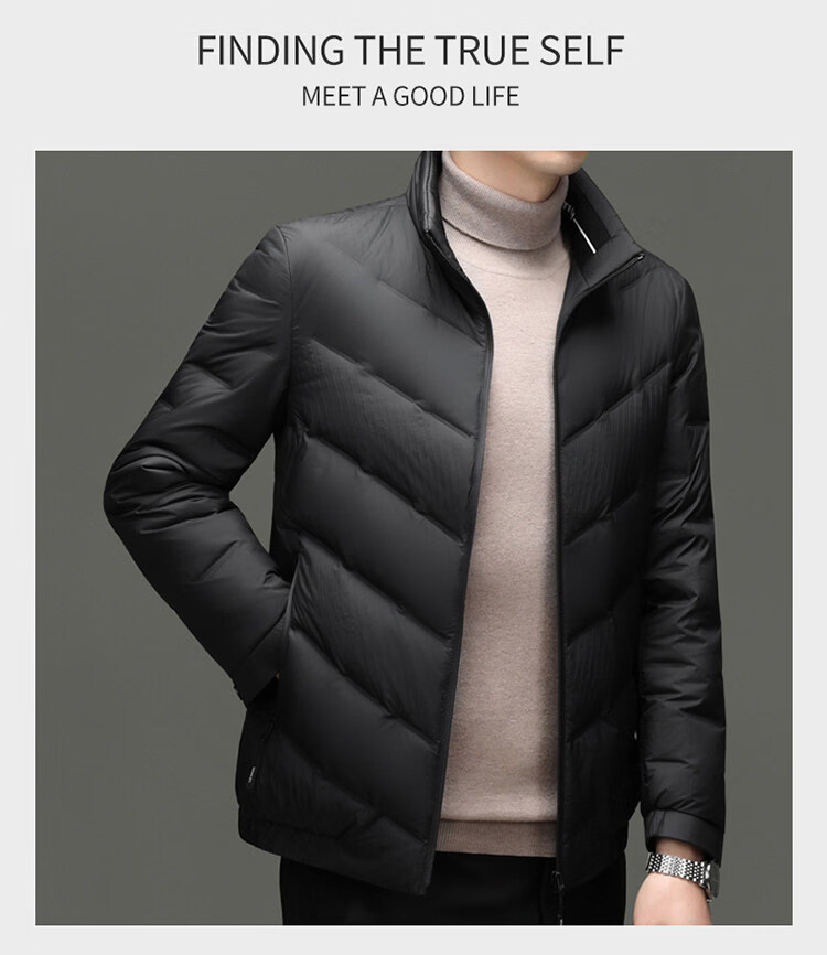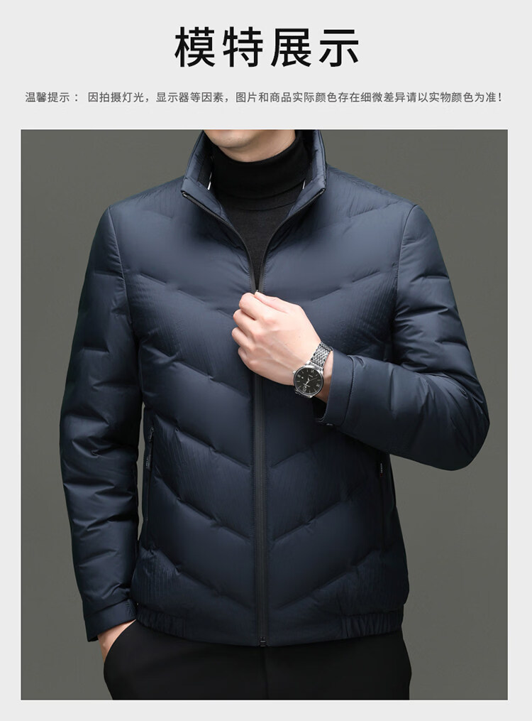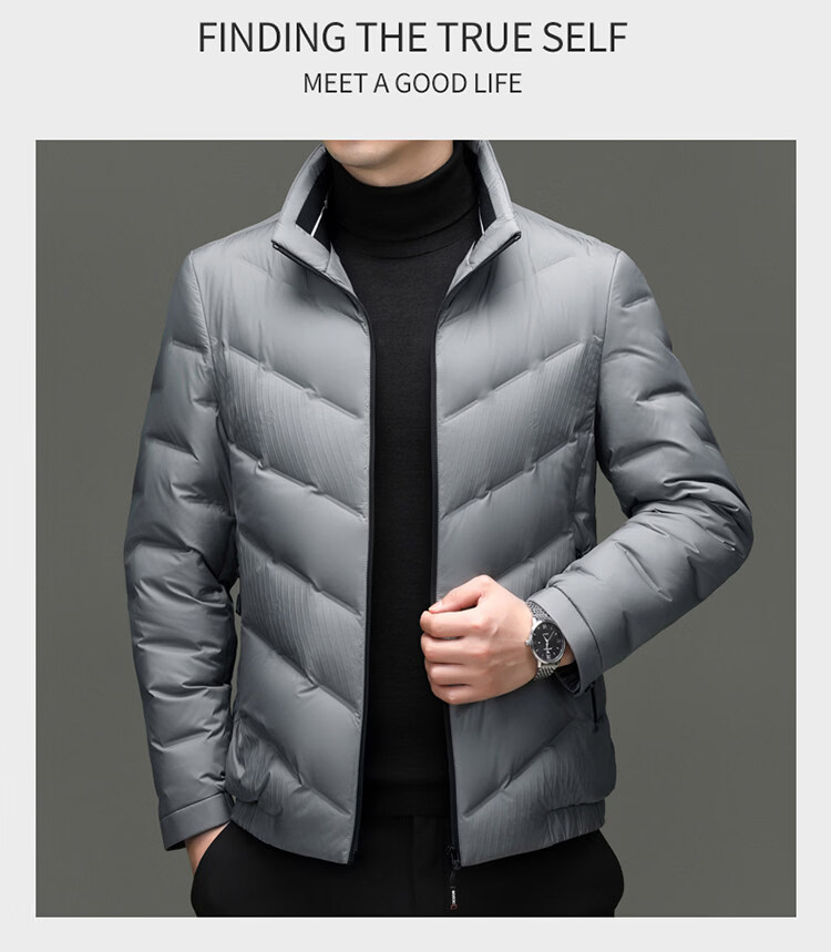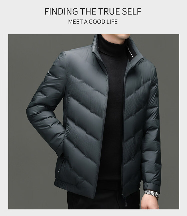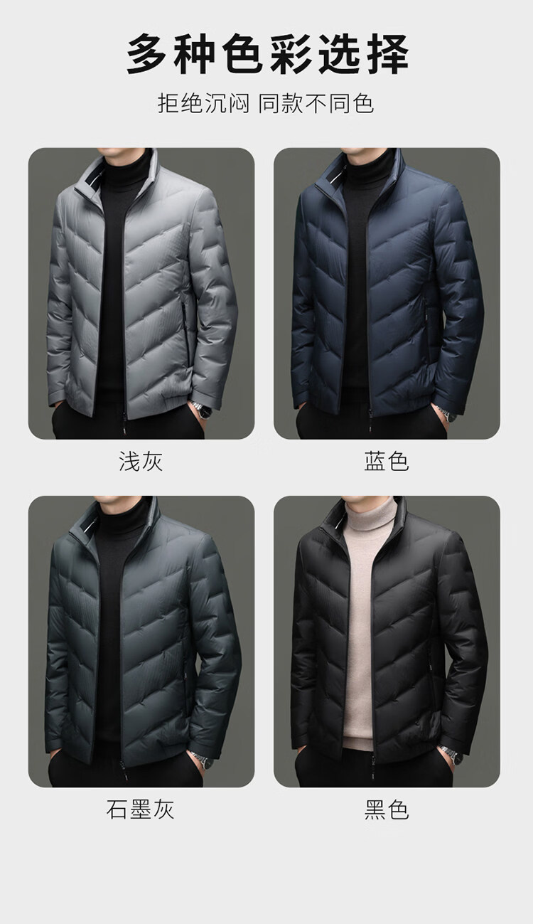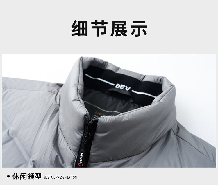 利郎商场同款男士轻薄羽绒服男立领商务休闲保暖鸭绒外套中男装90白鸭 浅灰色 XL 180 建议体重135-150斤