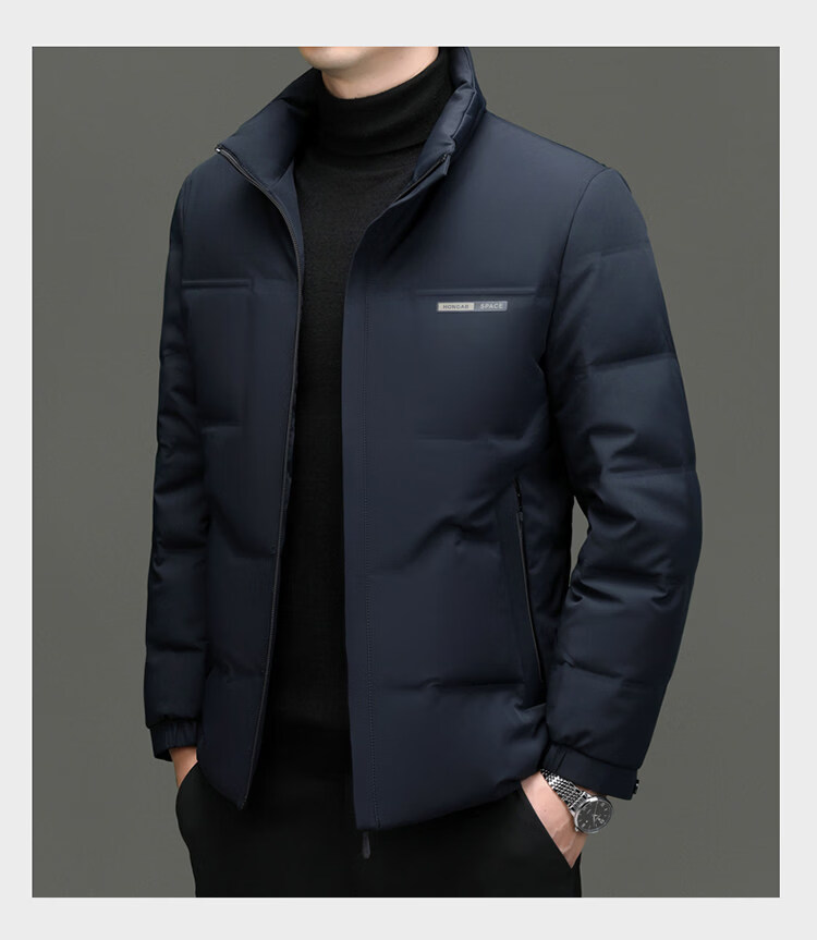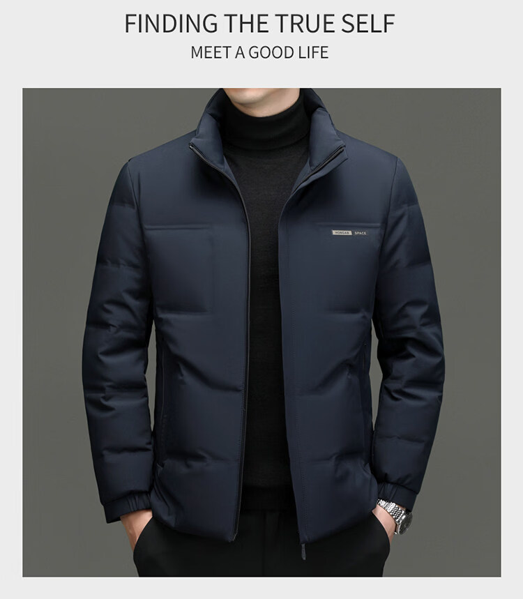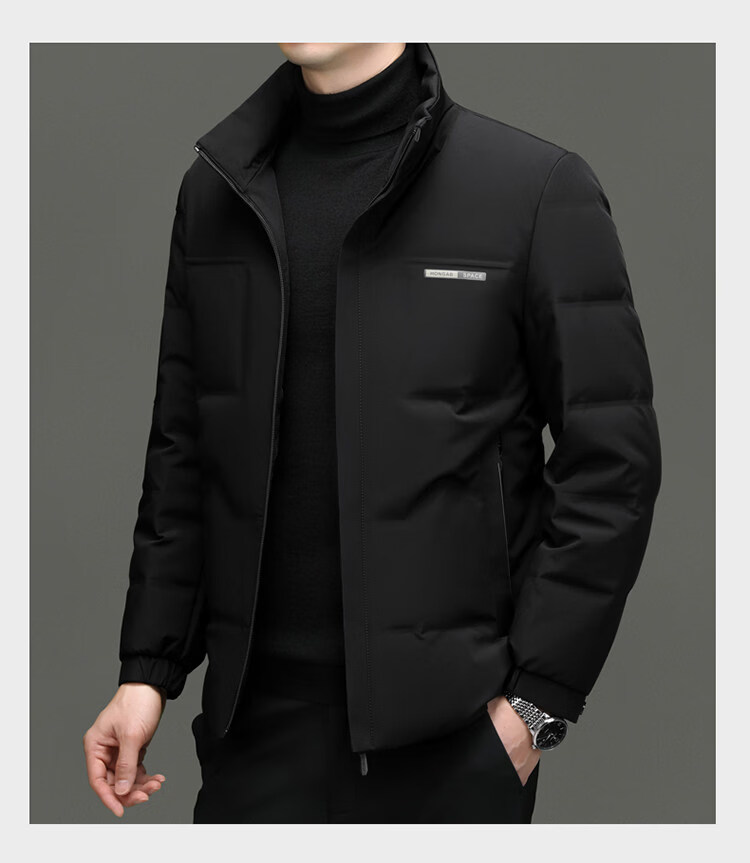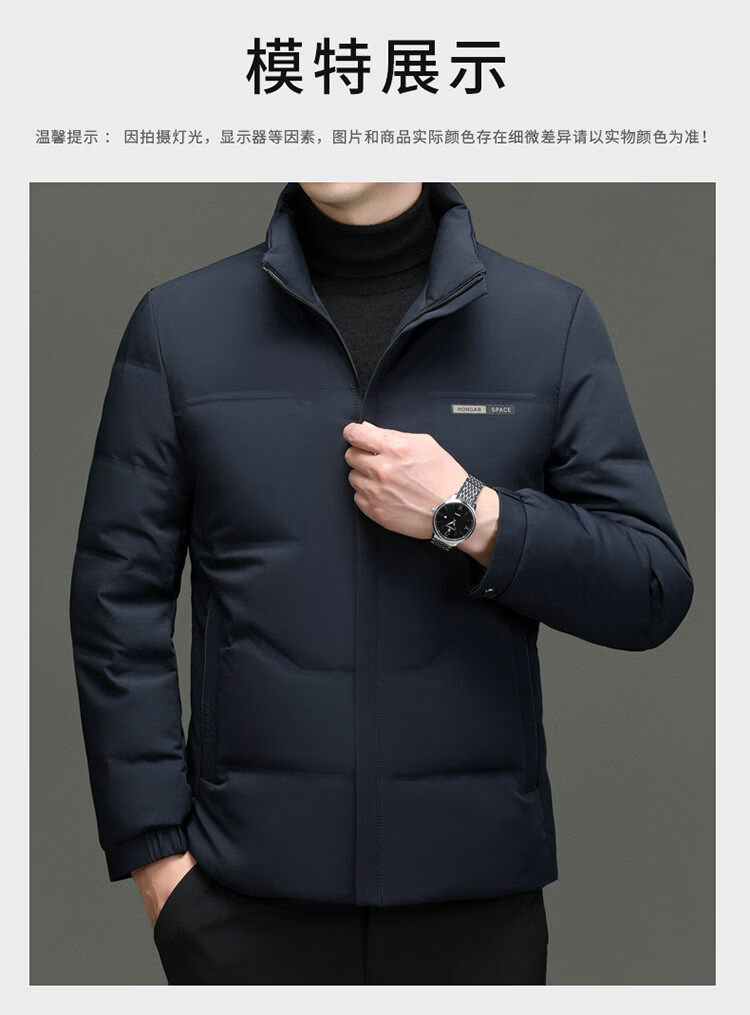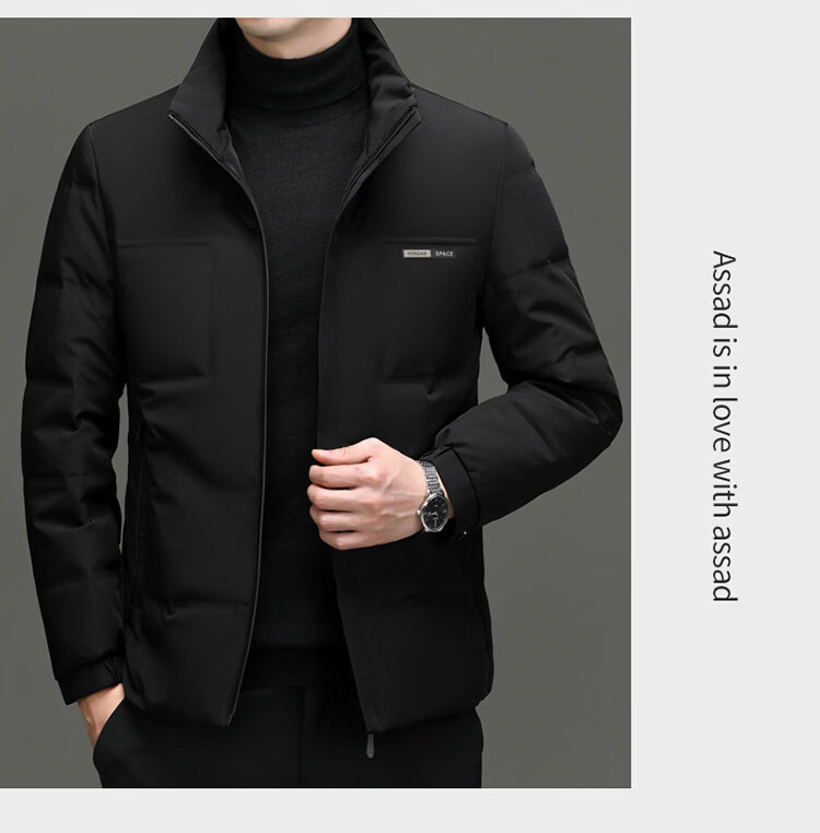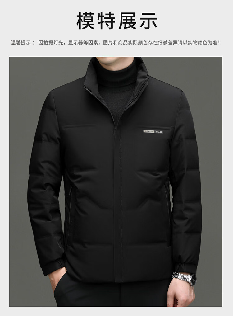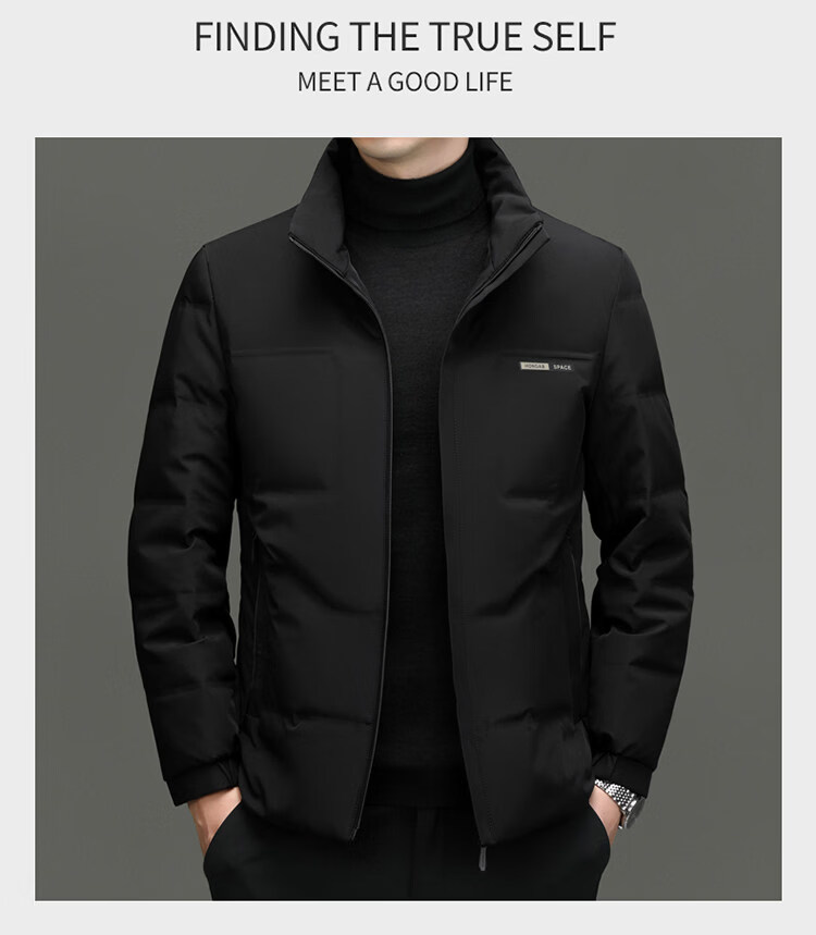 LiLang Shopping Mall Мужская короткая пуховая куртка с воротником-стойкой Зимняя новая деловая повседневная утолщенная теплая белая куртка на утином пуху черная M 170