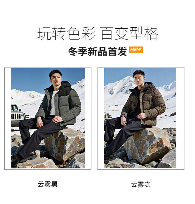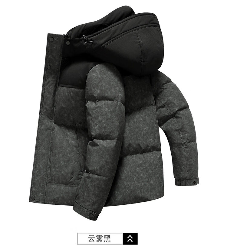Мужской пуховик в том же стиле в торговом центре Lilanz, новый национальный стандарт 90, утолщенный белый утиный пух, теплый и холодостойкий хлебный пуховик, влагонепроницаемый и съемный, облачно-черный M (100-120 Jin Jin равен 0,5 кг).