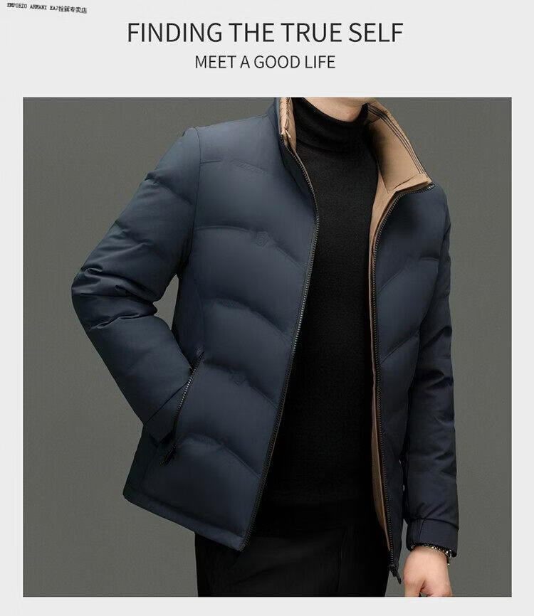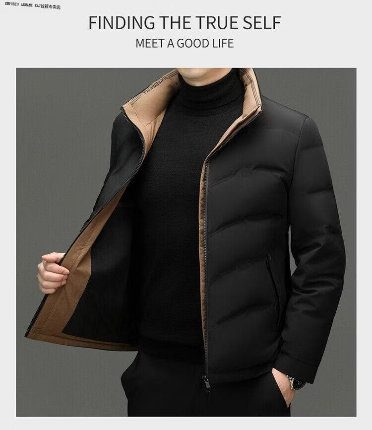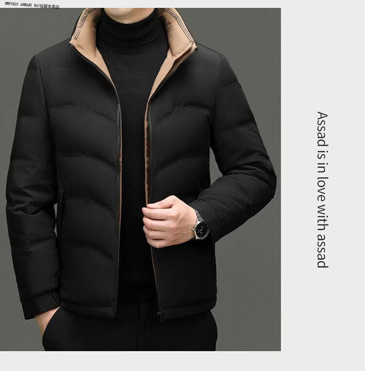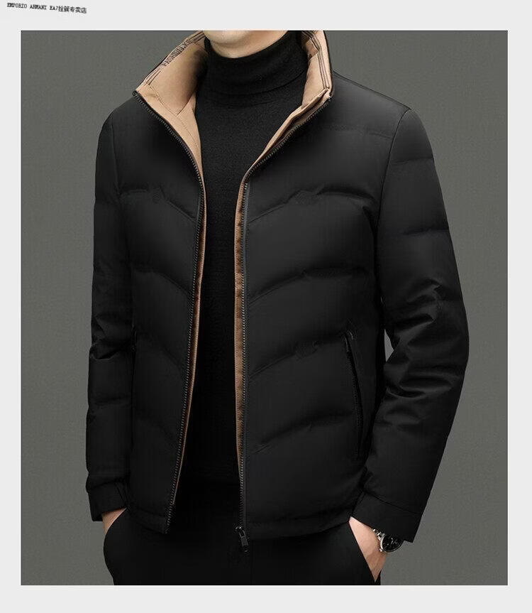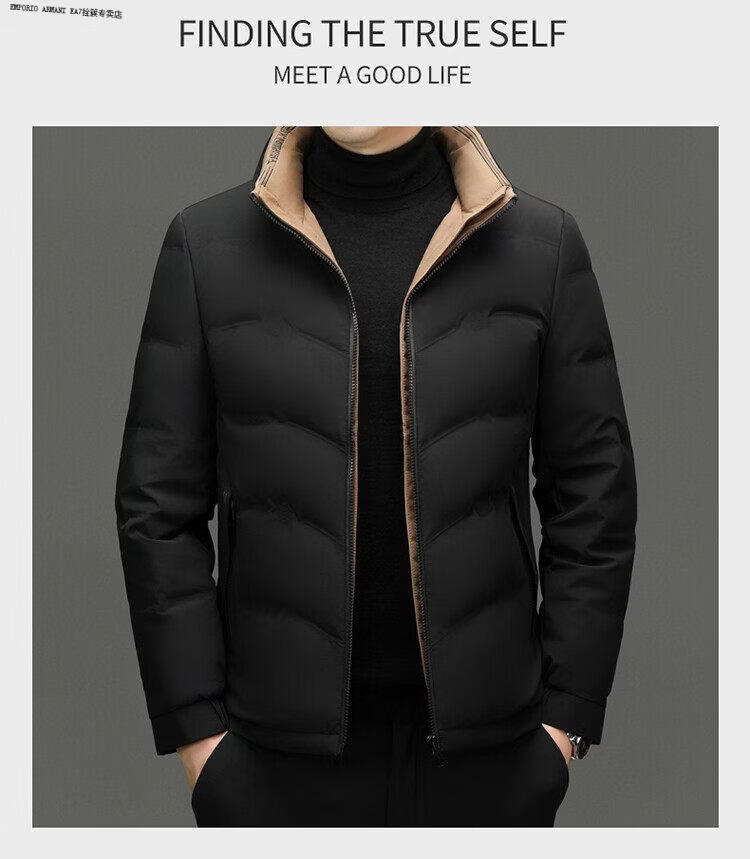 Emporio Armani EA7阿玛尼2026新款男装立领羽绒服男款冬季潮流时尚加厚保暖白鸭绒男 黑色 XL 180