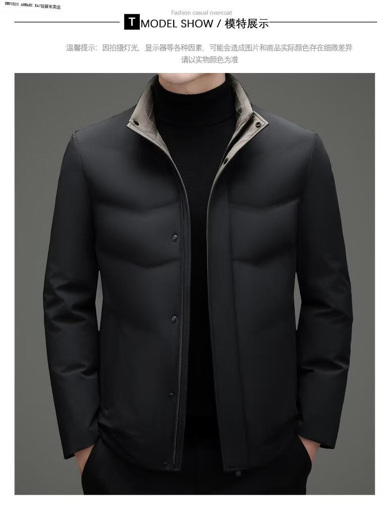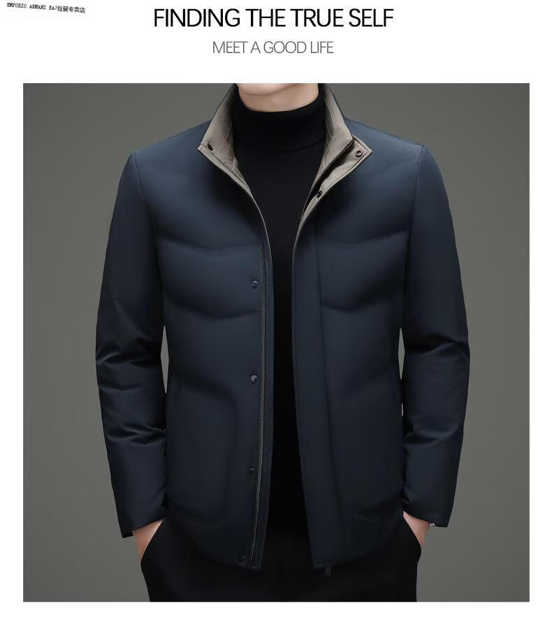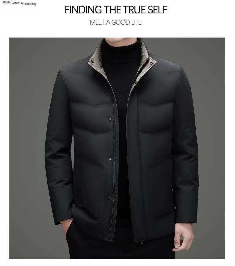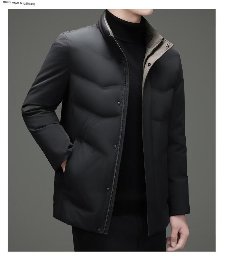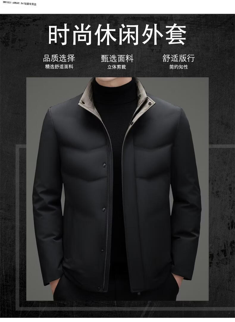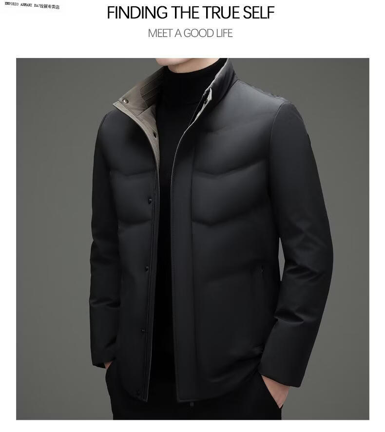 Emporio Armani EA7 Armani 2026 Зимний новый пуховик мужской короткий универсальный утепленный холодный куртка для папы среднего возраста повседневный утиный черный 2XL 185