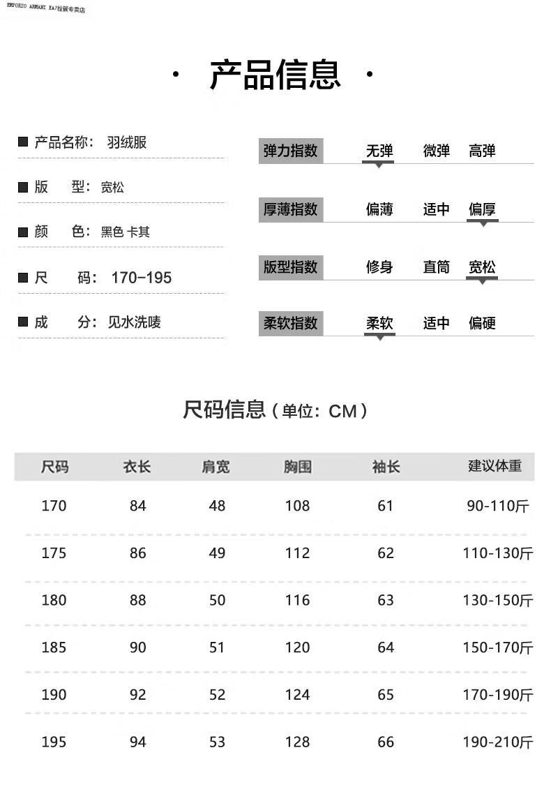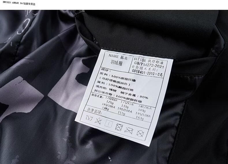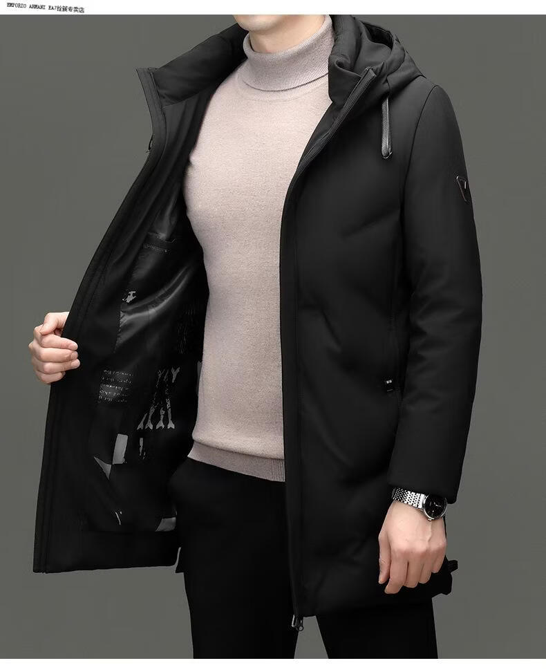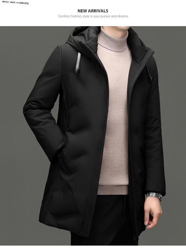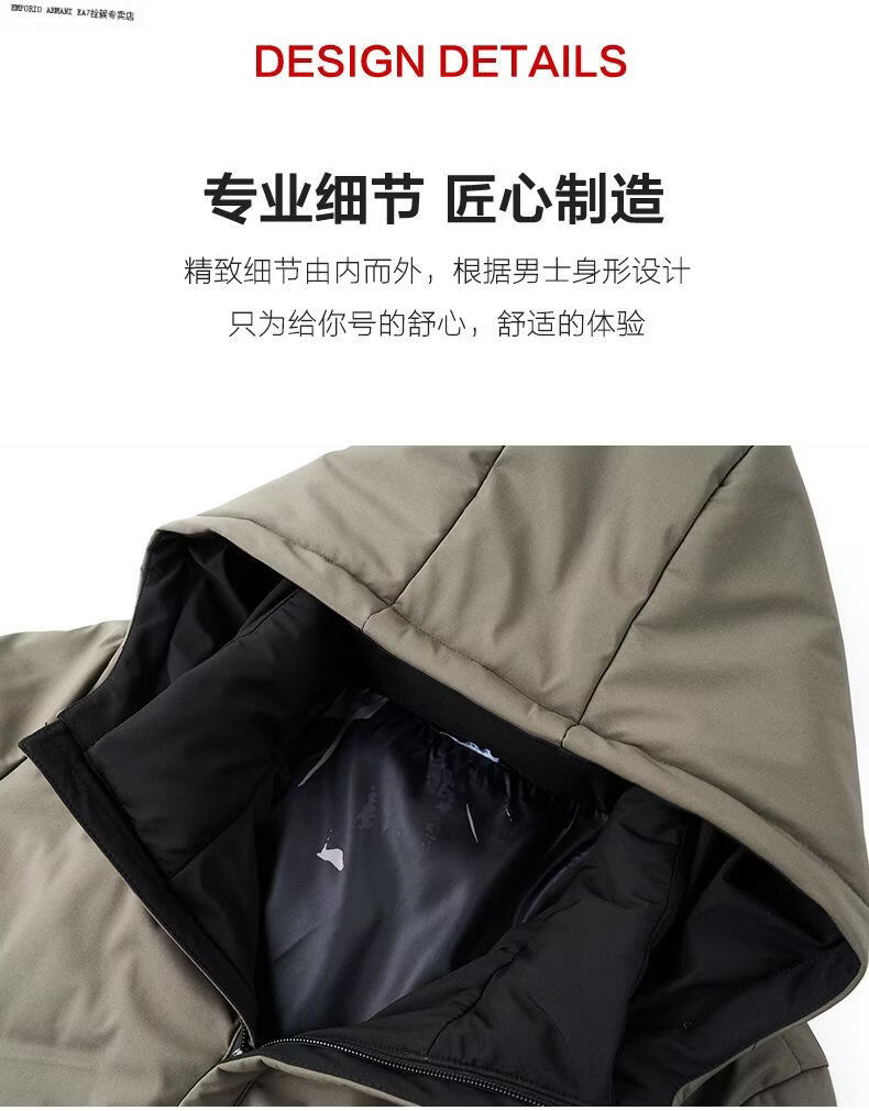 Emporio Armani EA7 Armani winter clothing middle-aged men's stand-up collar hooded down jacket men's business commuting casual solid color warm thickened outer black M 170