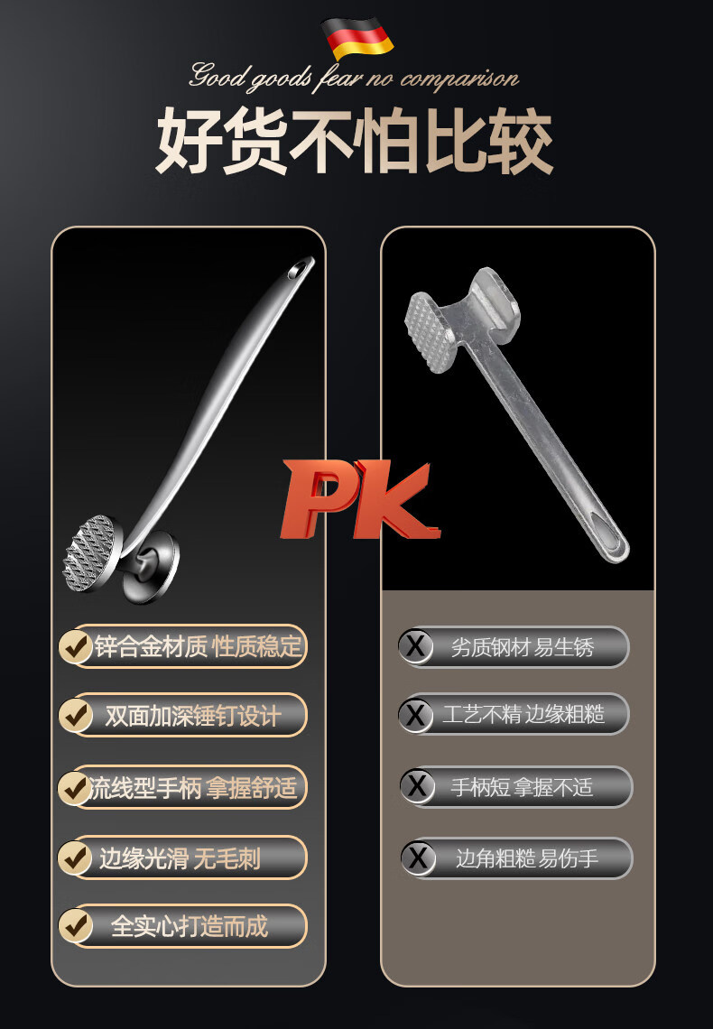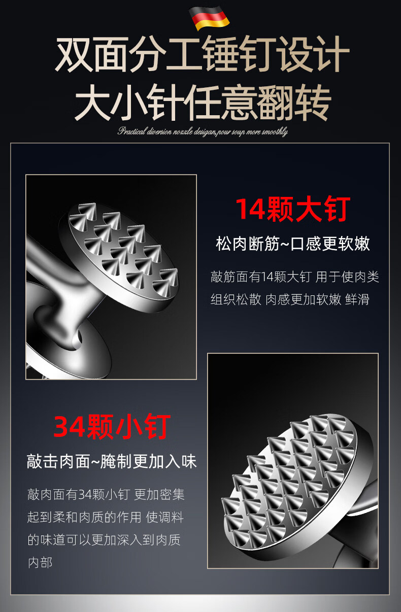 Chimei Hui German pine meat hammer steak tool meat pounder special hammer beater household meat hammer artifact beat tendon hammer zinc alloy pine meat hammer