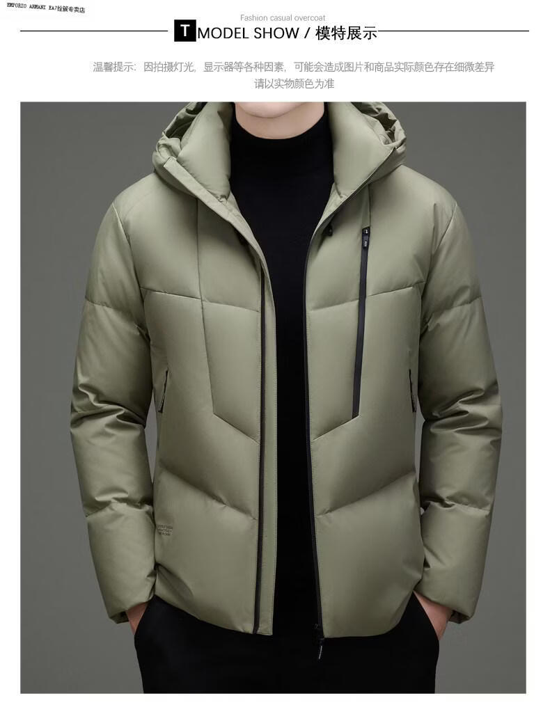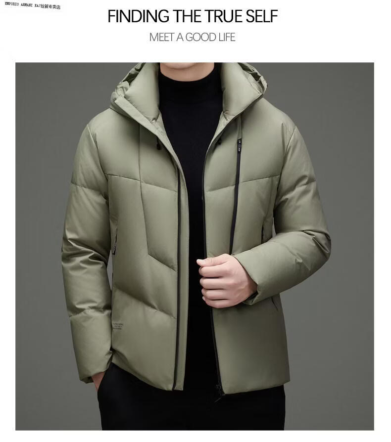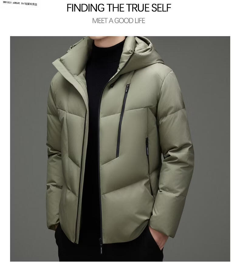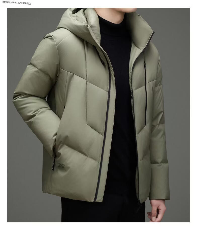 Emporio Armani EA7 Armani зимняя повседневная куртка на утином пуху с капюшоном, мужская утолщенная теплая пуховая куртка, модная мужская короткая свободная светло-зеленая XL 180 подходит для 130-150 Джин Джин равна 0,5 кг