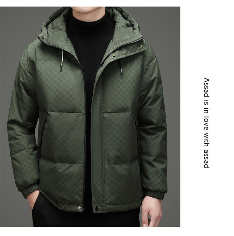 EMPORIO ARMANI Armani 2025, новый пуховик, мужская зимняя куртка с капюшоном, утолщенный белый утиный пух, красивый корейский вариант, модная защита бренда, цвет хаки XL