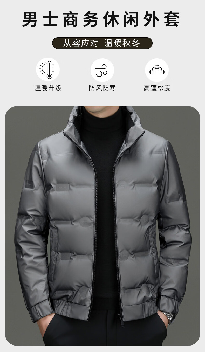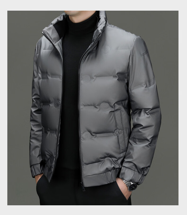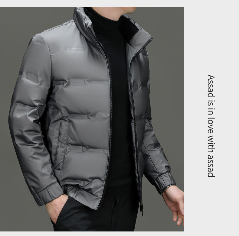 EMPORIO ARMANI Armani Зимняя повседневная легкая пуховая куртка мужская теплая куртка с воротником-стойкой Модная корейская мужская белая утиная пуховая куртка серого цвета XL 180
