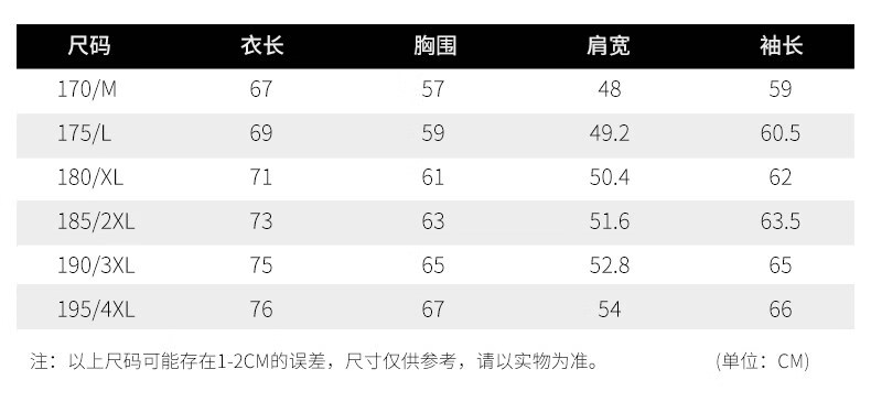 China (cm) 165 / 88-90 170 / 96-98 175 / 108-110 180 / 118-122 185 / 126-130