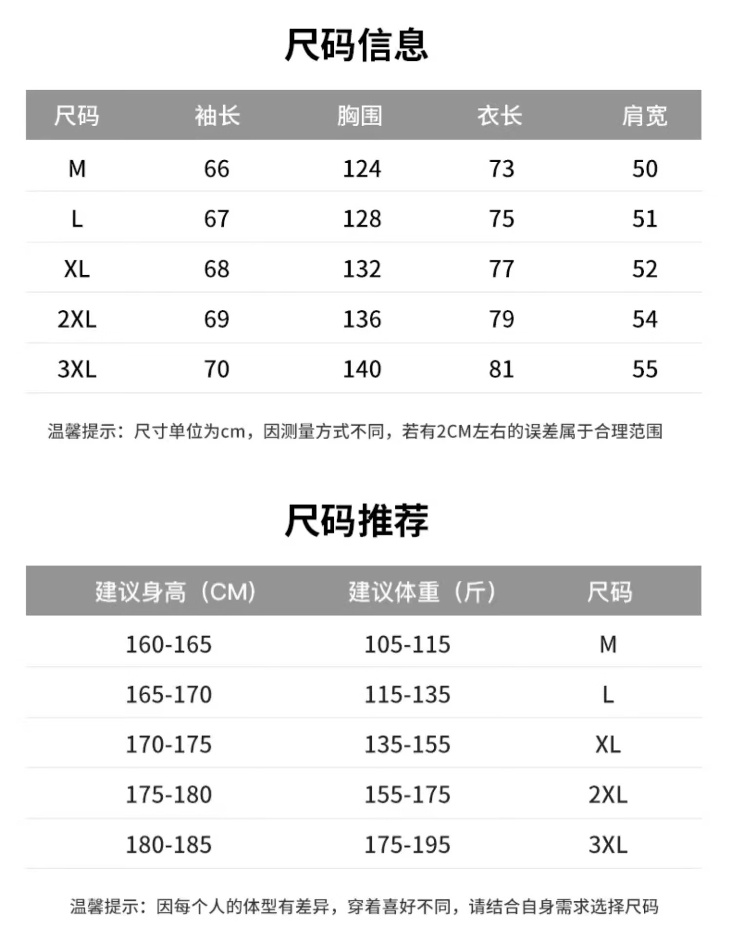 China (cm) 160-165/84-86 165-170 / 88-90 167-172 / 92-96 168-173 / 98-102 170-176 / 106-110