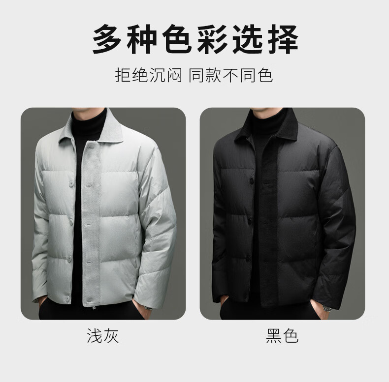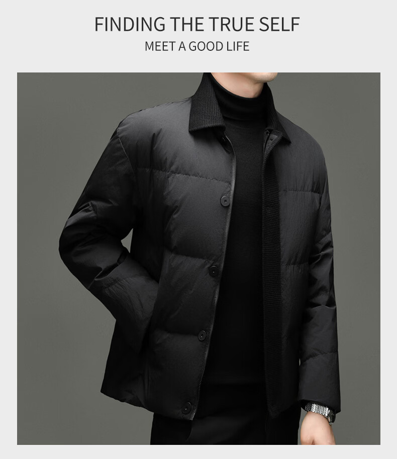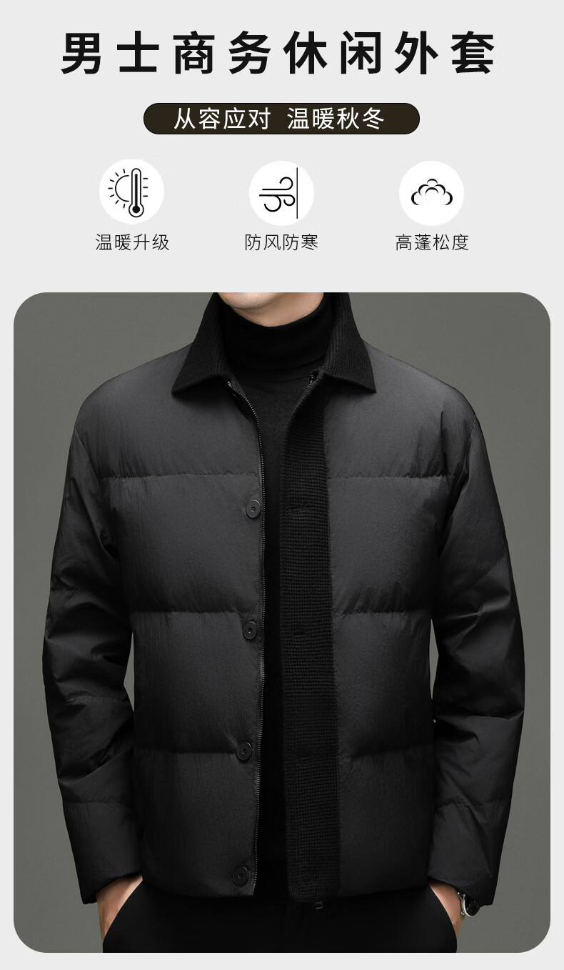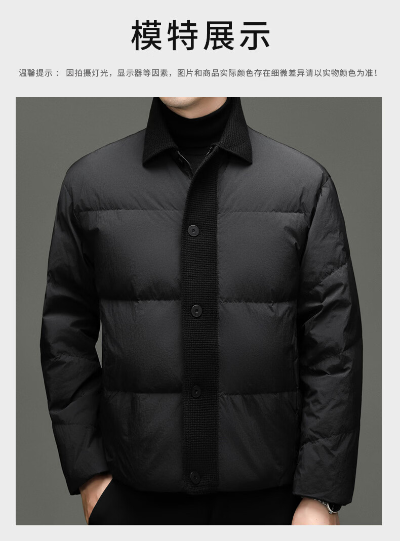EMPORIO ARMANI Armani Down Jacket Men's Light Luxury Lapel Dad Clothes Trendy Simple Short Autumn and Winter Style New National Standard 90 Down Jacket Black M 170