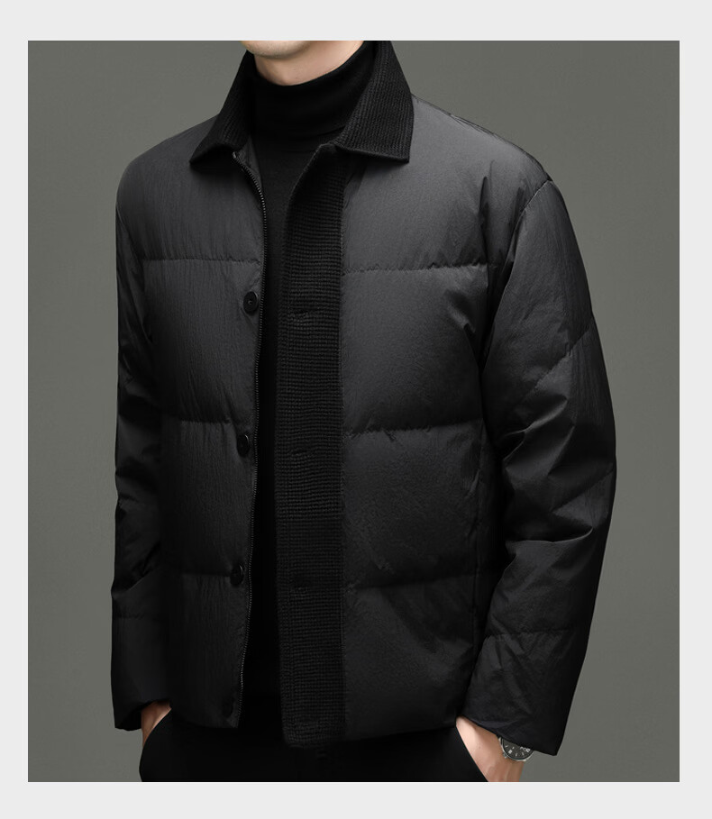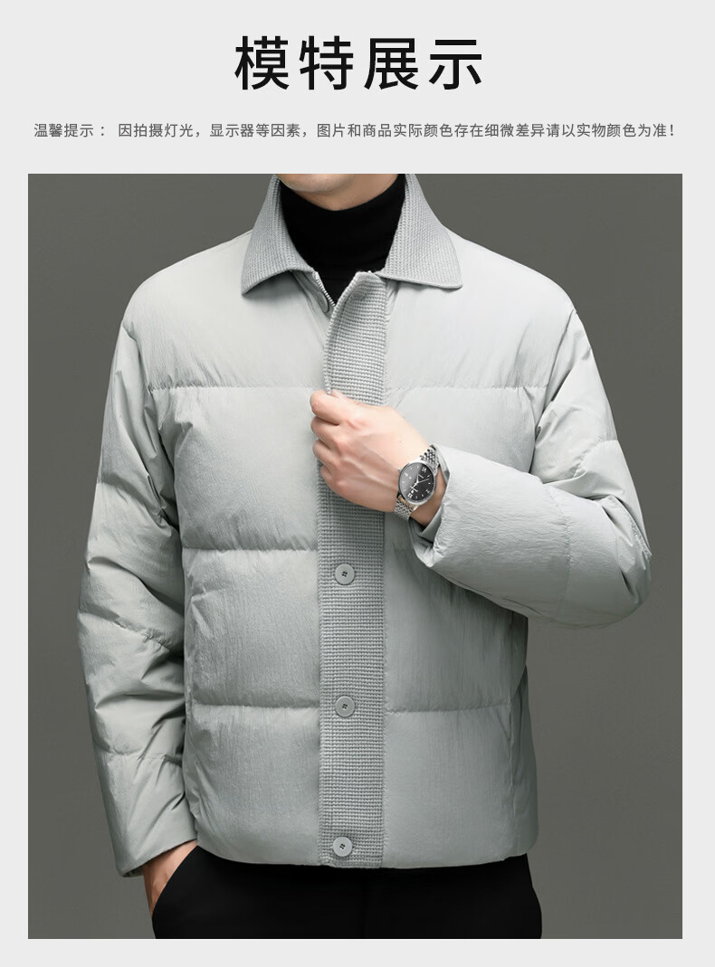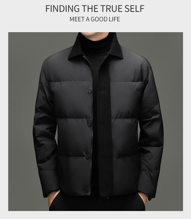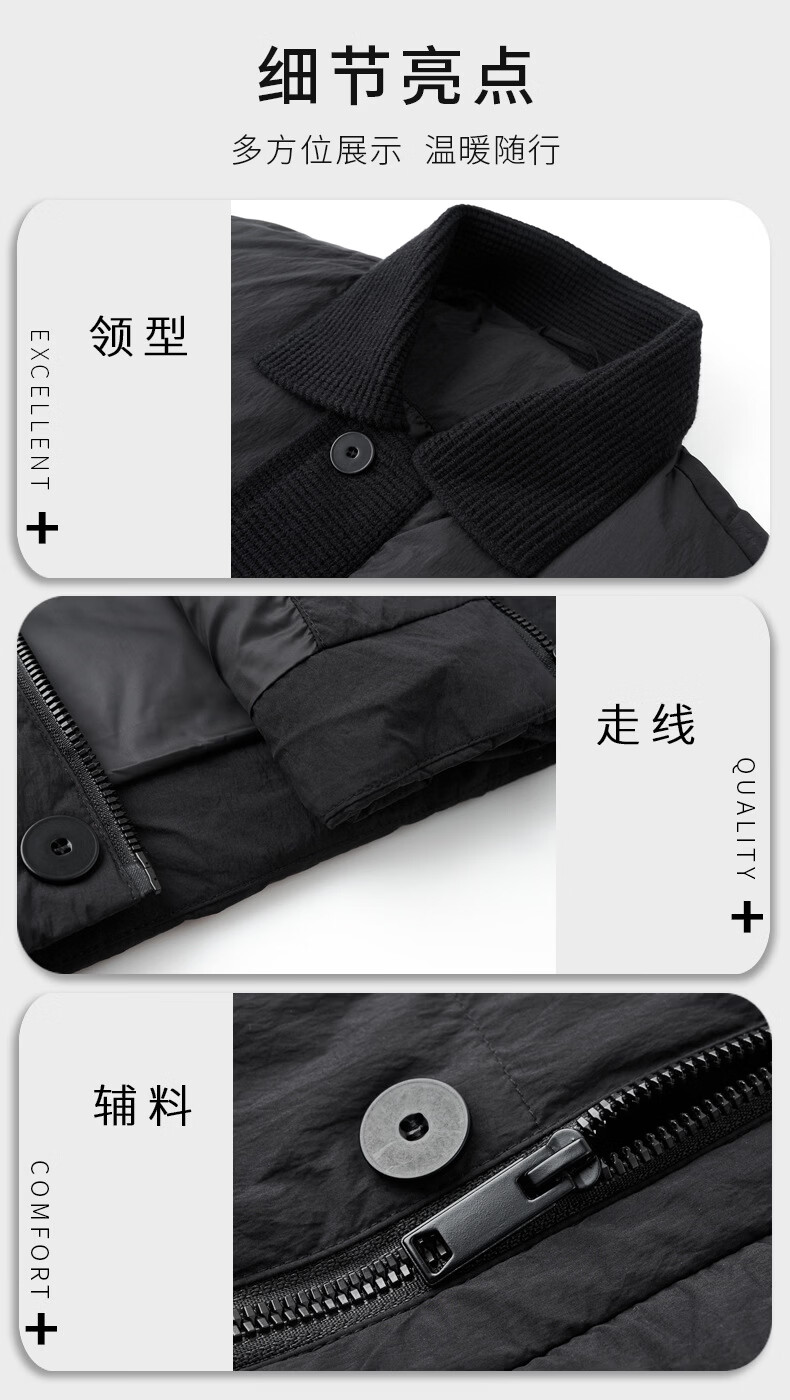 EMPORIO ARMANI Armani Down Jacket Men's Light Luxury Lapel Dad Clothes Trendy Simple Short Autumn and Winter Style New National Standard 90 Down Jacket Black M 170