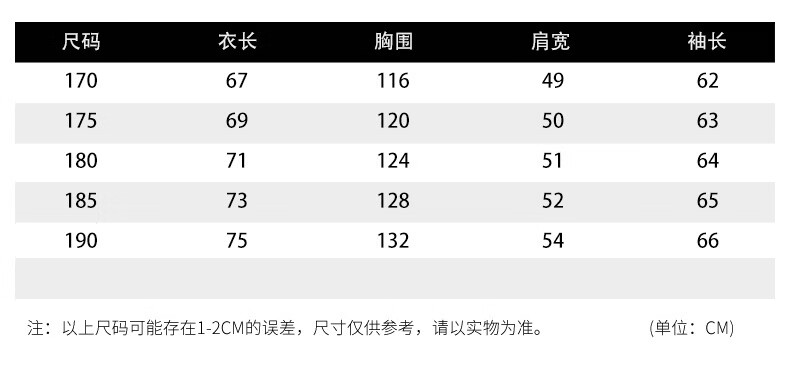 China (cm) 165 / 88-90 170 / 96-98 175 / 108-110 180 / 118-122 185 / 126-130