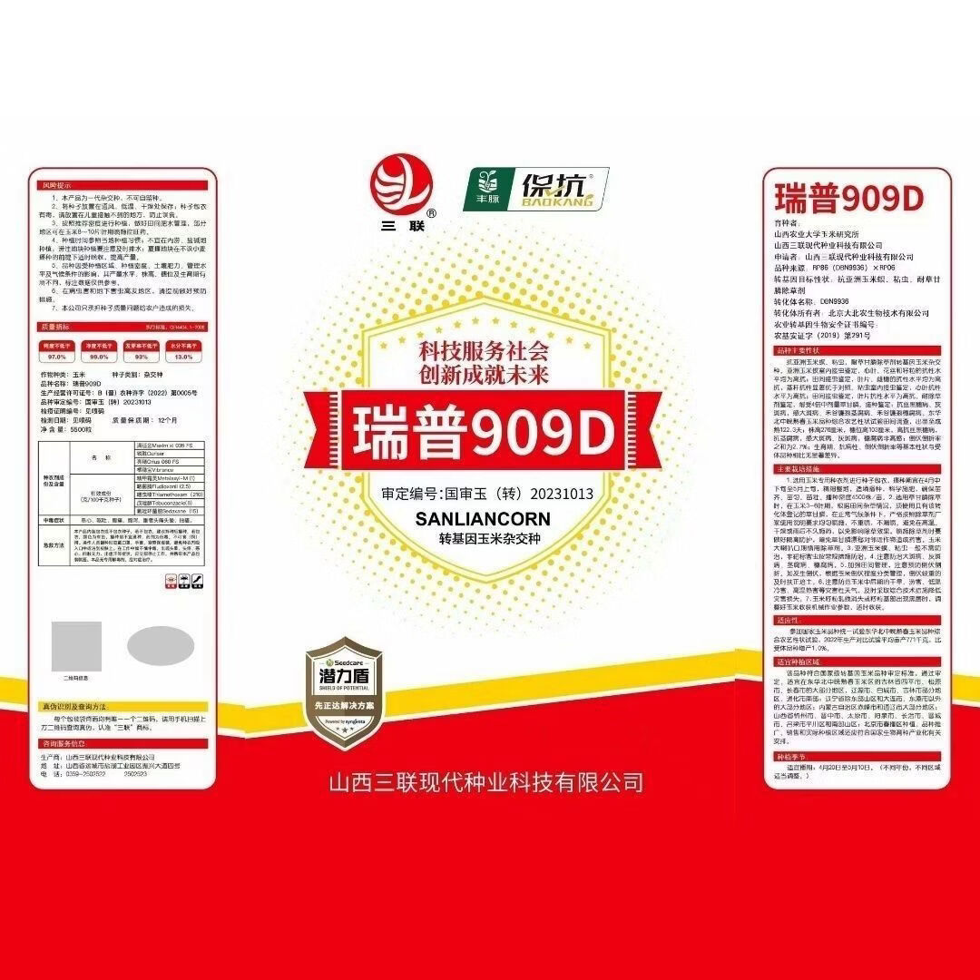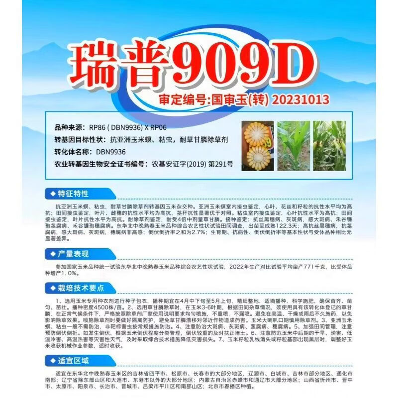 Одобренные на национальном уровне трансгенные семена кукурузы Rip 909D, устойчивые к насекомым и засухе семена кукурузы, короткие стебли, большие початки и высокая урожайность, трансгенный Rip 909D с двойной устойчивостью (4400 зерен в пакете)