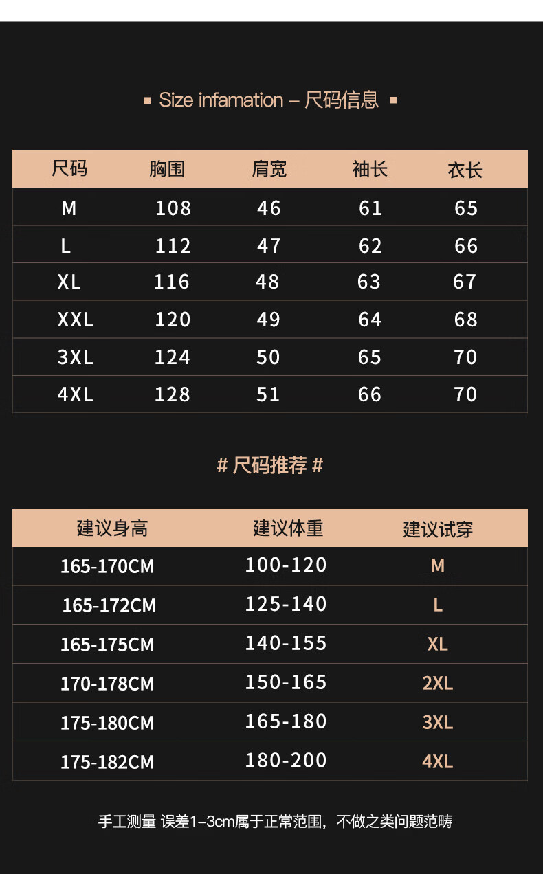 China (cm) 165 / 88-90 170 / 96-98 175 / 108-110 180 / 118-122 185 / 126-130