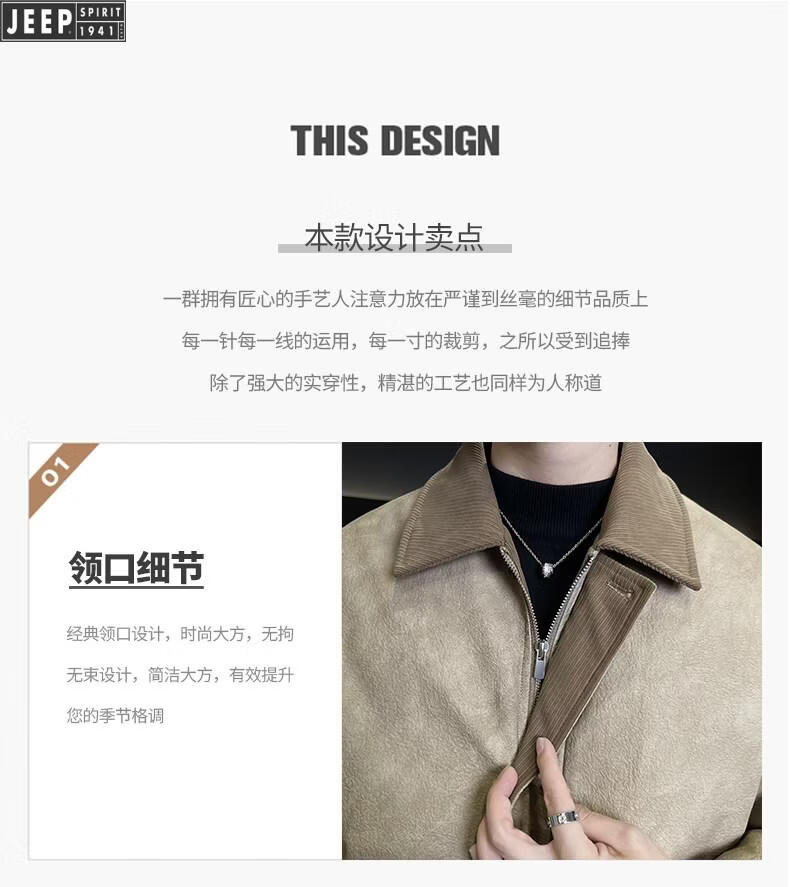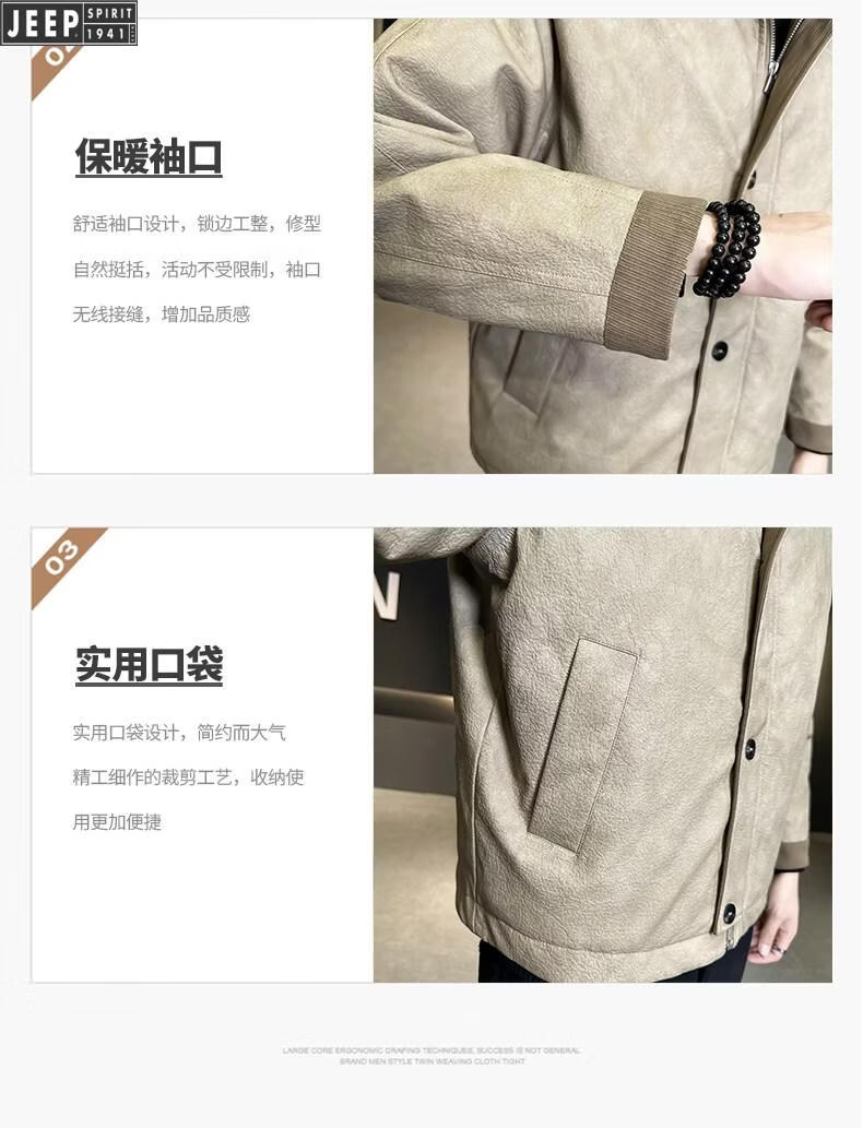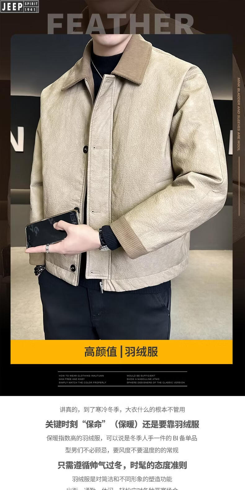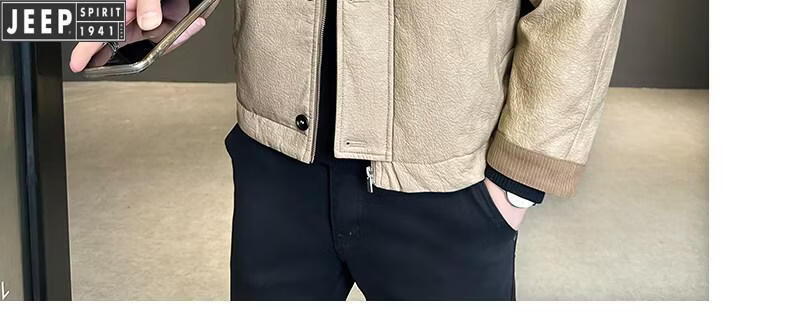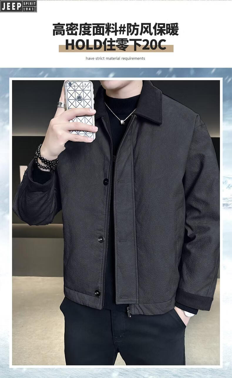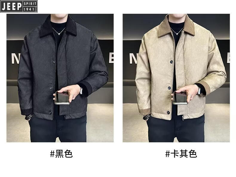 JEEP Jeep Кожаный пуховик Мужская зимняя куртка с лацканами 2026 Новая повседневная куртка на утином пуху Мужская зимняя одежда цвета хаки M