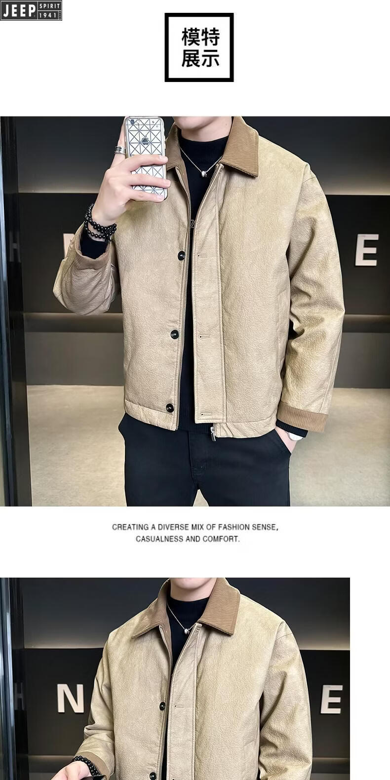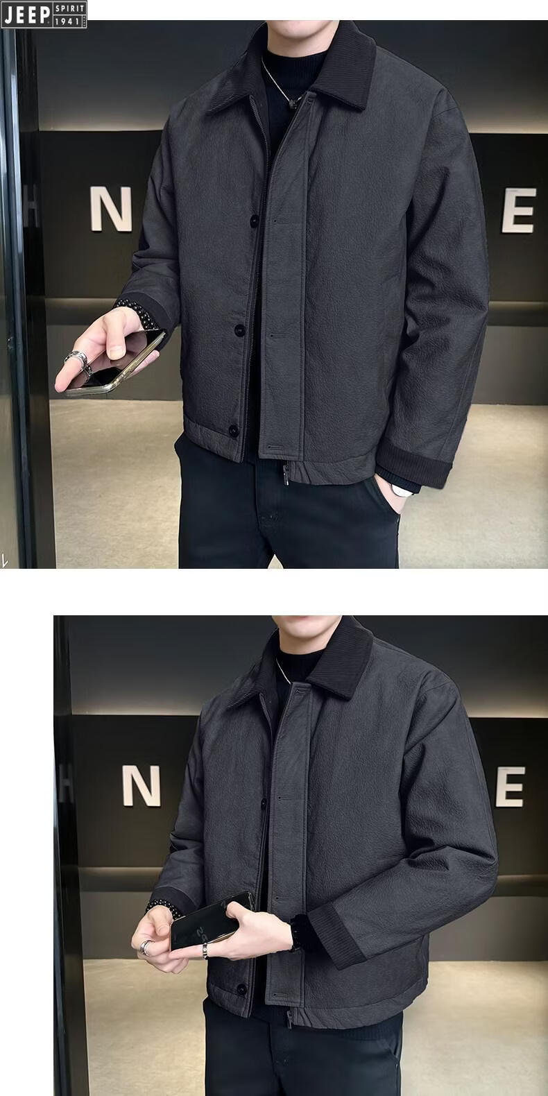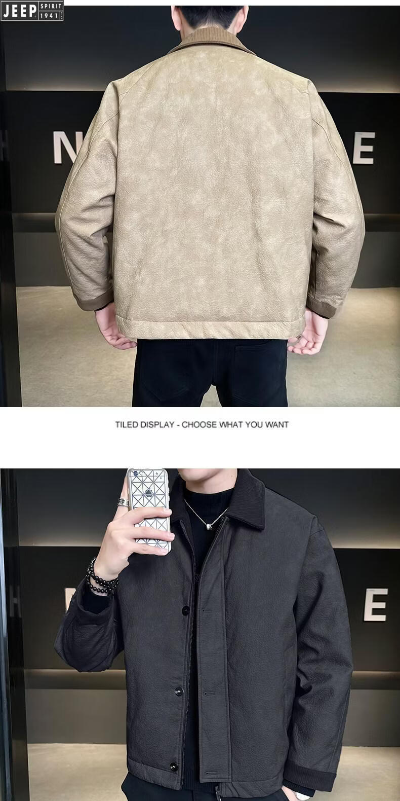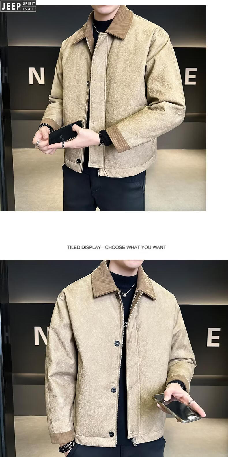 JEEP Jeep Кожаный пуховик Мужская зимняя куртка с лацканами 2026 Новая повседневная куртка на утином пуху Мужская зимняя одежда цвета хаки M