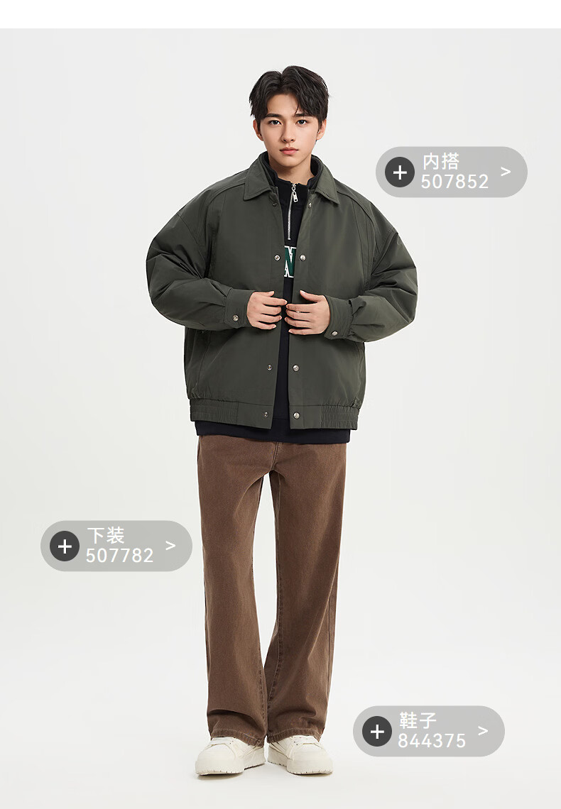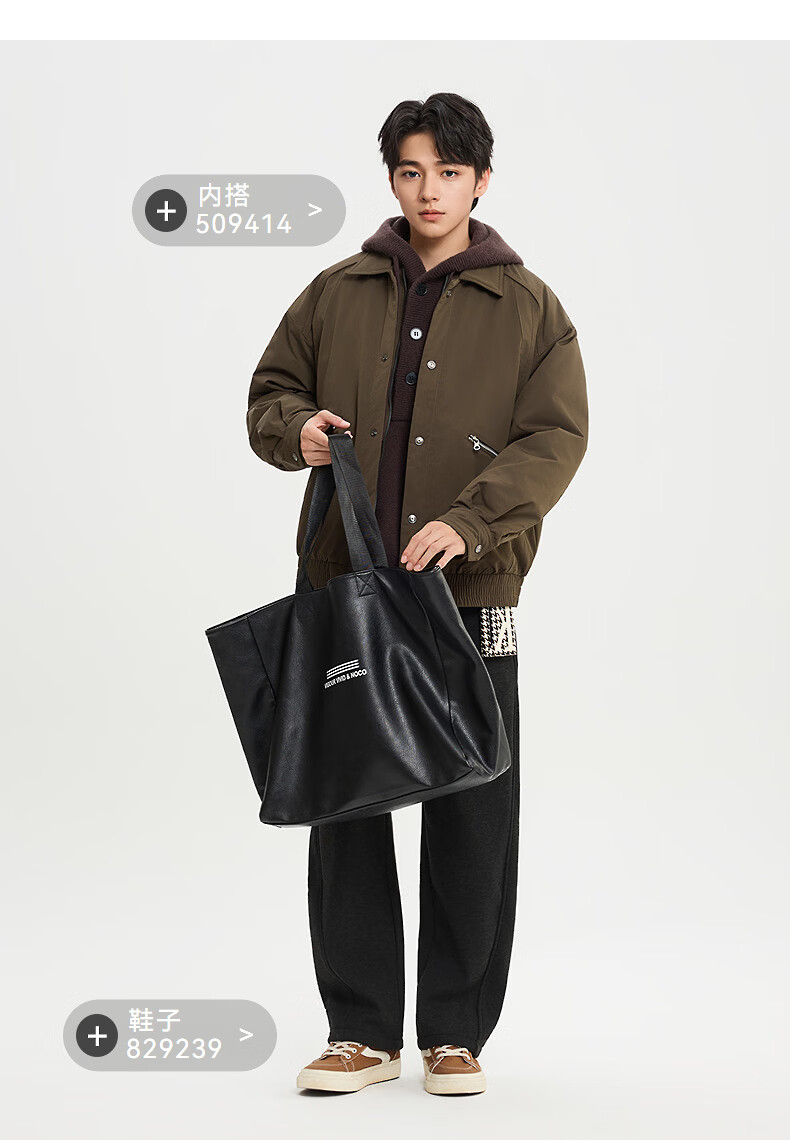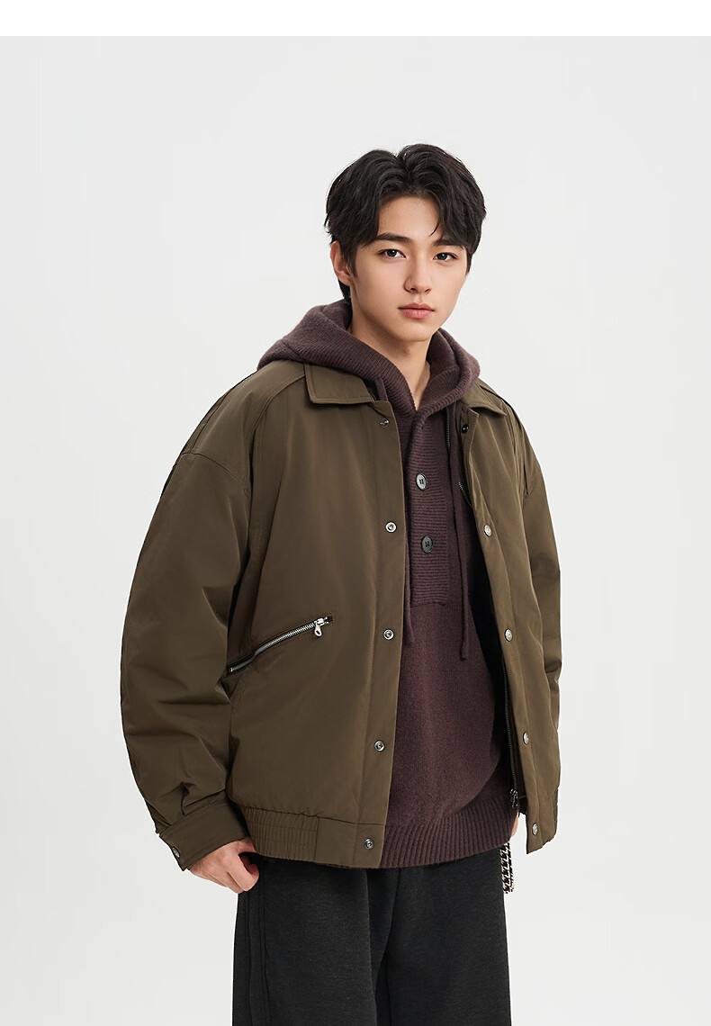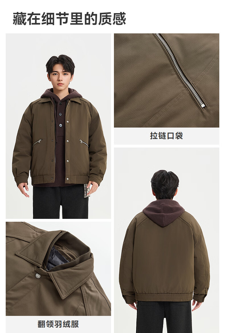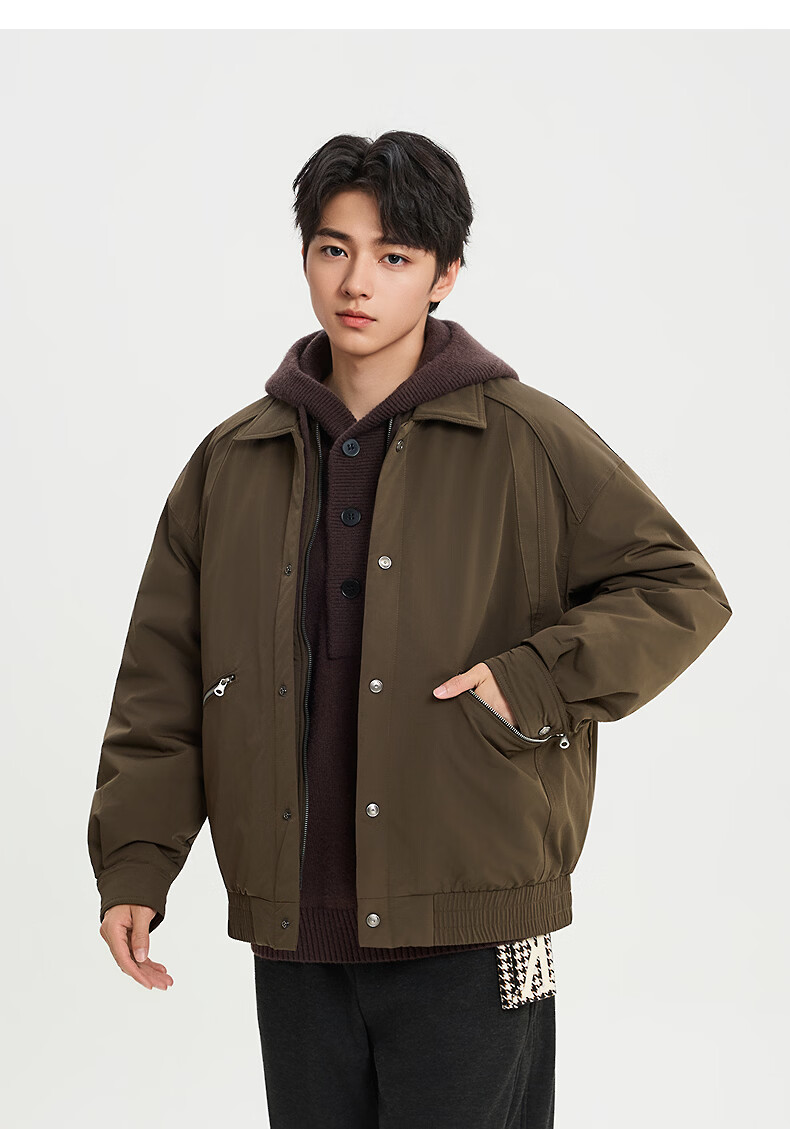 SANFU 2025 Winter Men's Zipper Pocket Down Jacket Fashionable Warm Loose Lapel Jacket 515944 Brown M